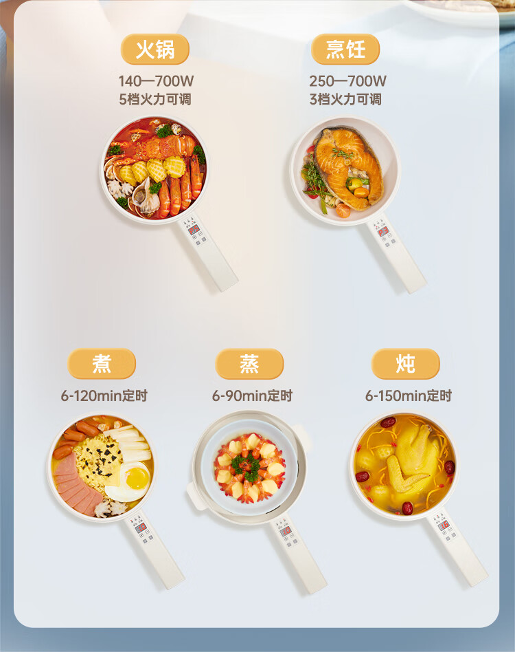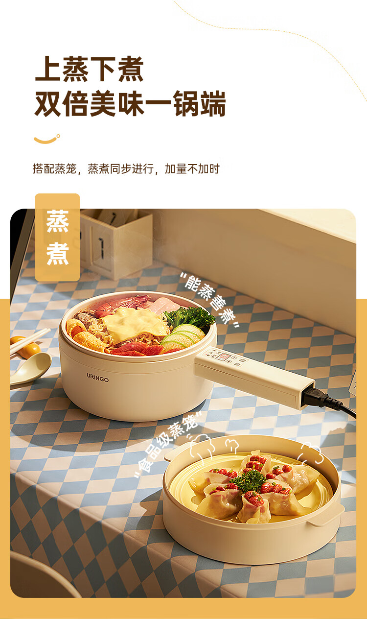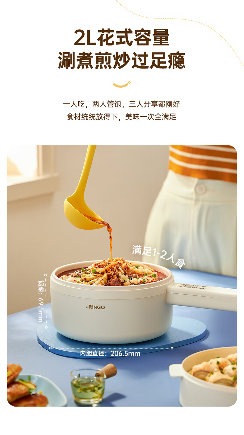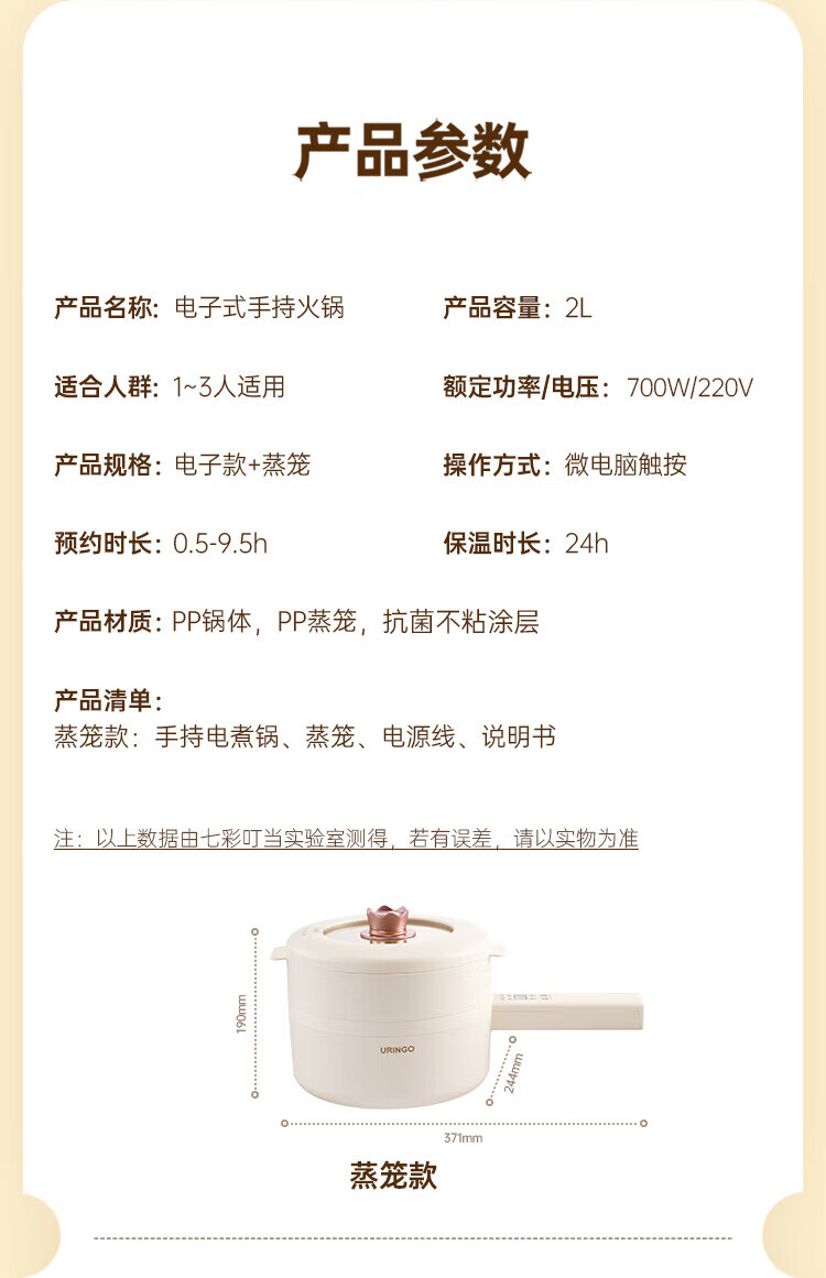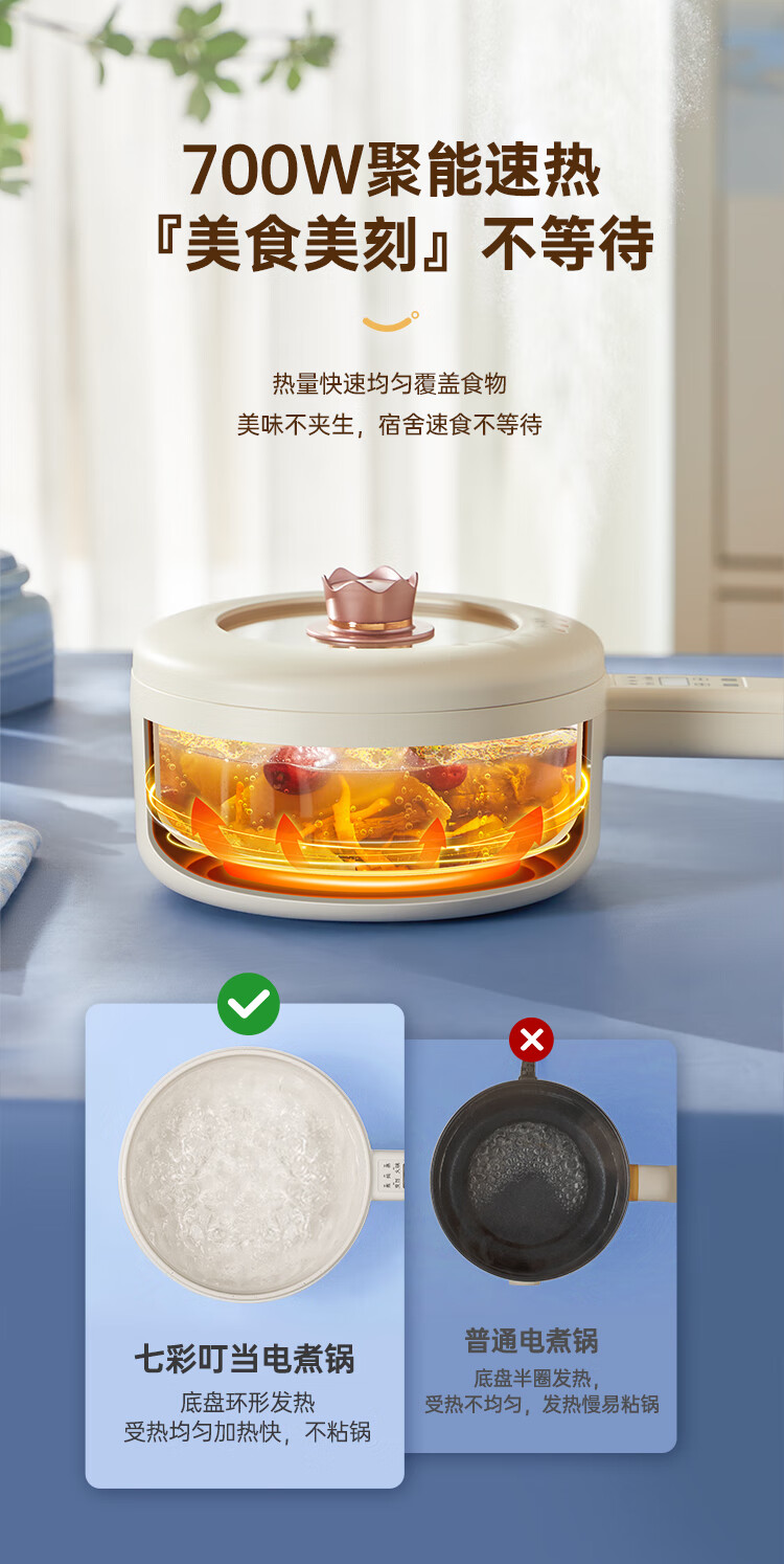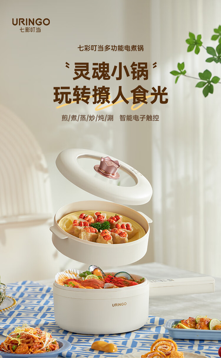 七彩叮当 电火锅 电煮锅 QC-SD01Z(2L蒸笼款)/台 白色