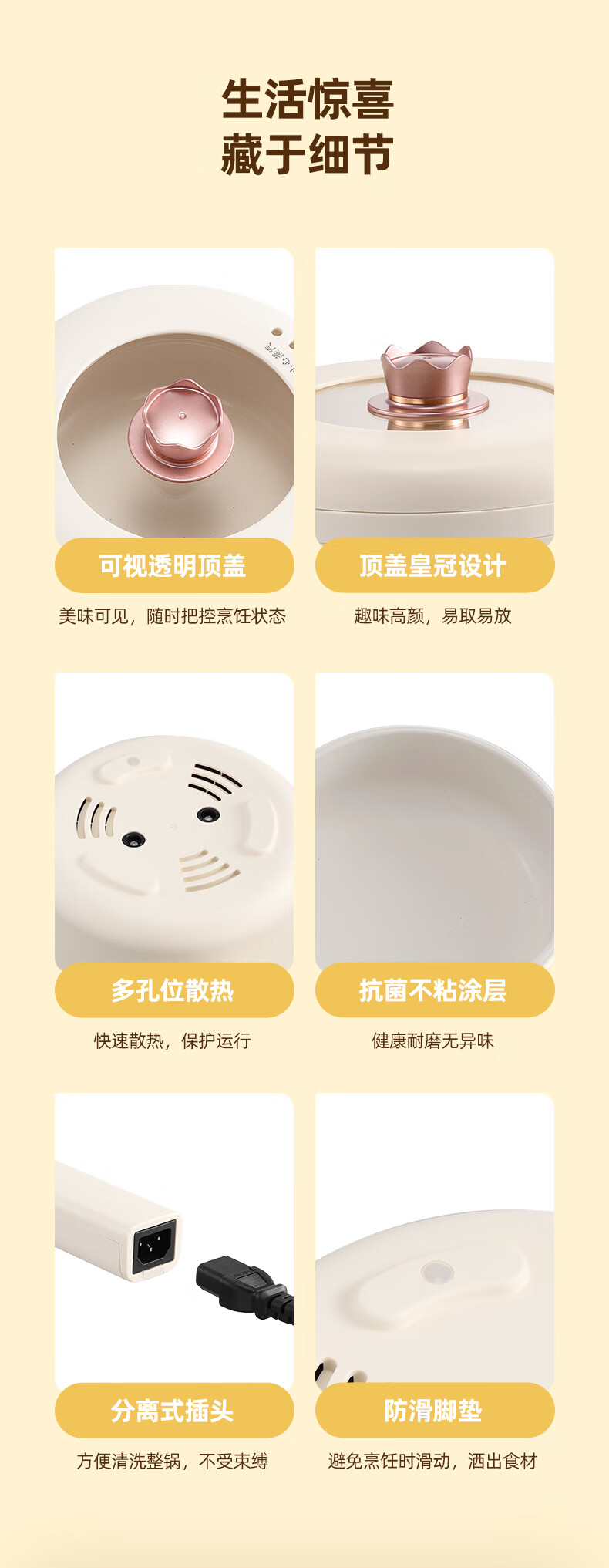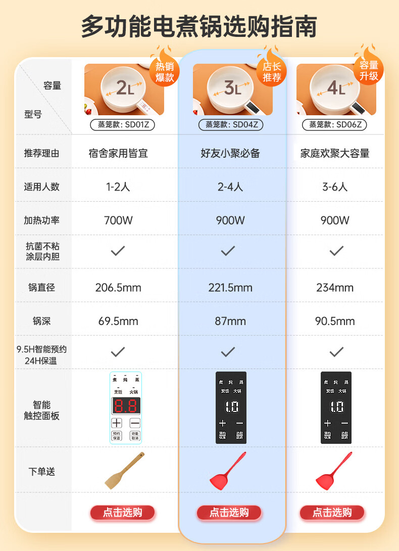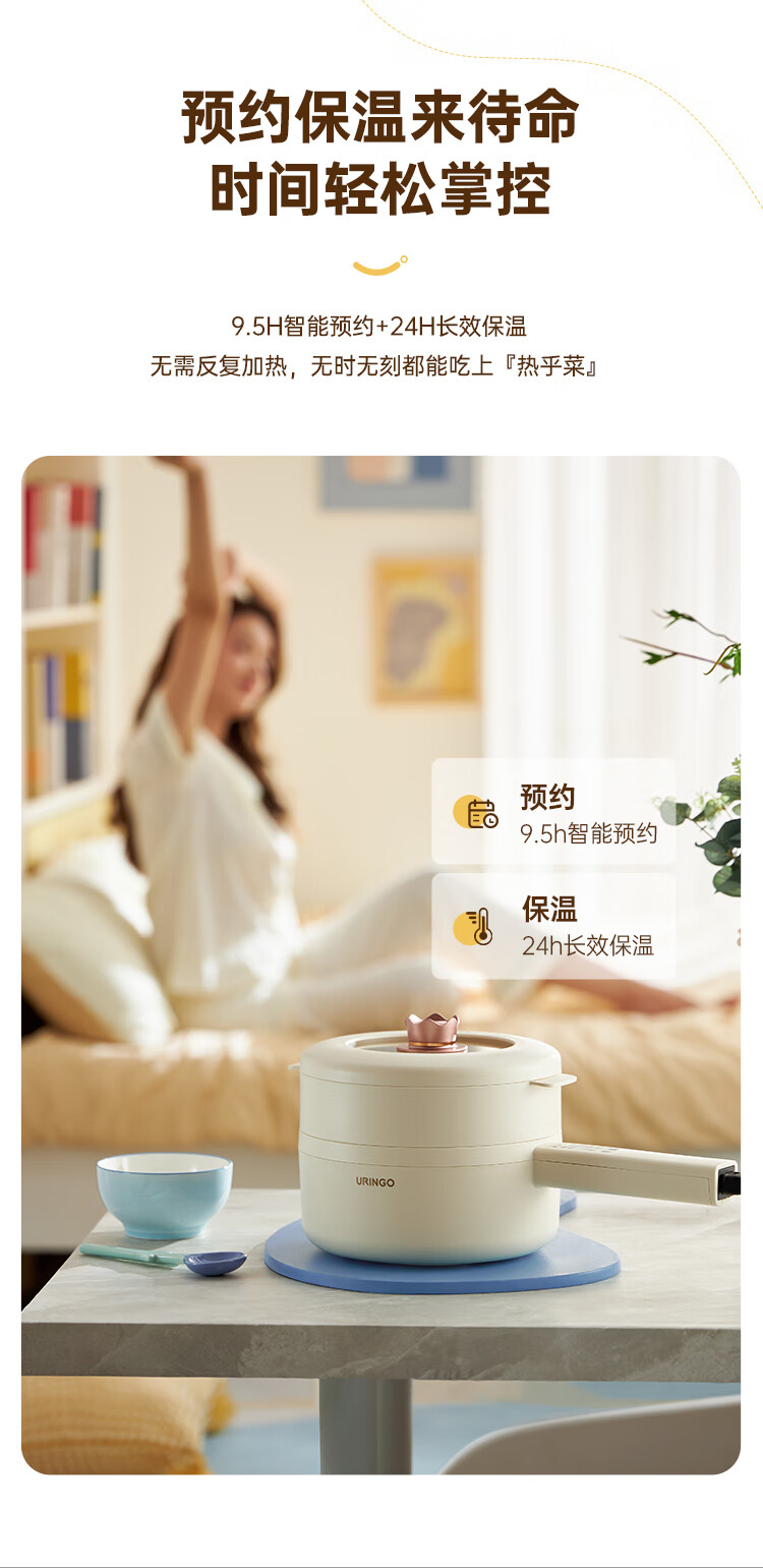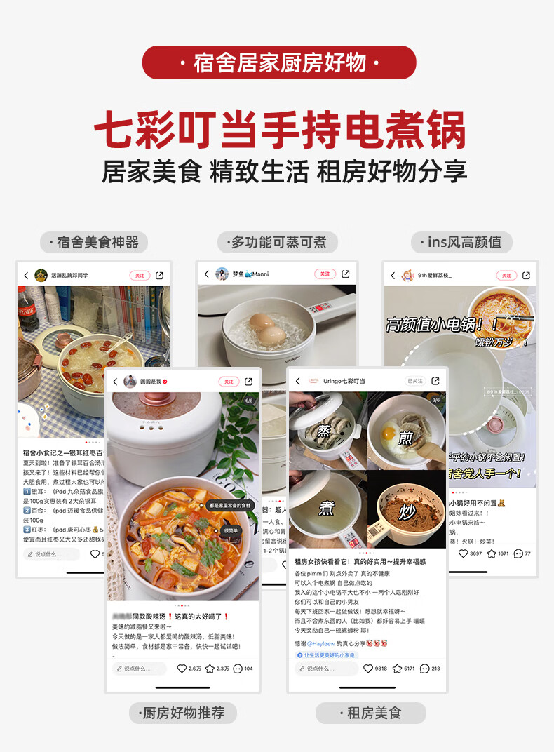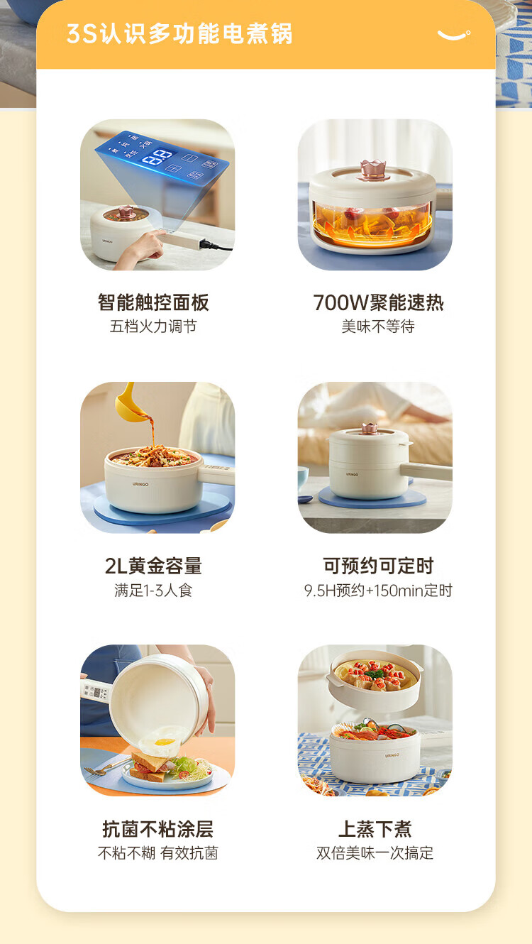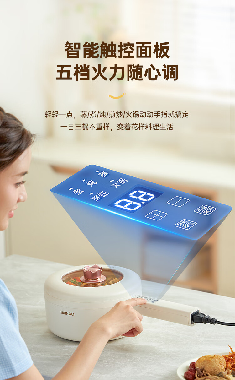 七彩叮当 电火锅 电煮锅 QC-SD01Z(2L蒸笼款)/台 白色