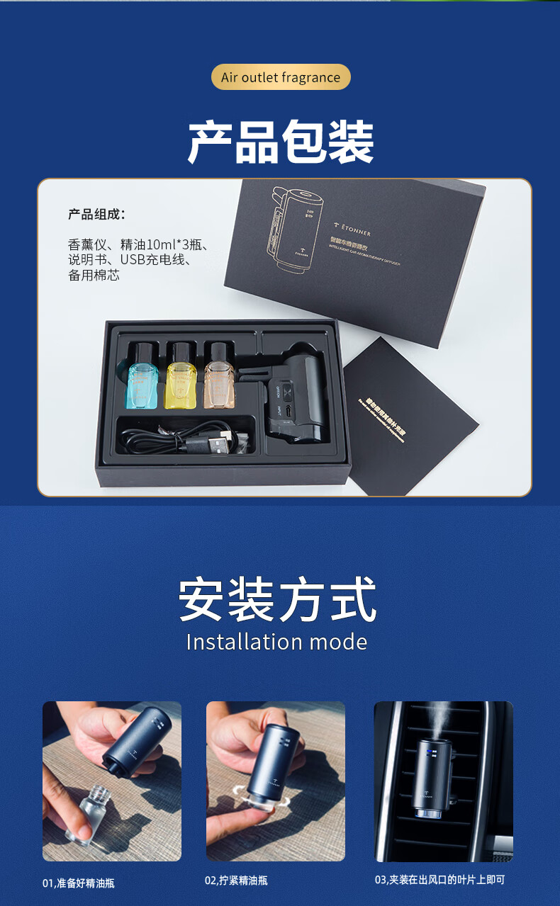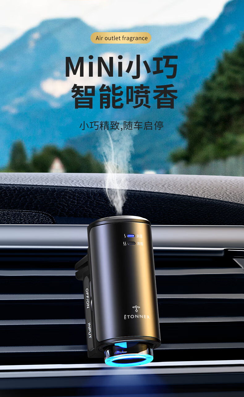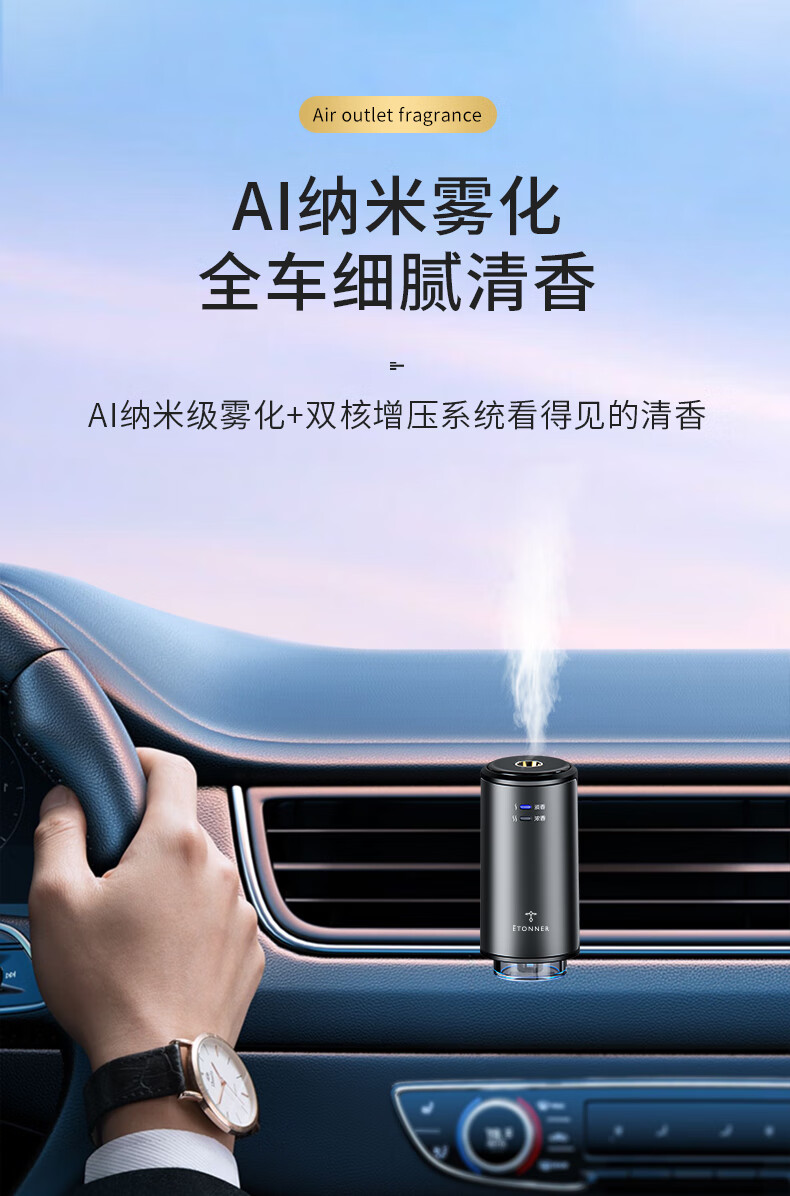 途雅(ETONNER)车载出风口智能香薰仪 随车启停喷雾香薰 电子香氛纳米除异味 高档合金C款/盒