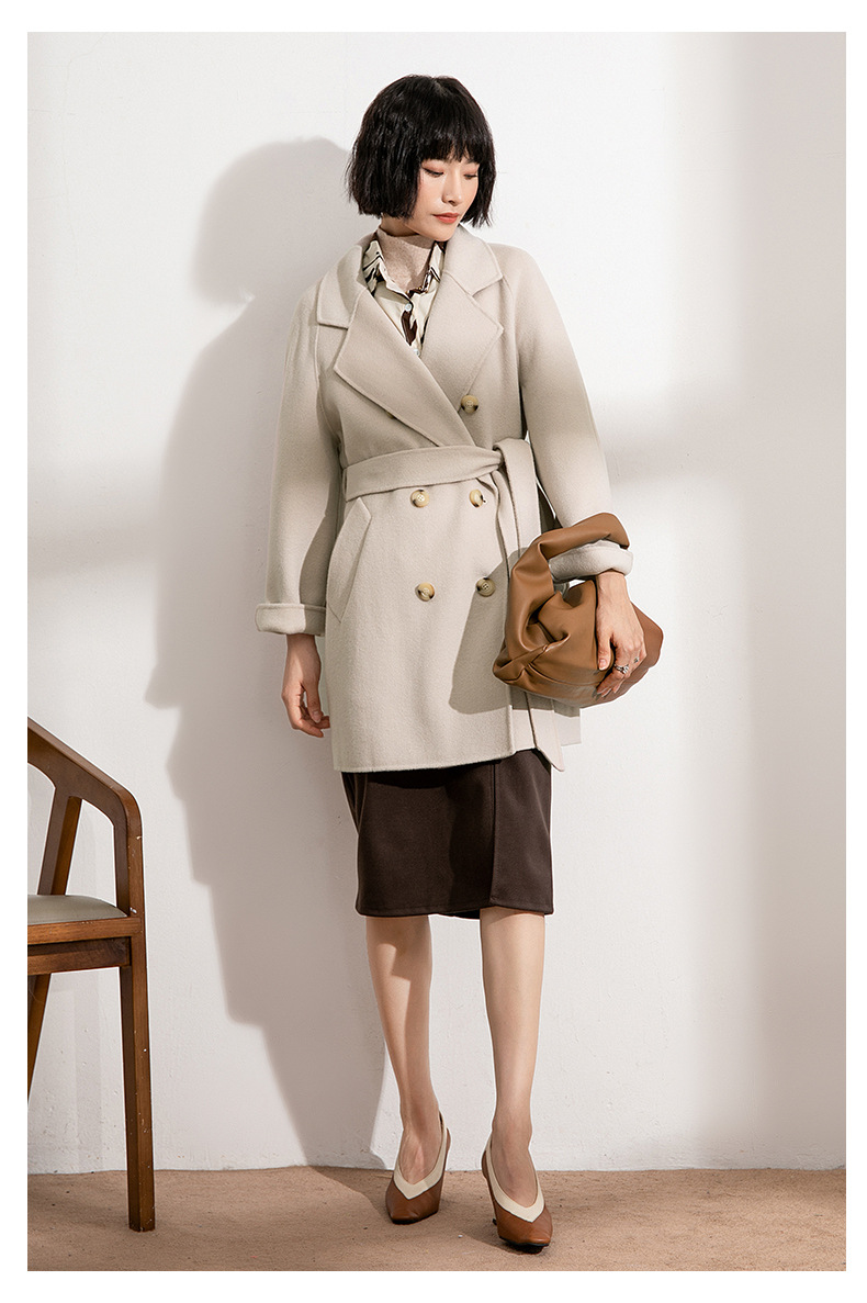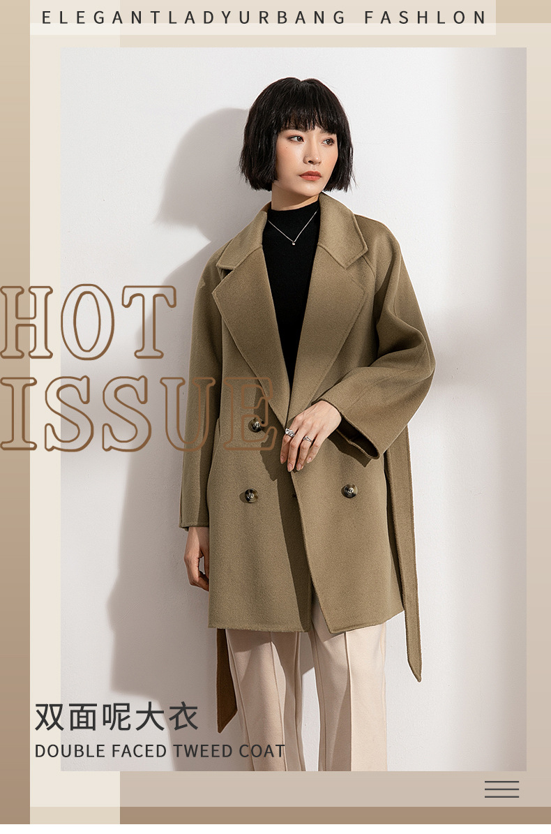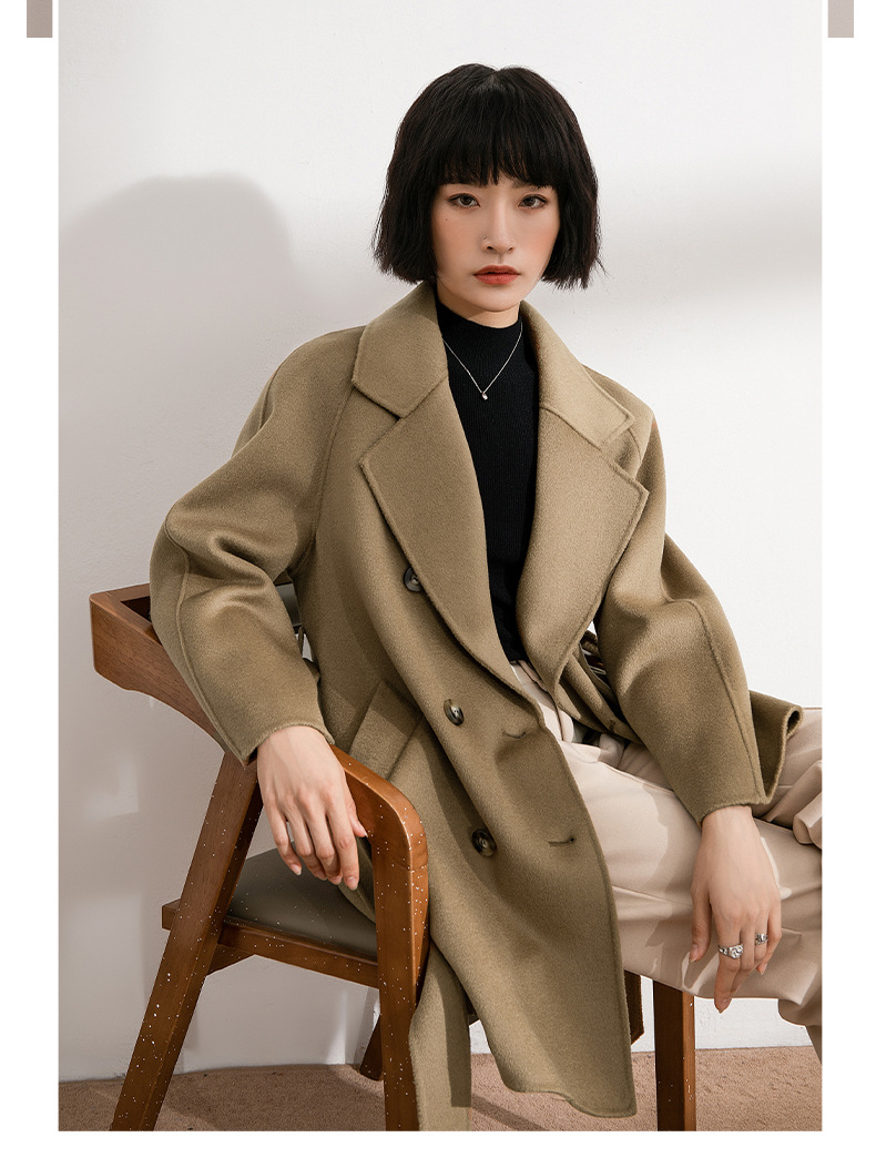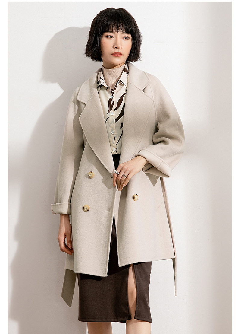 丰讯纯羊毛女士双面绒中长款毛呢大衣YTMDG22109(单位:件) 亚麻色 XS