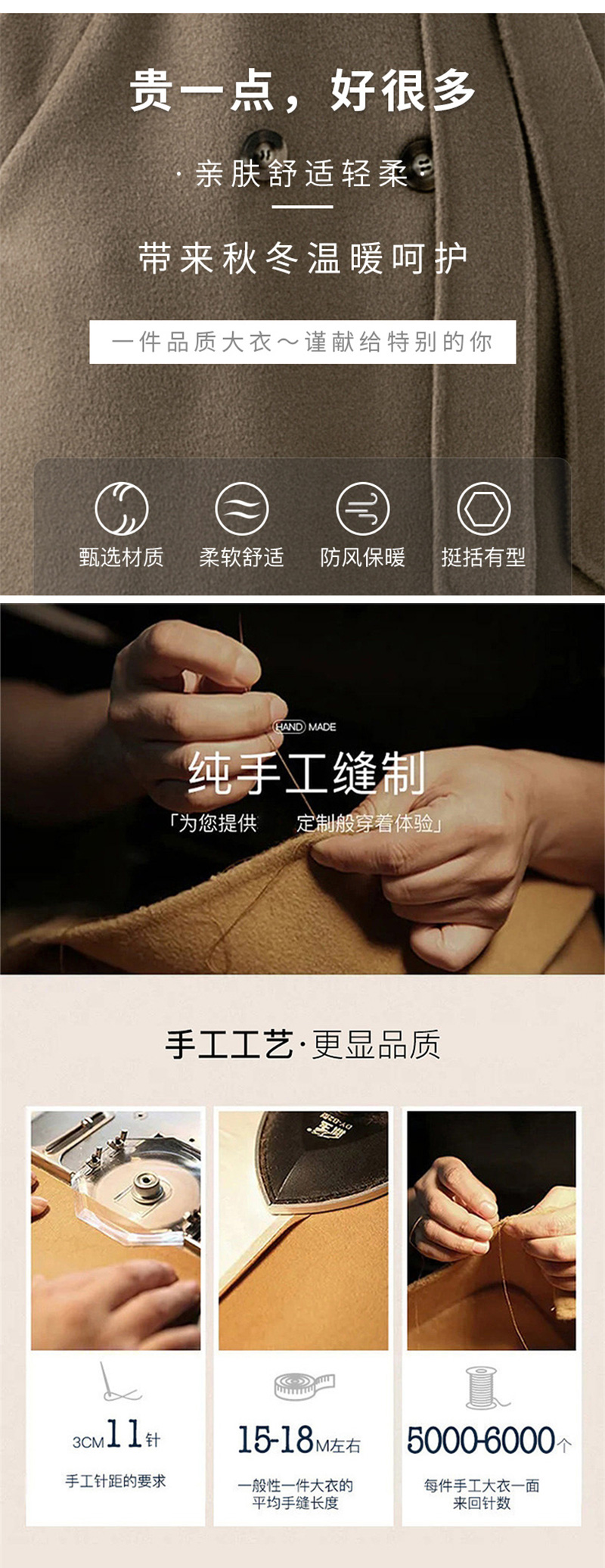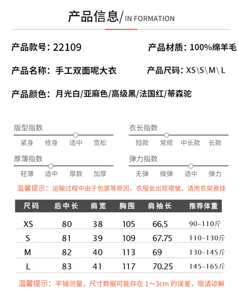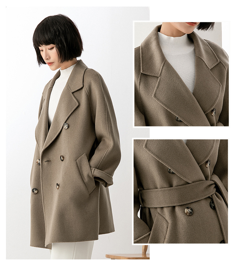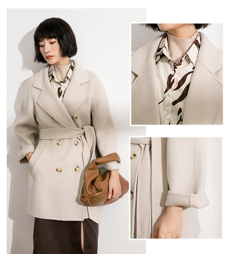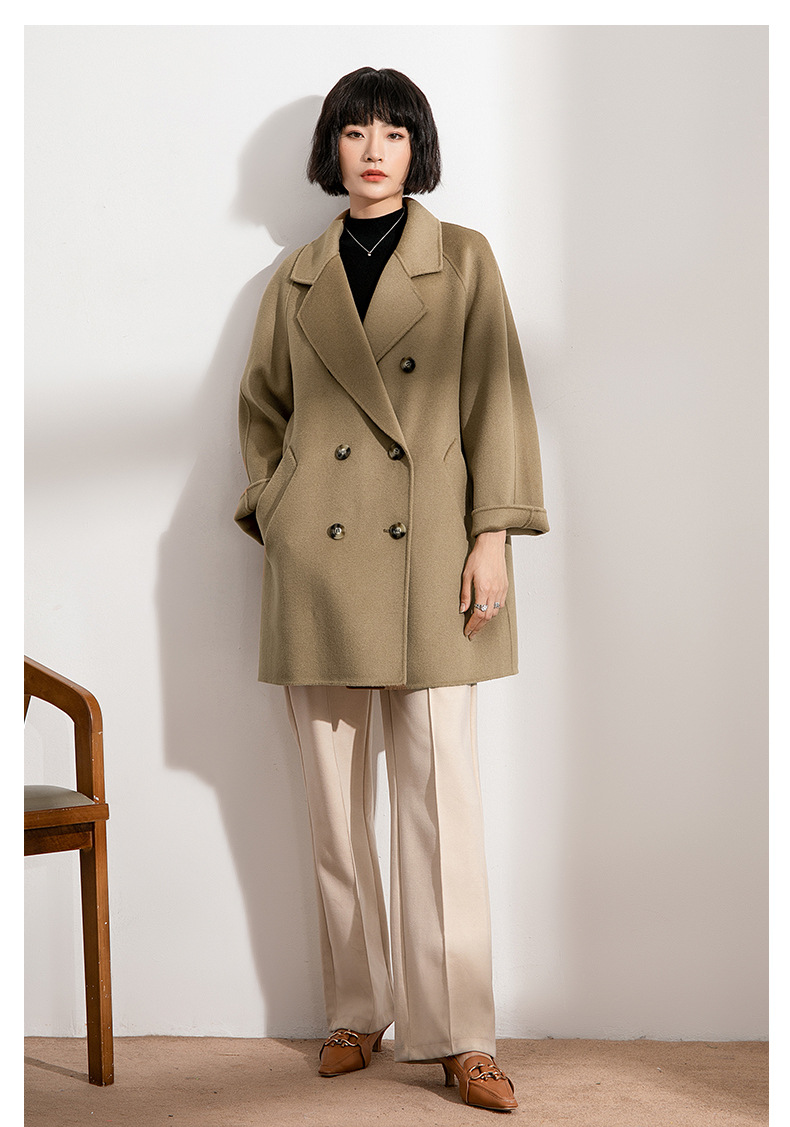 丰讯纯羊毛女士双面绒中长款毛呢大衣YTMDG22109(单位:件) 亚麻色 XS