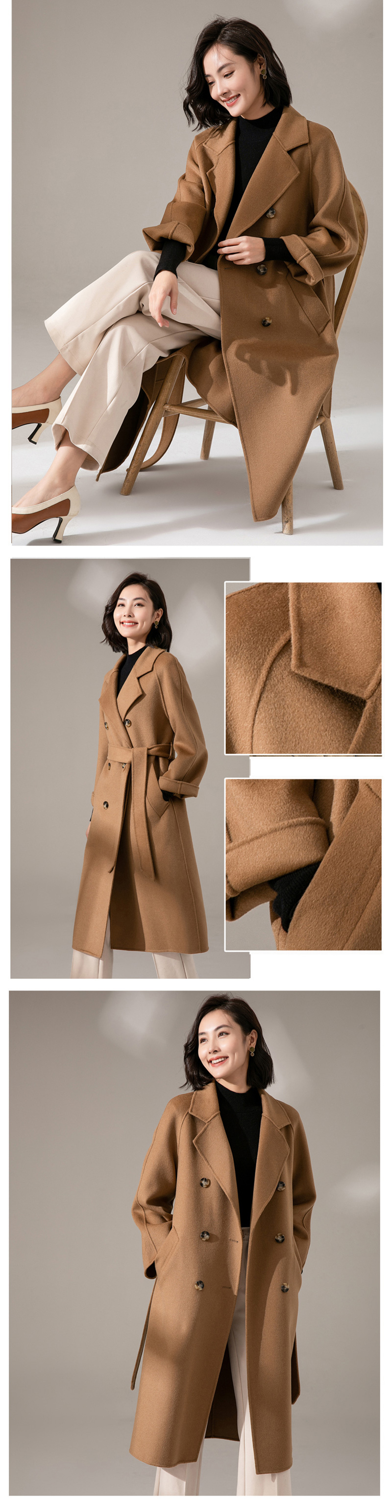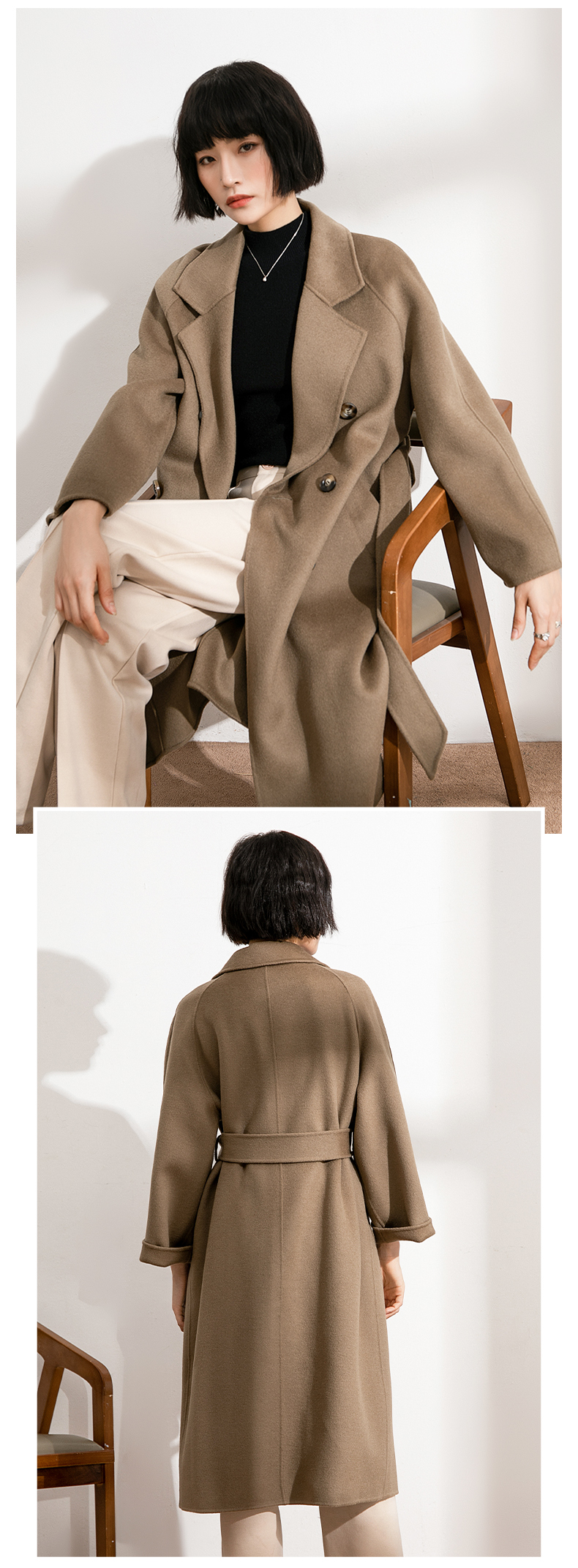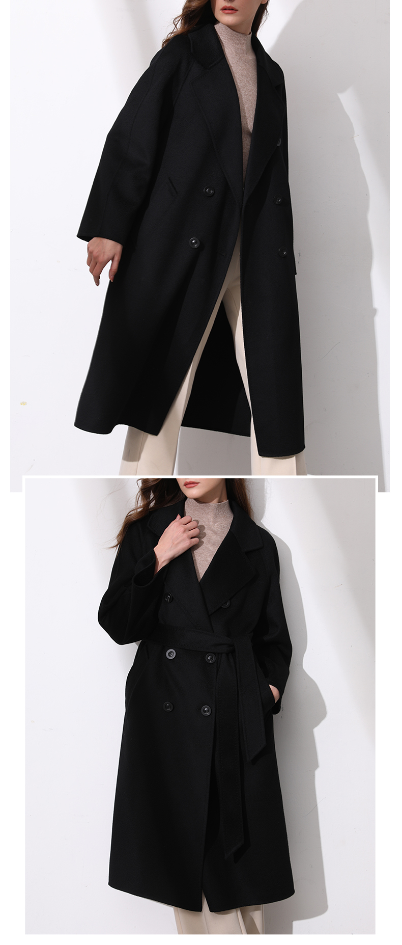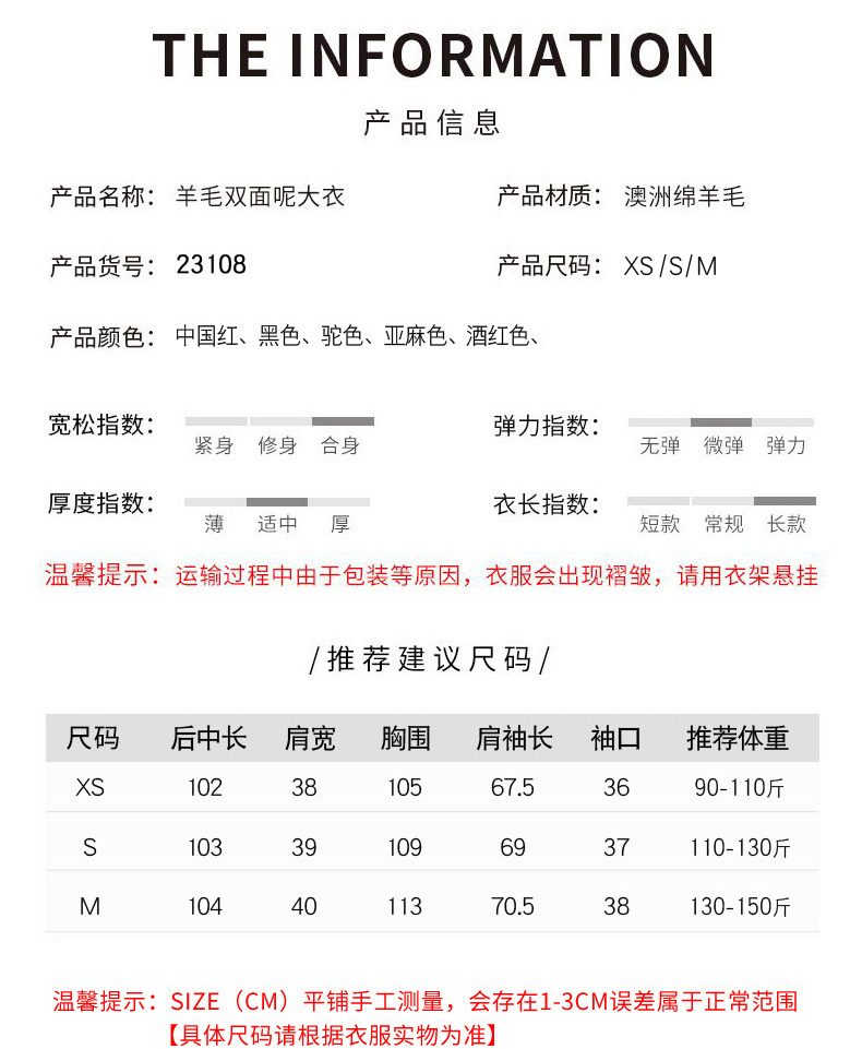 丰讯纯羊毛女款双面呢大衣YTMDG23108(单位:件) 黑色 M