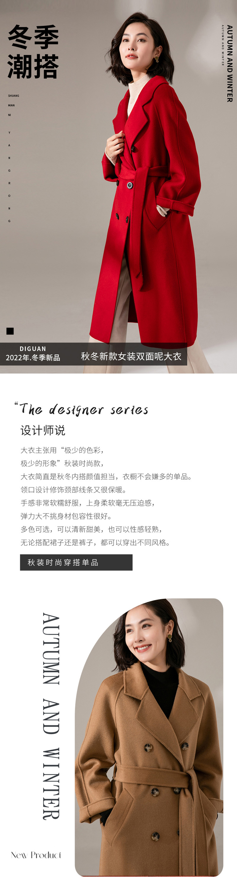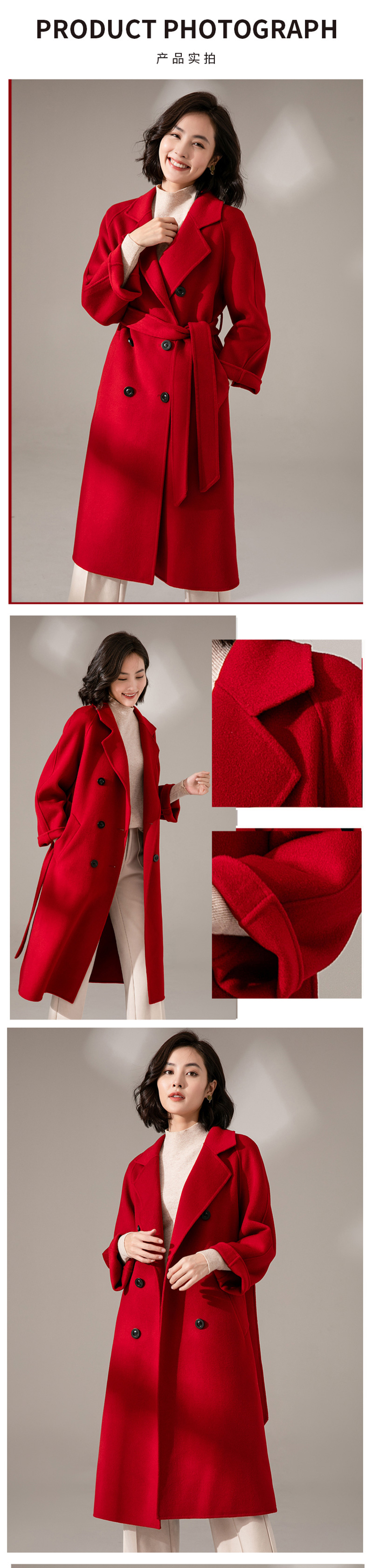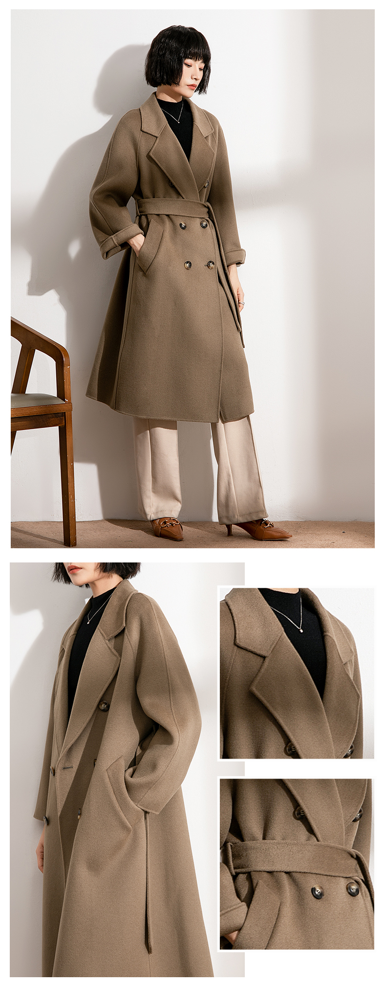 丰讯纯羊毛女款双面呢大衣YTMDG23108(单位:件) 黑色 M