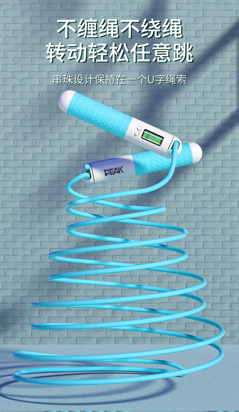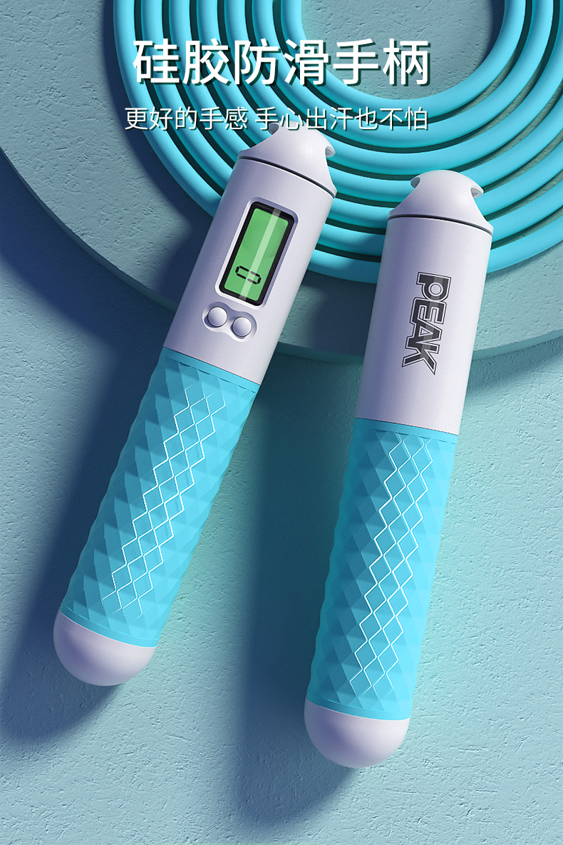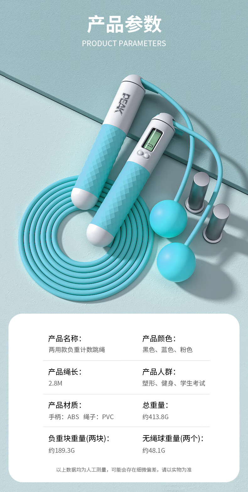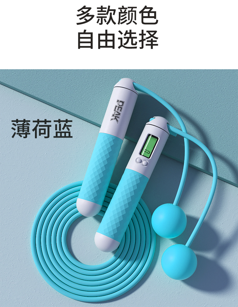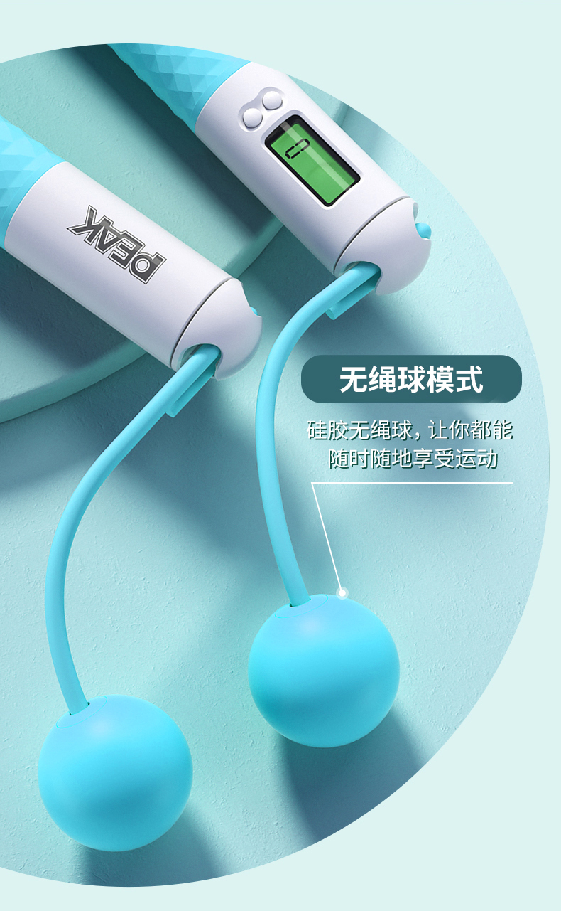 匹克(PEAK)两用款负重计数跳绳成人儿童学生中考试可调节2.8米无绳球跳绳 两用款YW21279个 水蓝色