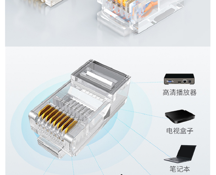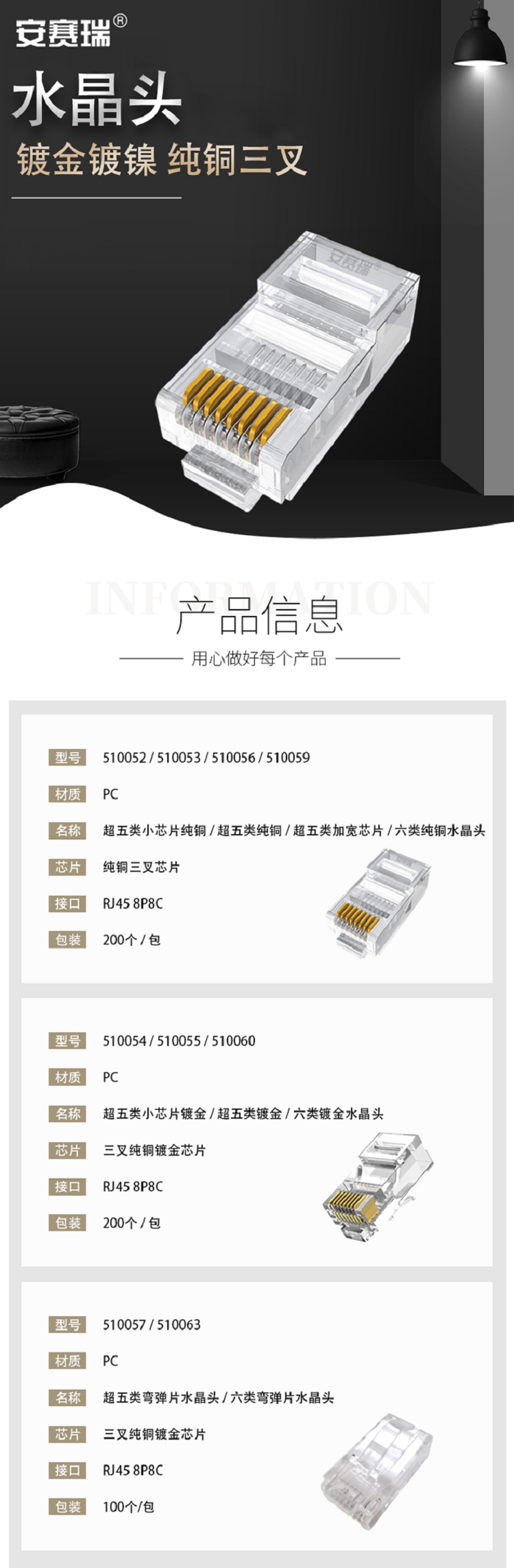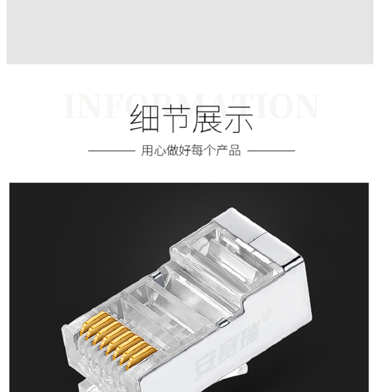 安赛瑞 超五类纯铜水晶头 超五类RJ45网络水晶头网线接头Cat5e水晶头(200个装) 510053 白色