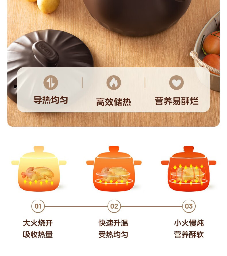 苏泊尔(SUPOR)新陶养生煲.乐享系列.浅汤煲TB25A1(单位:个) 褐色