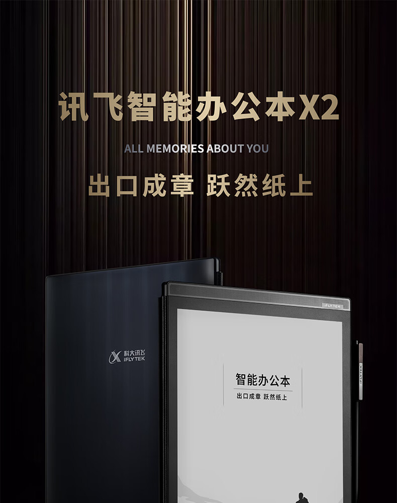 科大讯飞智能办公本X2 10.3英寸电子书阅读器 墨水屏电纸书手写板 电子笔记本手写电子纸 语音转文字 灰色