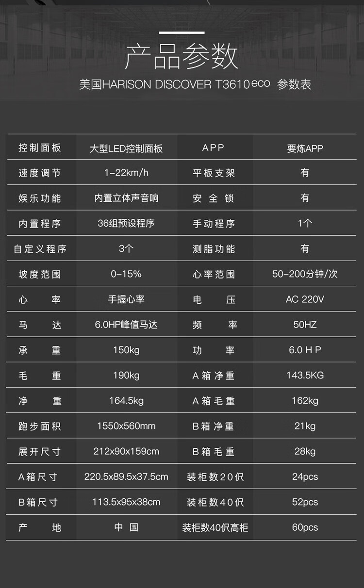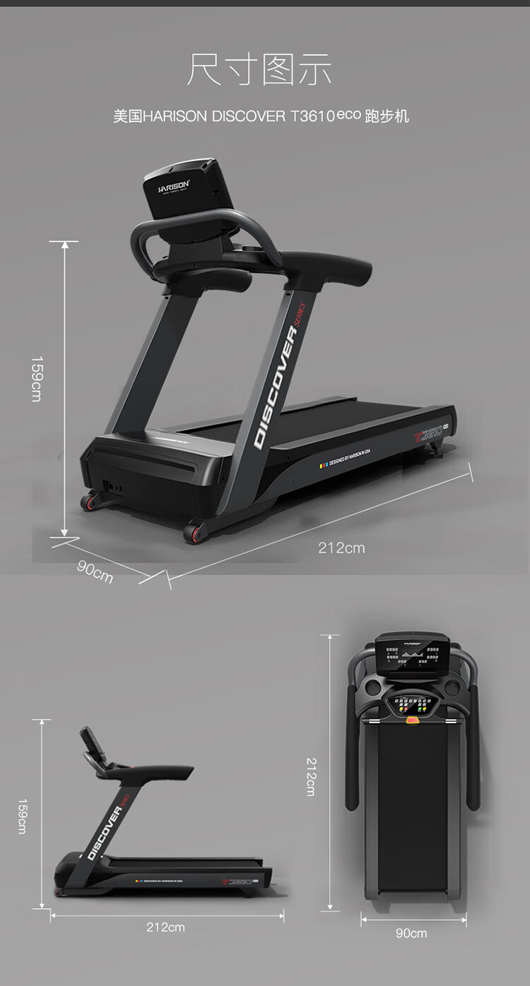 HARISON汉臣 商用豪华跑步机健身房专用 运动健身器材 DISCOVER T3610eco 黑色