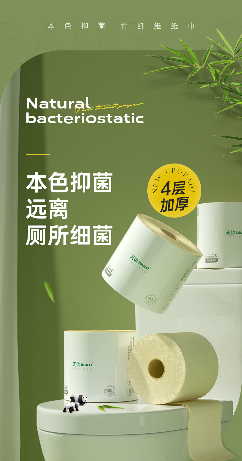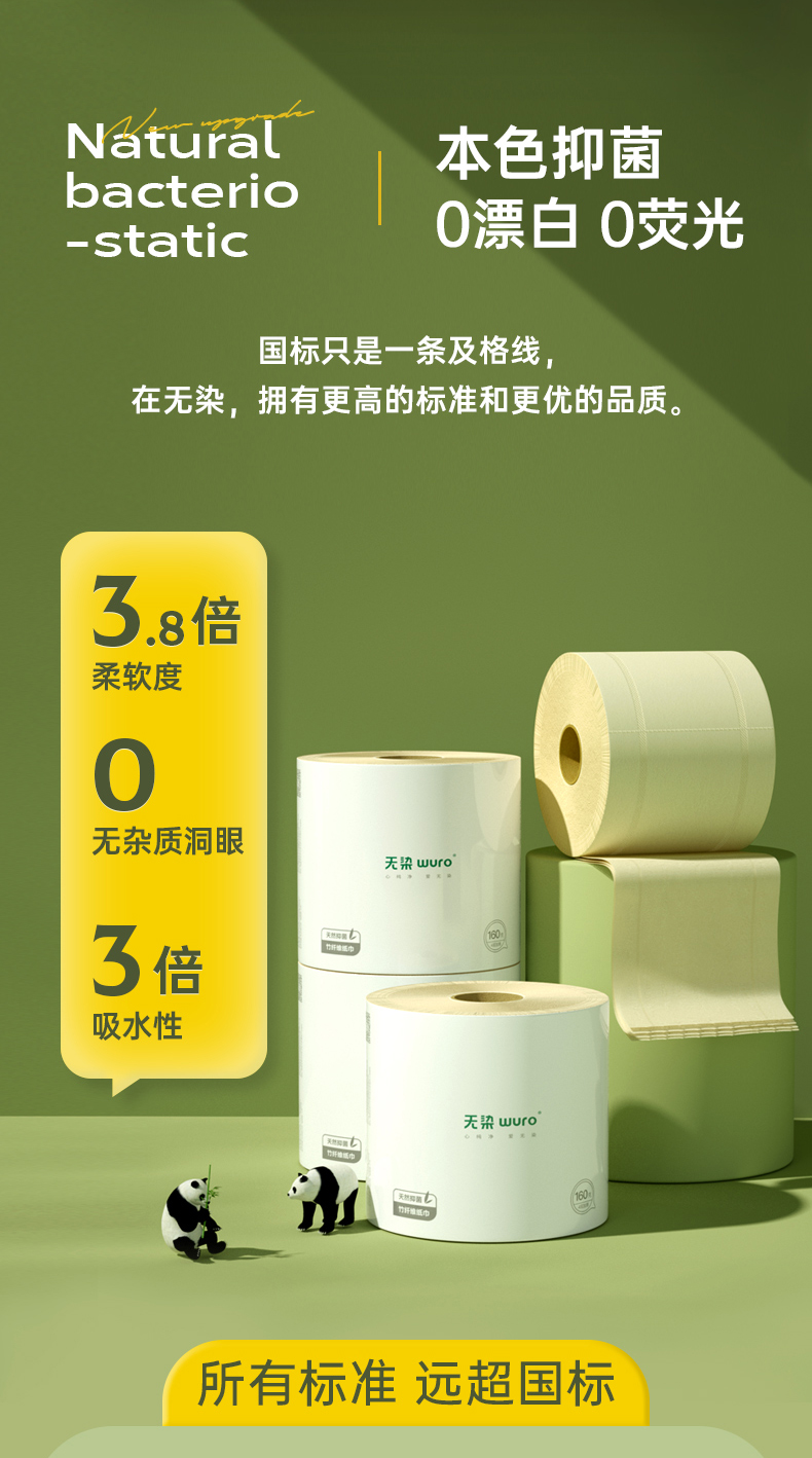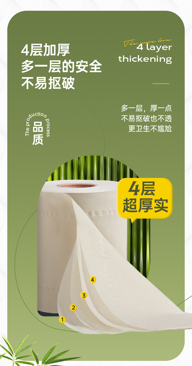 无染天然抑菌竹纤维 有芯卷纸24卷 白色