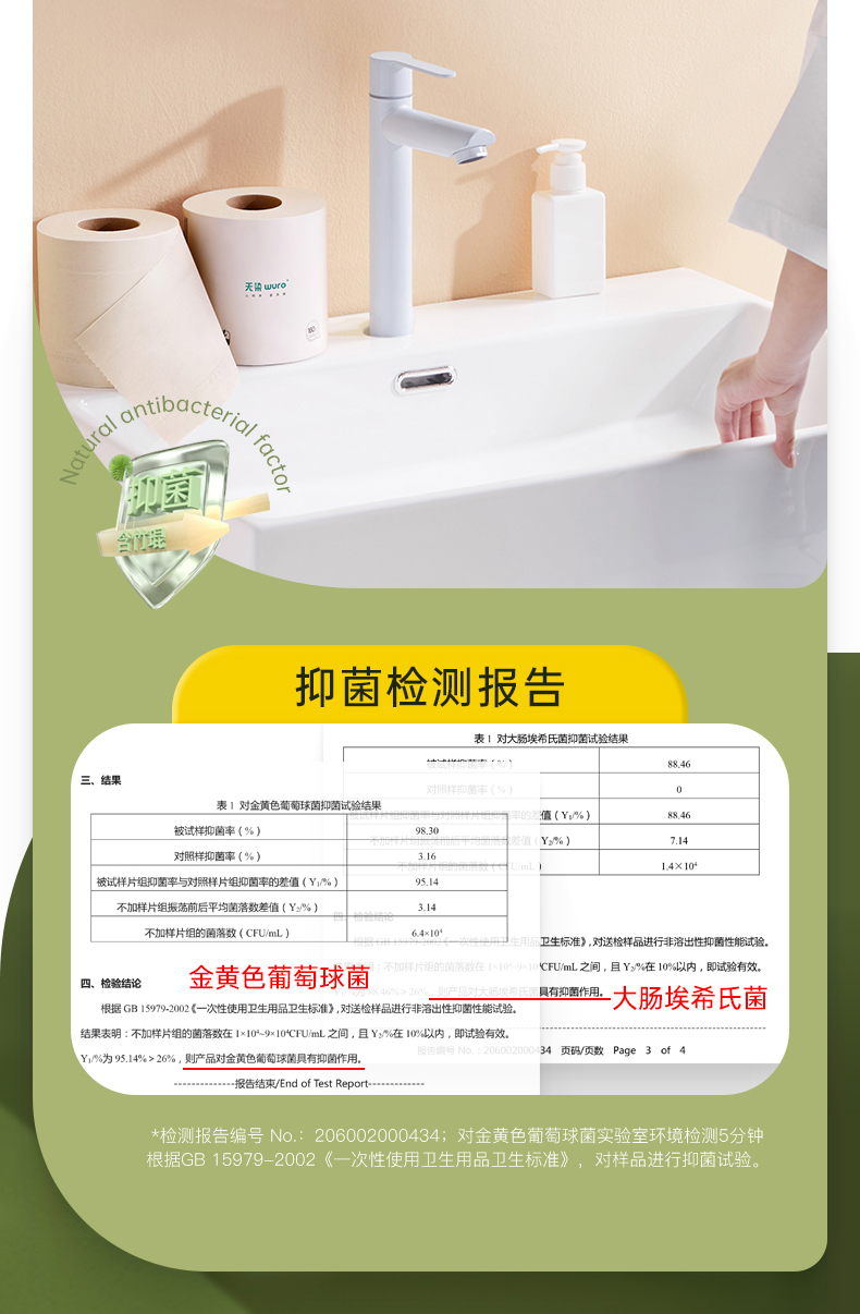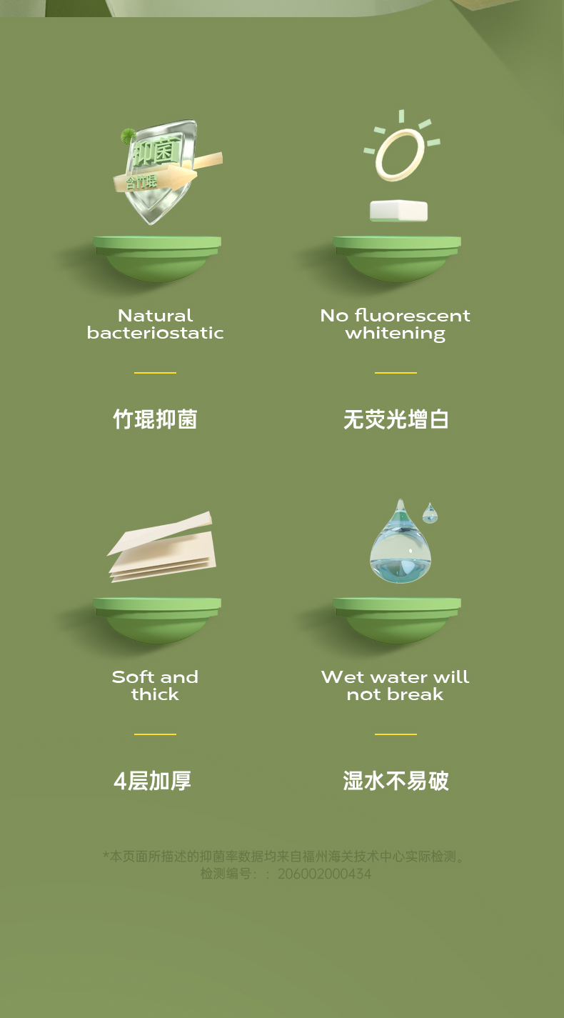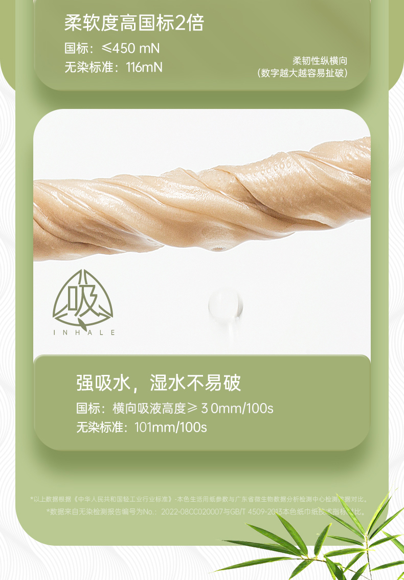 无染天然抑菌竹纤维 有芯卷纸24卷 白色