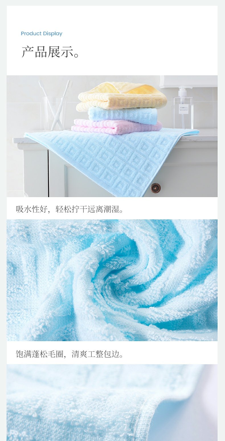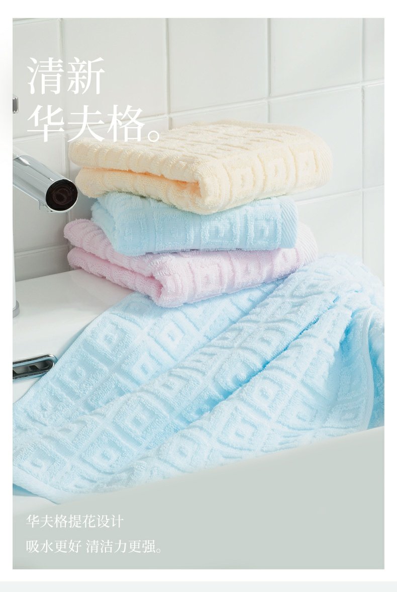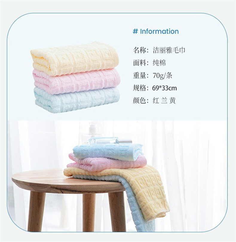 洁丽雅毛巾3条装 纯棉华夫格速干吸水家用面巾成人情侣全棉毛巾 6415 红兰黄颜色随机