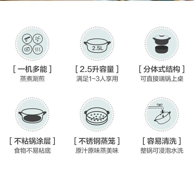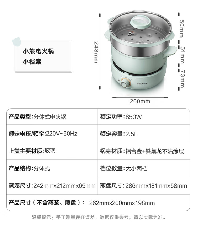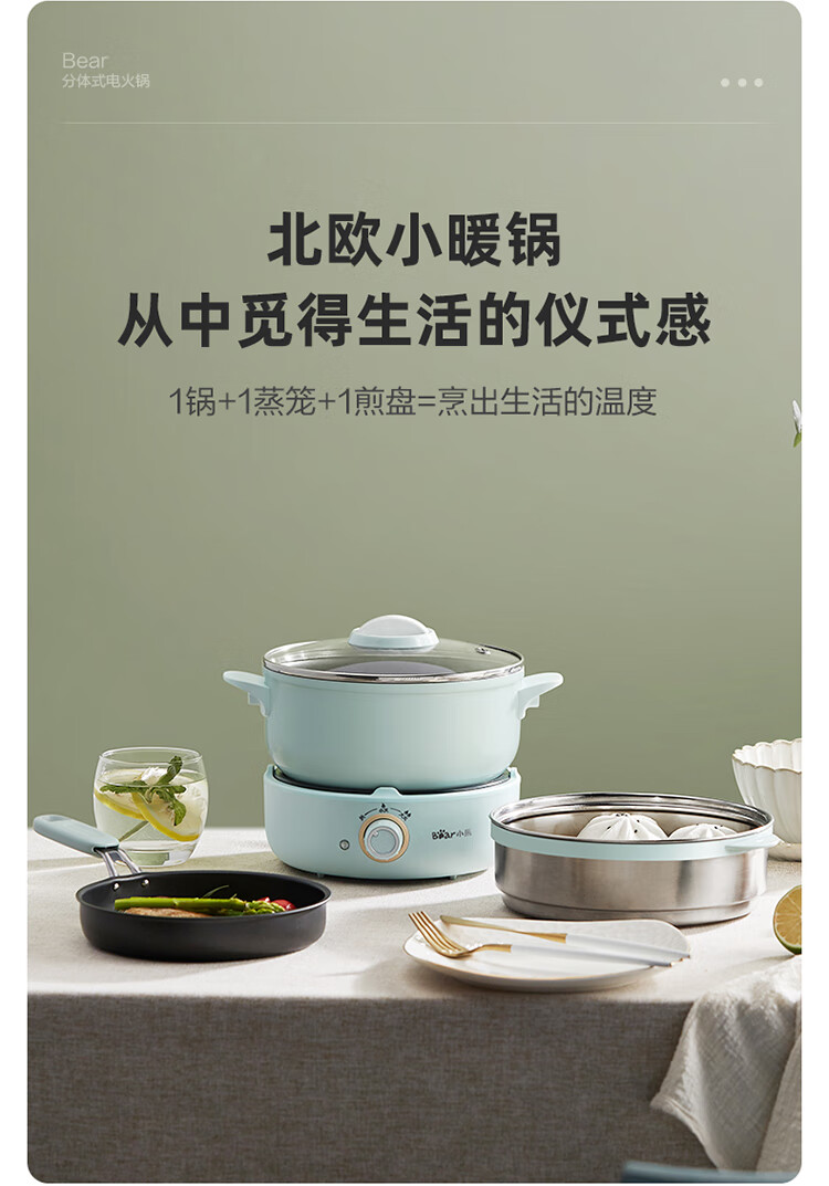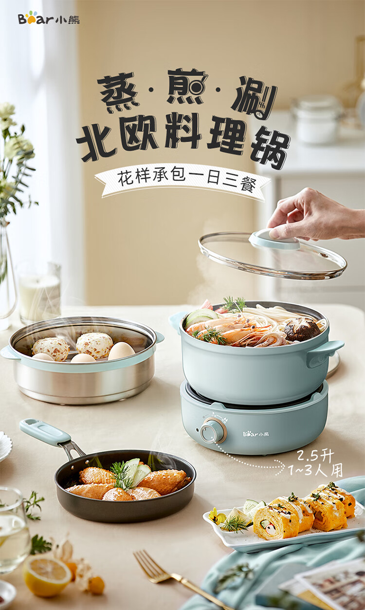 小熊(Bear) DHG-B25B2 2.5L 多用途电火锅 蓝色(单位:个)