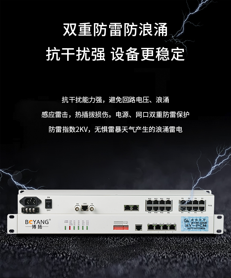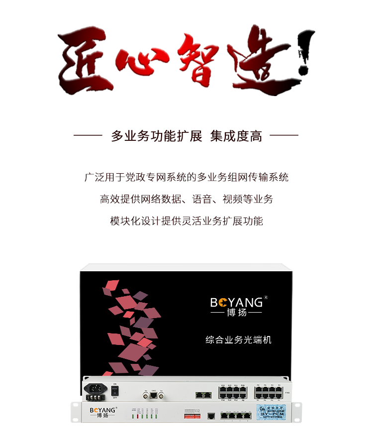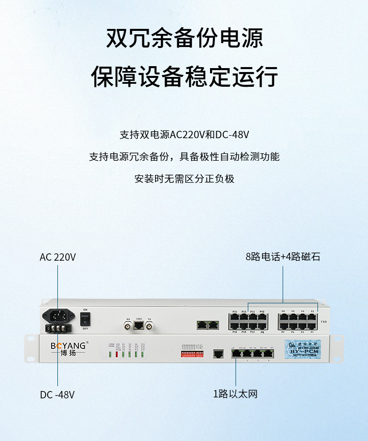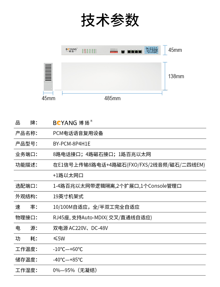 博扬(BOYANG) PCM复用设备1路E1转8路电话+4路磁石+1路以太网 机架式一对 BY-PCM-8P4H1E 白色