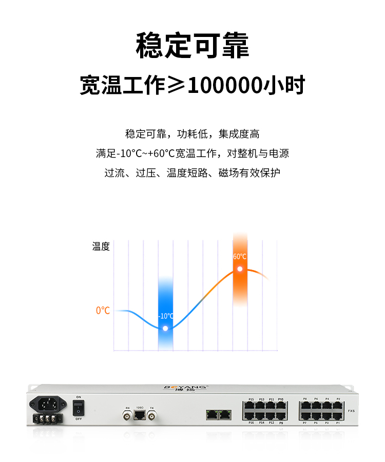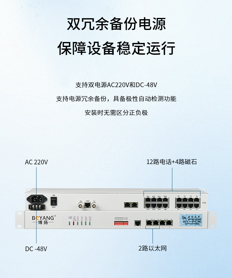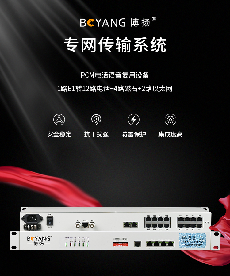 博扬 PCM复用设备1路E1转12路电话+4路磁石+2路以太网 机架式一对价 BY-PCM-12P4H2E 白色