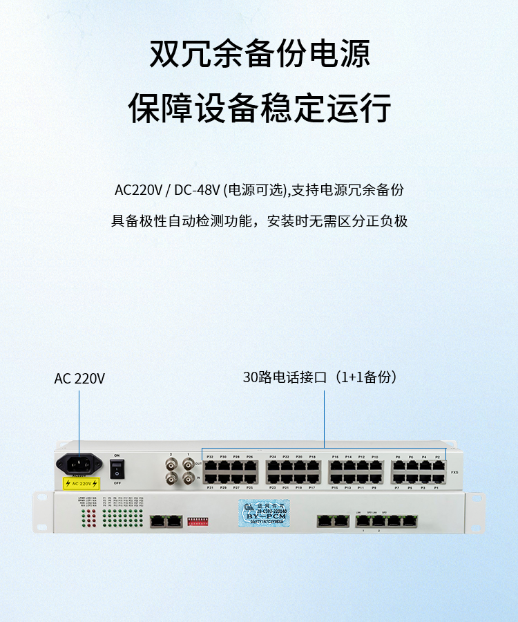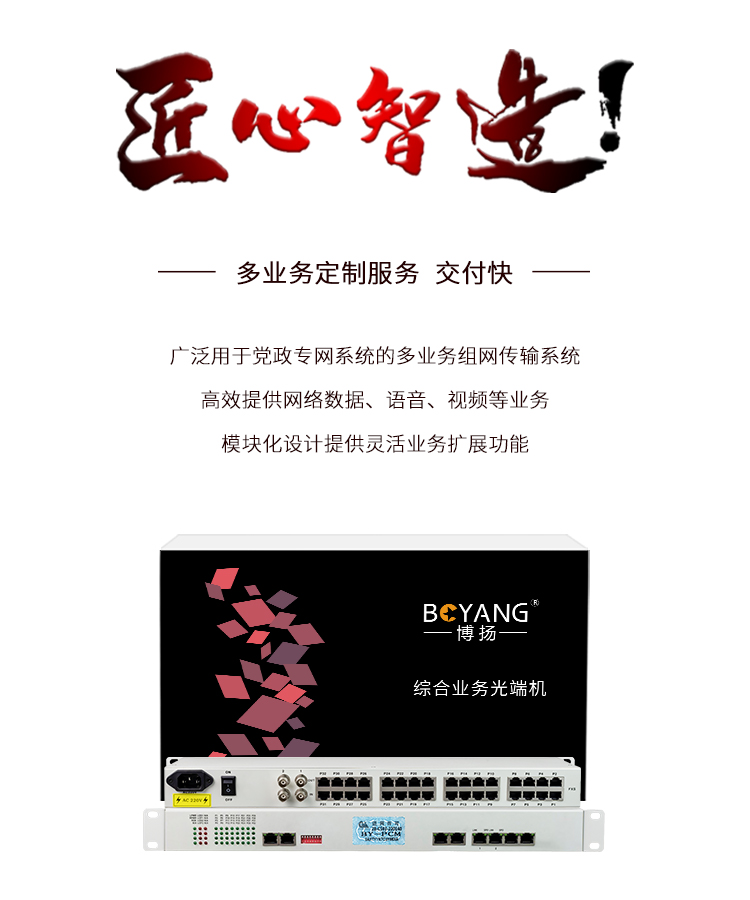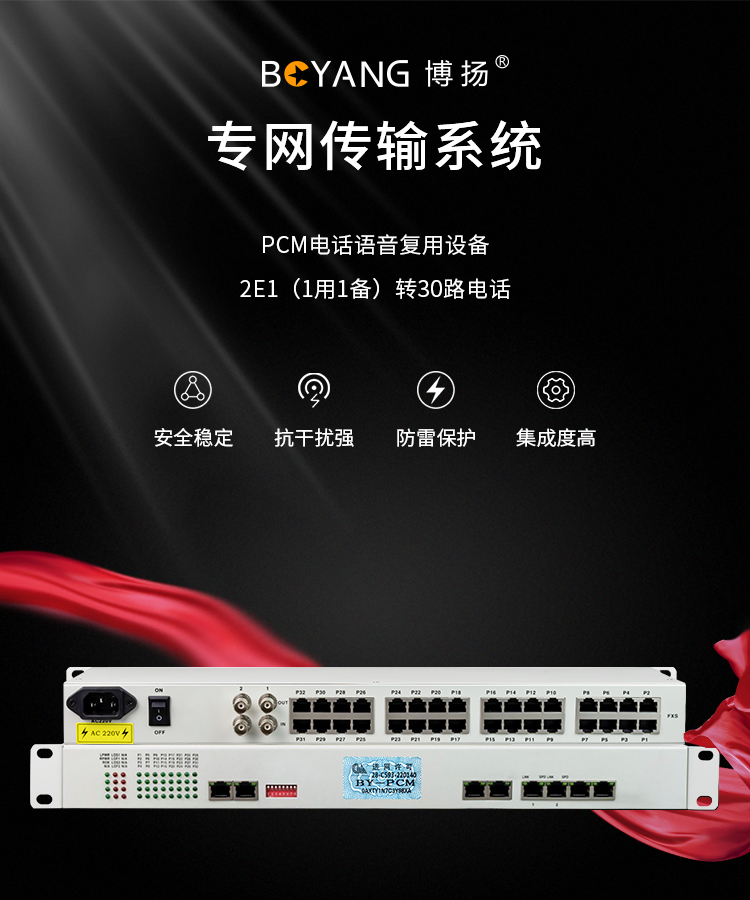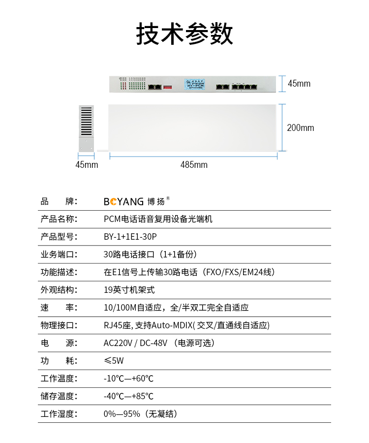 博扬 PCM复用设备光端机 2M语音设备 2E1一用一备转30路电话(可定制磁石) 机架式 1对价 BY-1+1E1-30P 白色