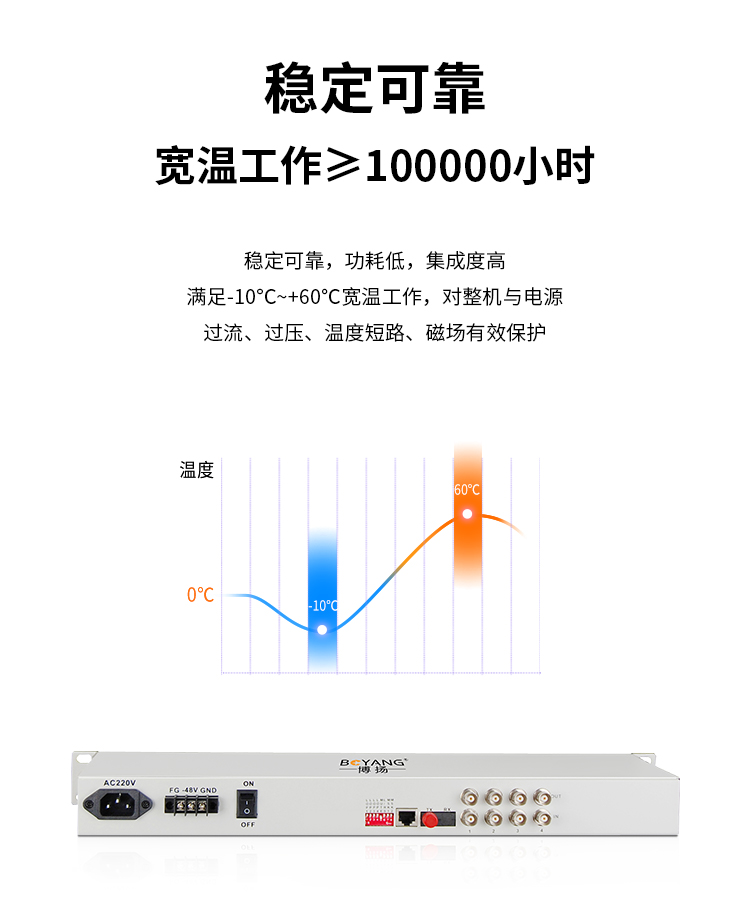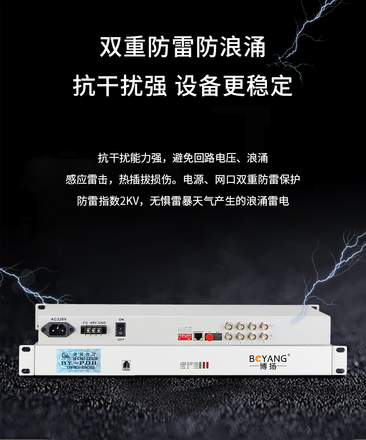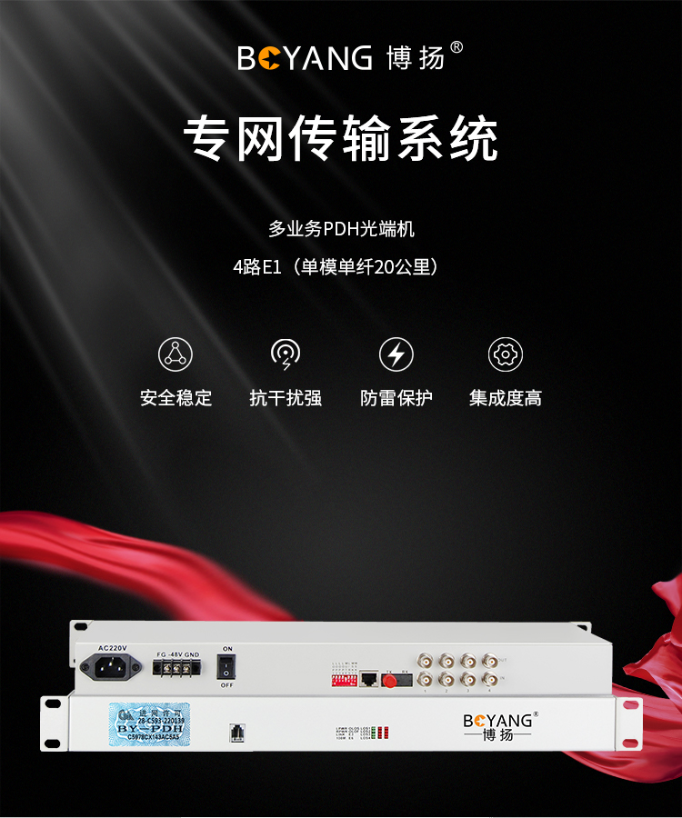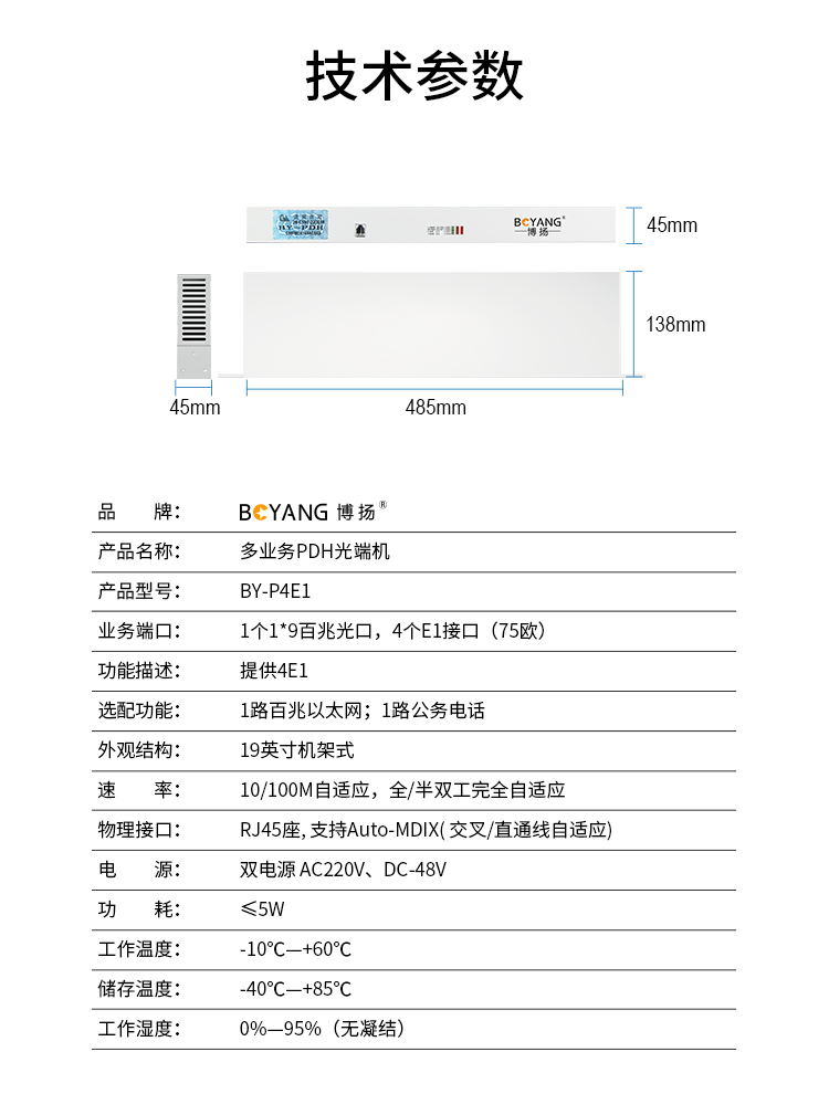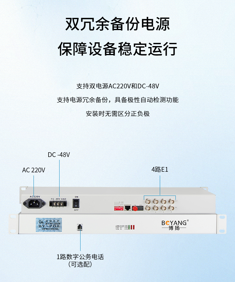 博扬(BOYANG)BY-P4E1 PDH光端机4路E1 4路2M光端机 光纤收发器 FC单纤20公里 机架式 双电源 白色