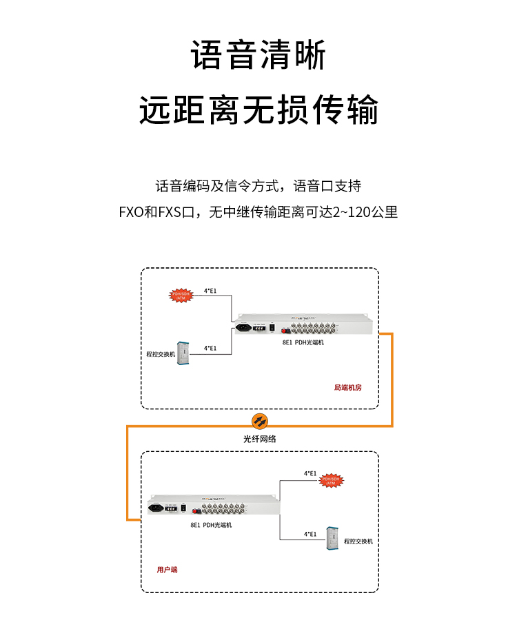 博扬 (BOYANG)BY-P8E1 PDH光端机8路E1 8路2M光端机 光纤收发器 FC单纤120公里 白色