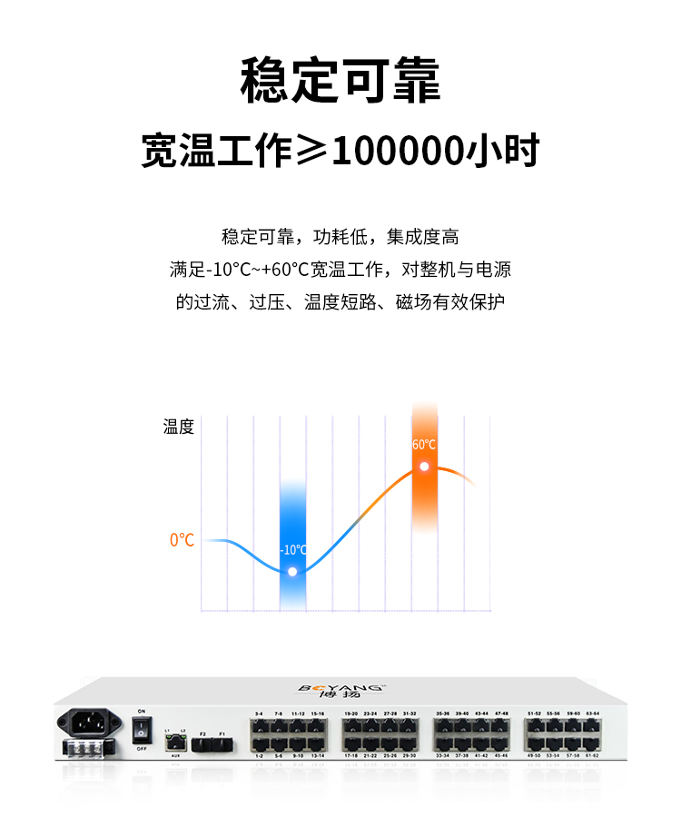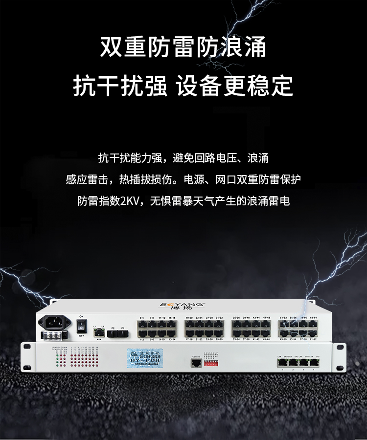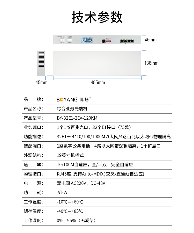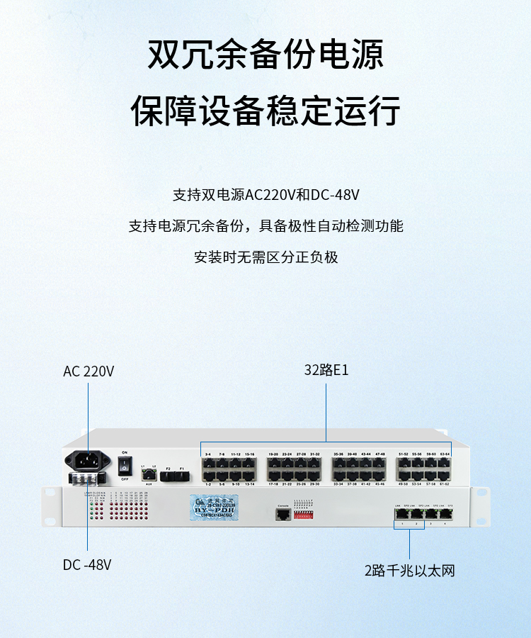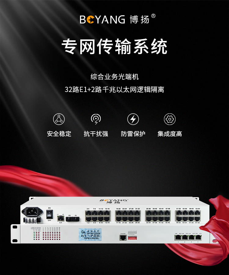 博扬 综合业务光端机32路E1+2路千兆以太网逻辑隔离 双纤120km LC接口机架式双电源 BY-32E1-2EV-120KM 白色