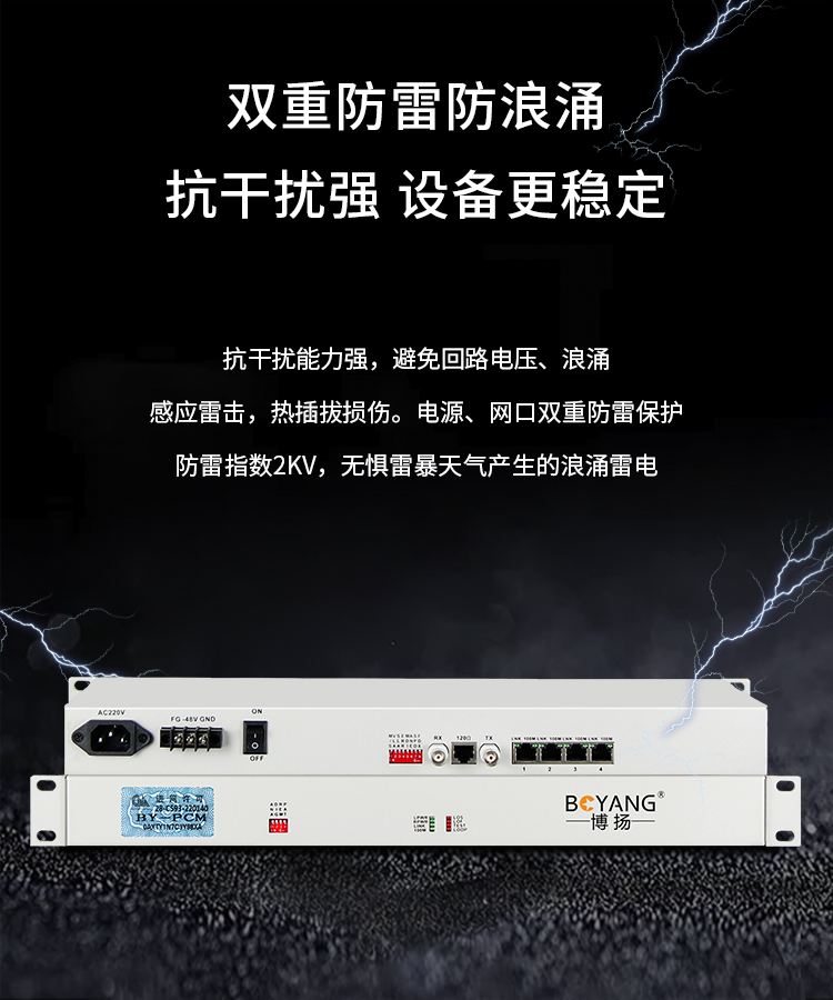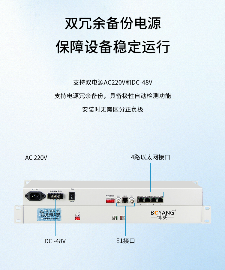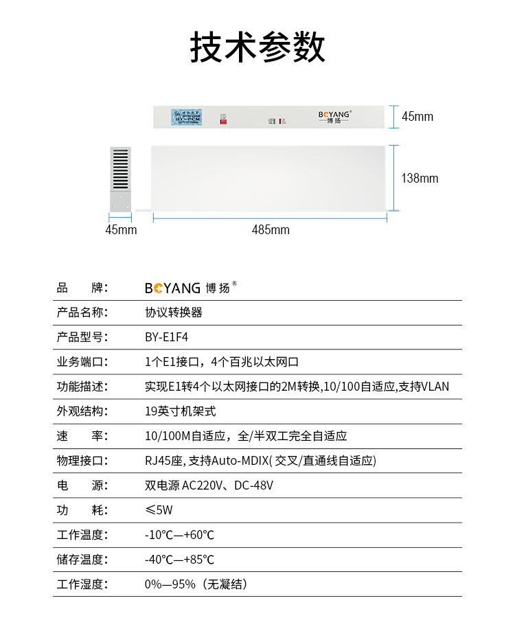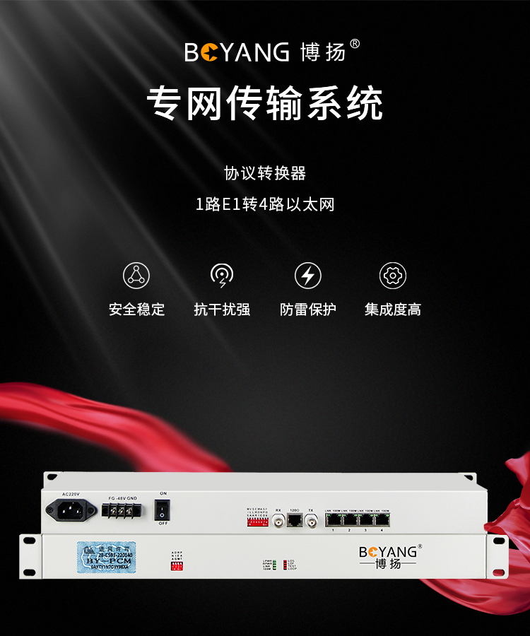 博扬(BOYANG)BY-E1F4 协议转换器 1路E1(2M)转4路以太网 机架式 1对价 白色