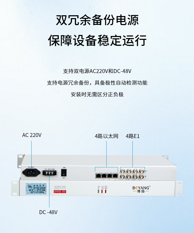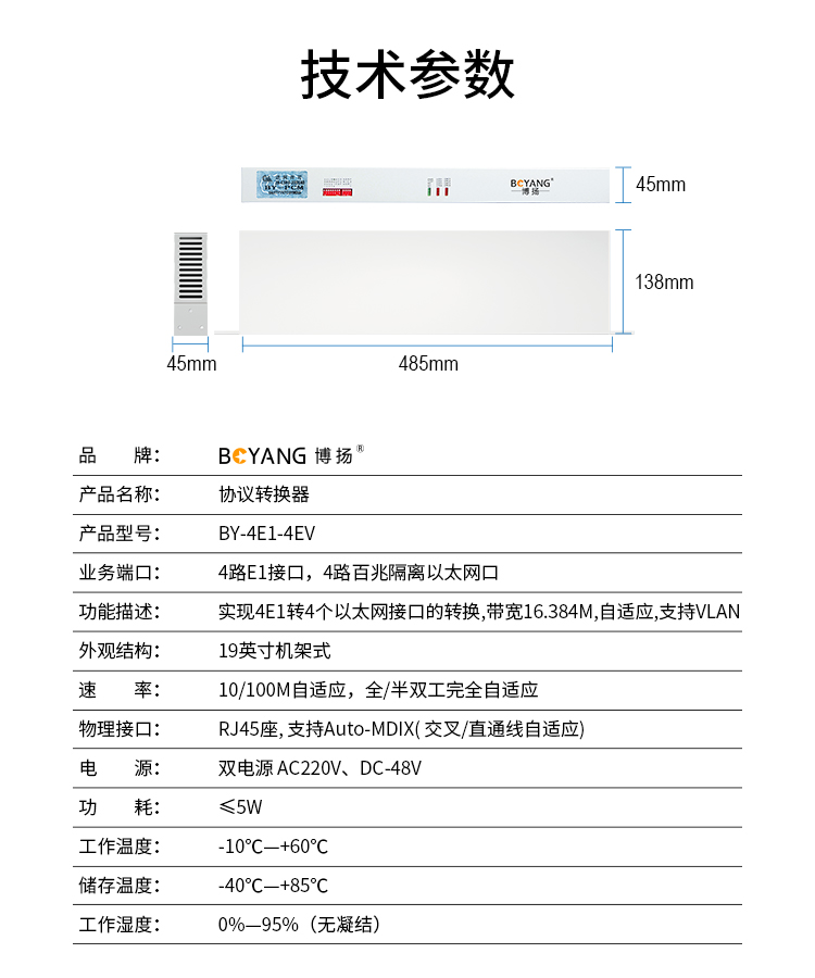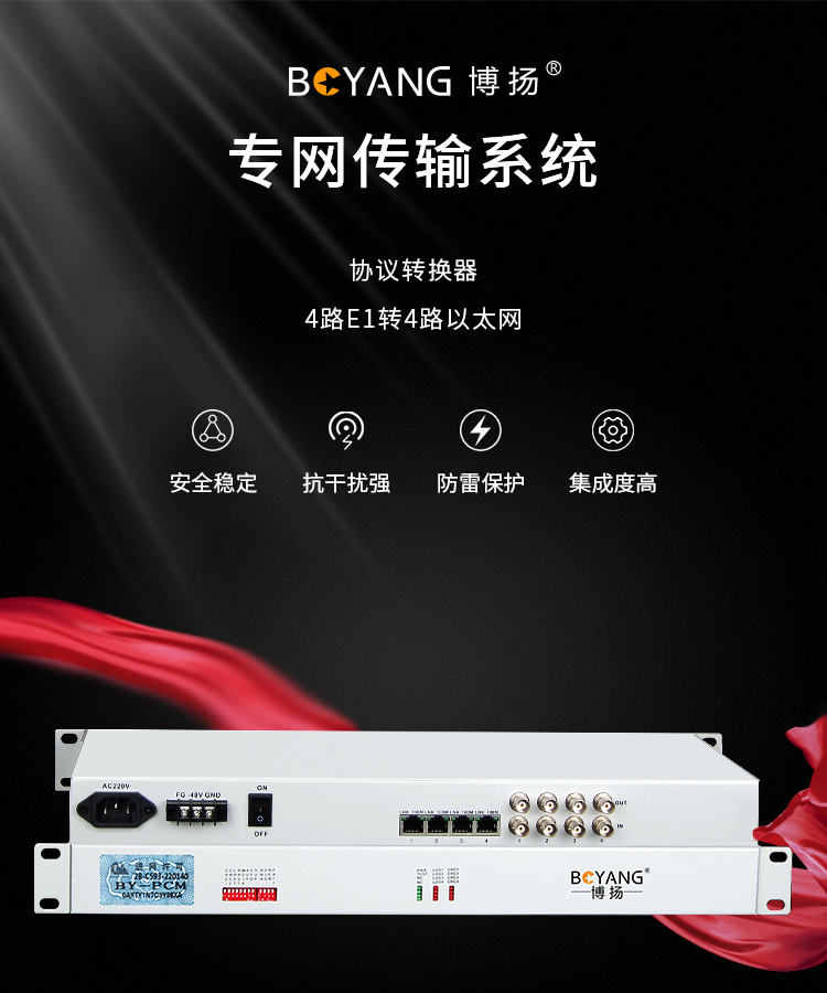 博扬(BOYANG)BY-4E1-4EV 协议转换器 4路E1转4路以太网 以太网带逻辑隔离 机架式 1对价 白色