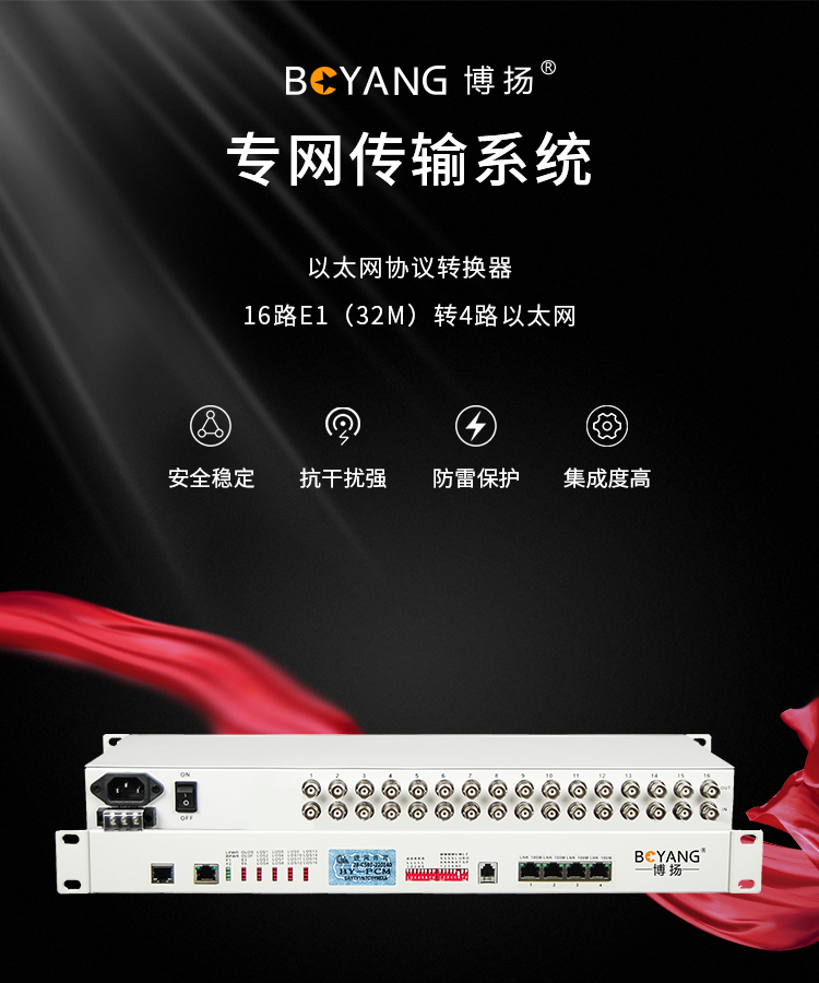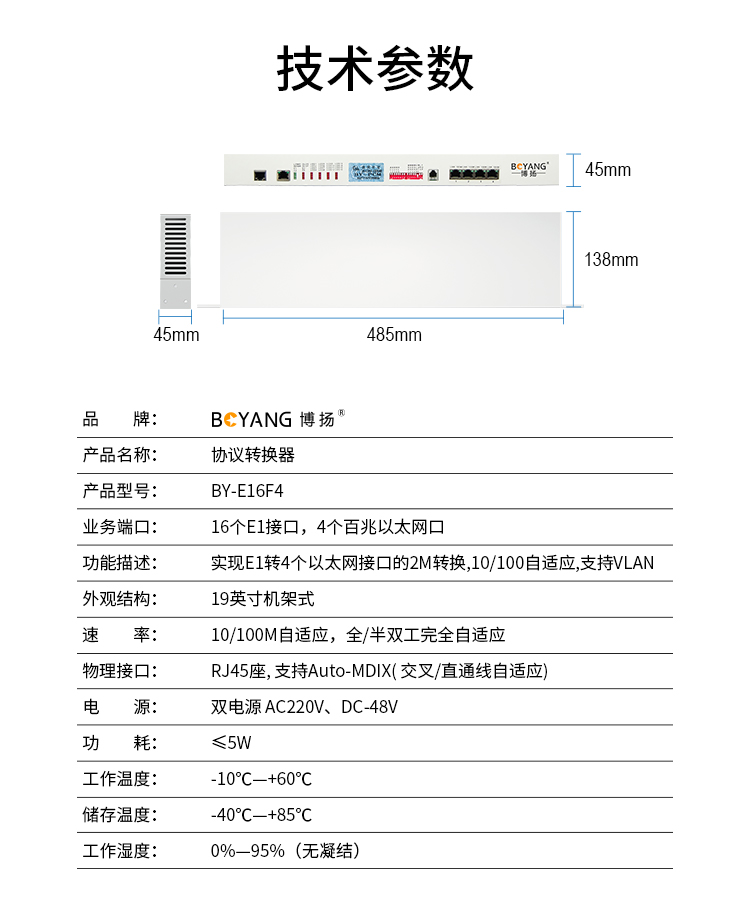 博扬(BOYANG)BY-E16F4 协议转换器 16路E1(32M)转4路以太网 机架式 1对价 白色