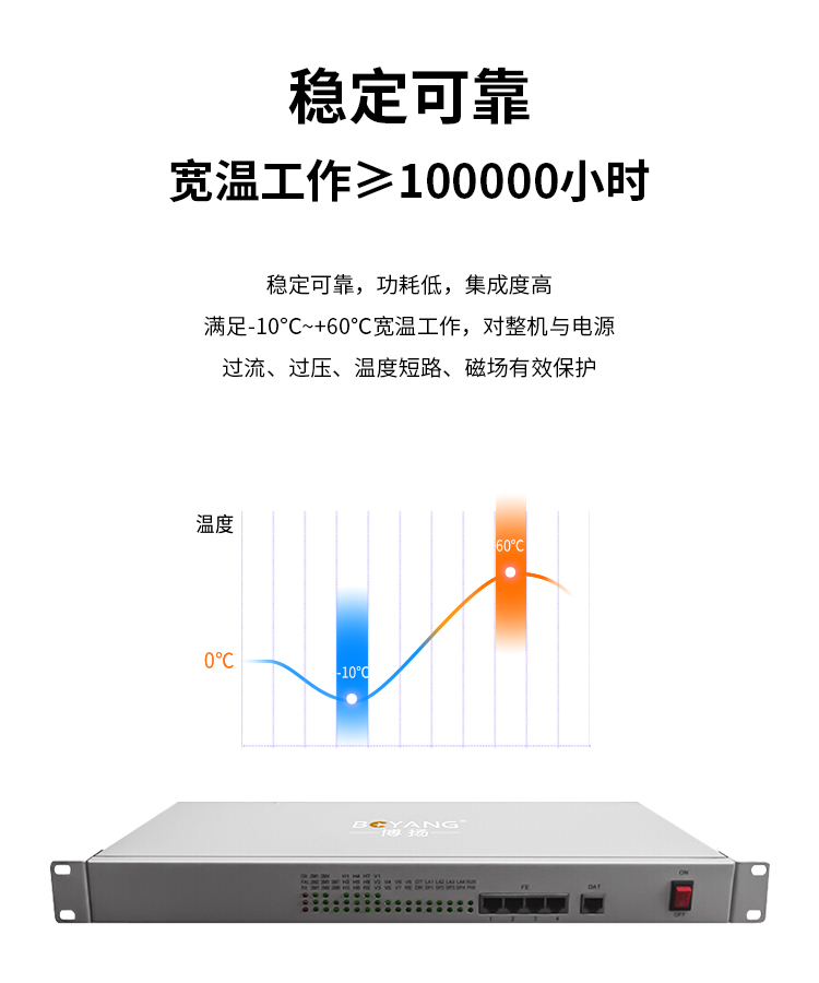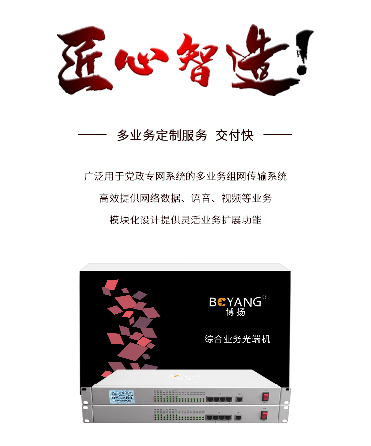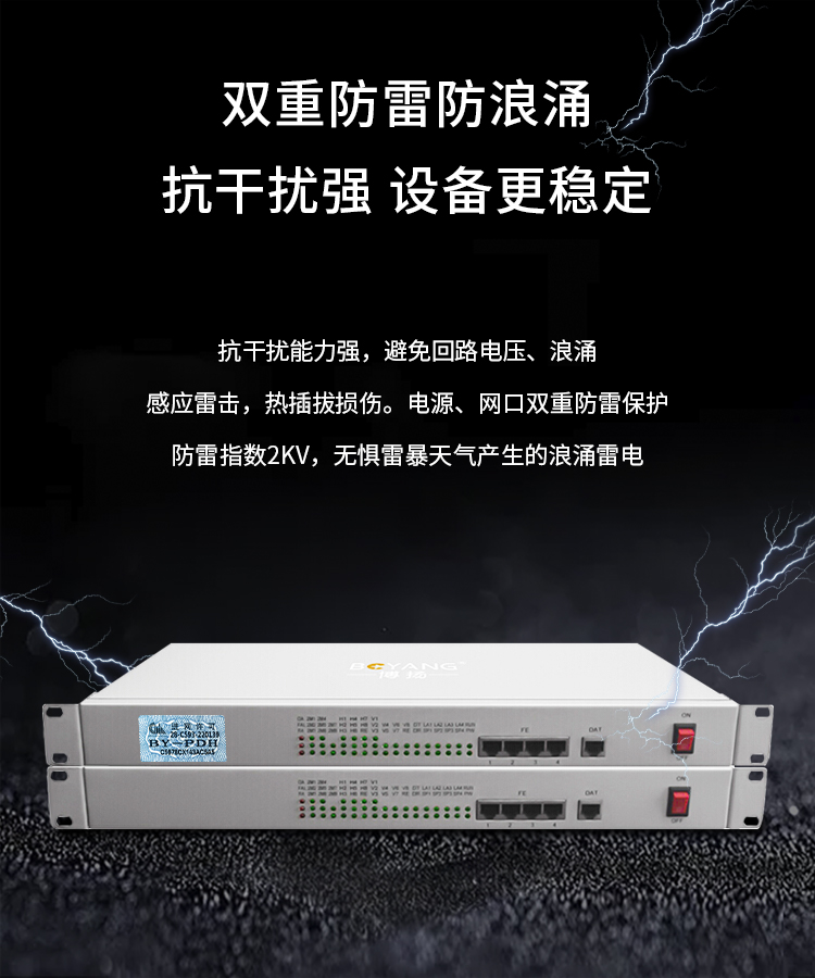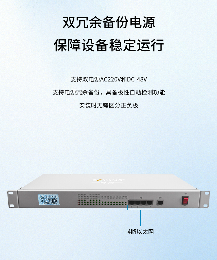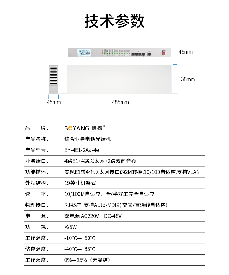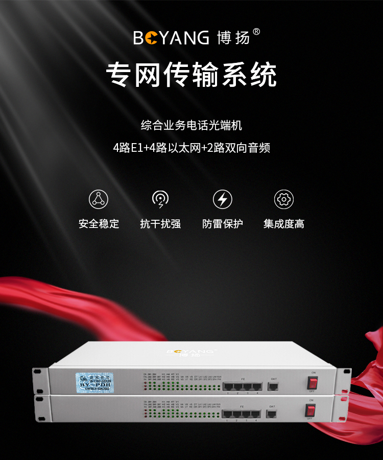 博扬(BOYANG)综合业务电话光端机 4路E1+4路以太网+2路双向音频 单纤20km 机架式 1对价BY-4E1-2Aa-4e 白色
