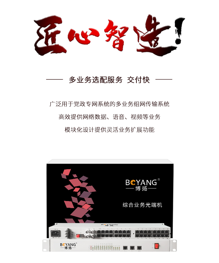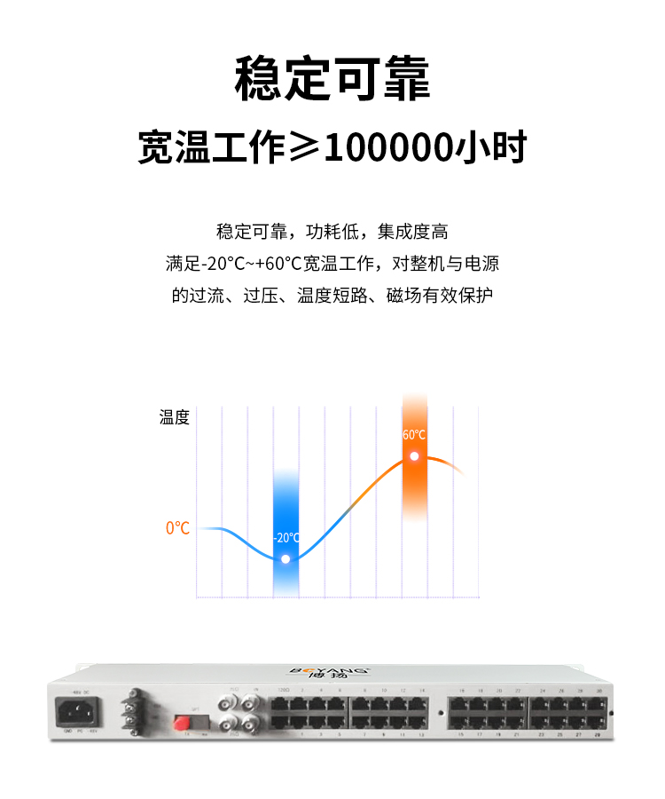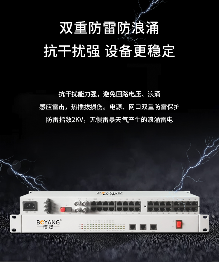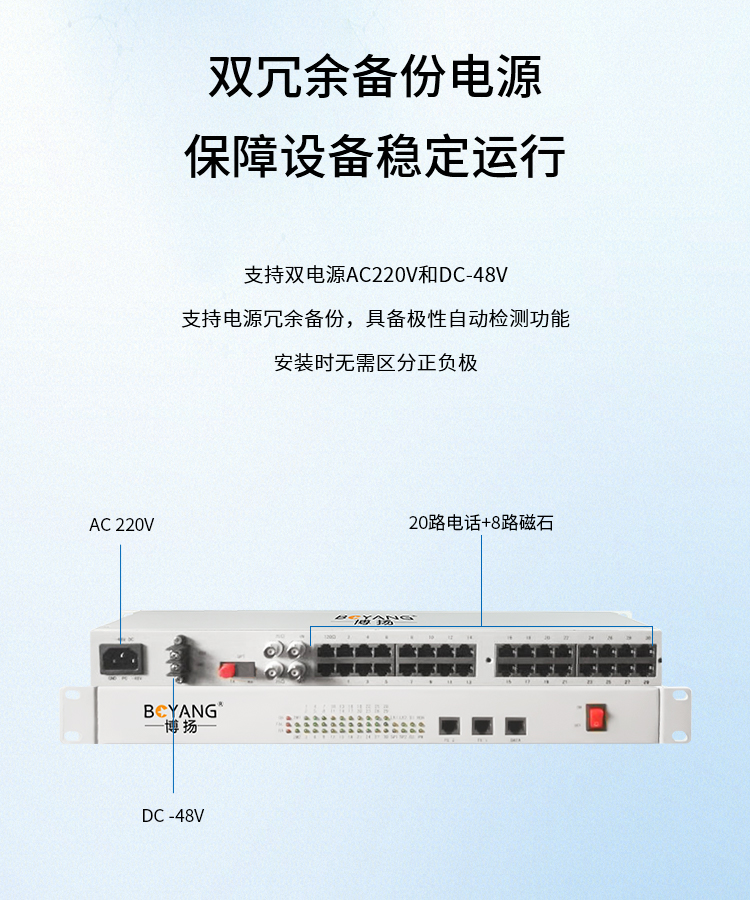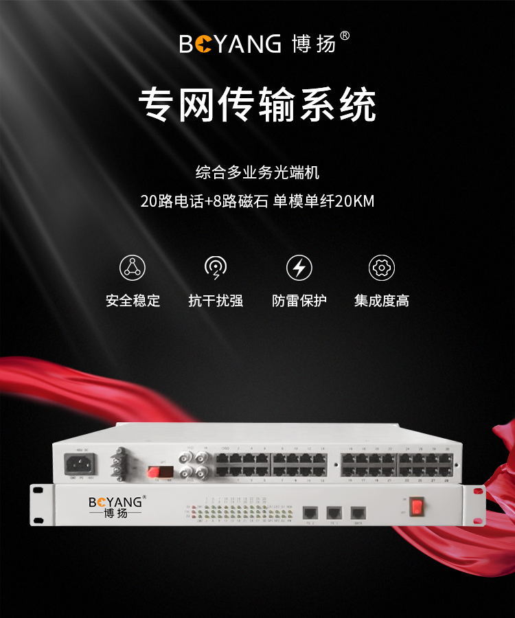 博扬(BOYANG)综合业务电话光端机 20路电话+8路磁石 单模单纤20KM 机架式 1对价BY-20P-8M 白色
