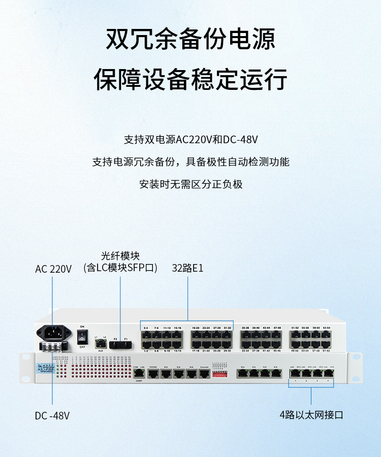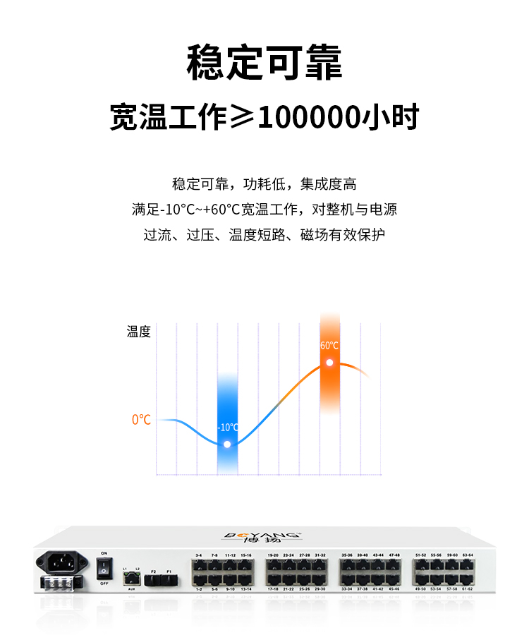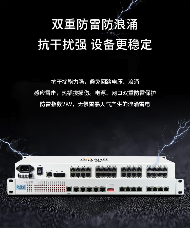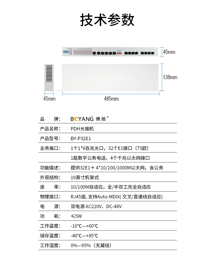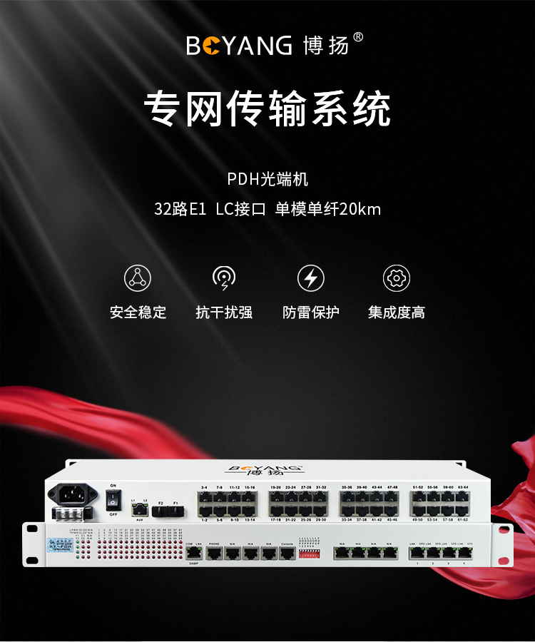 博扬(BOYANG)PDH光端机32路E1 32路2M光端机 光纤收发器 LC单纤20公里 机架式双电源 1对价BY-P32E1 白色