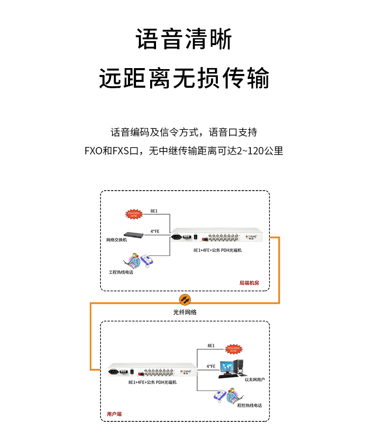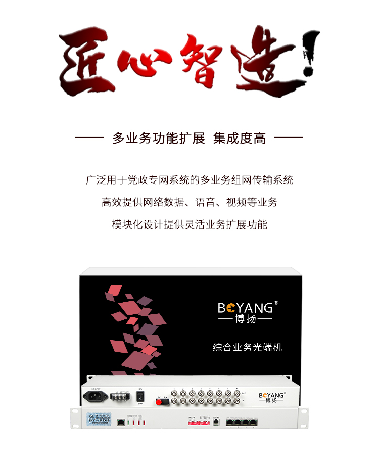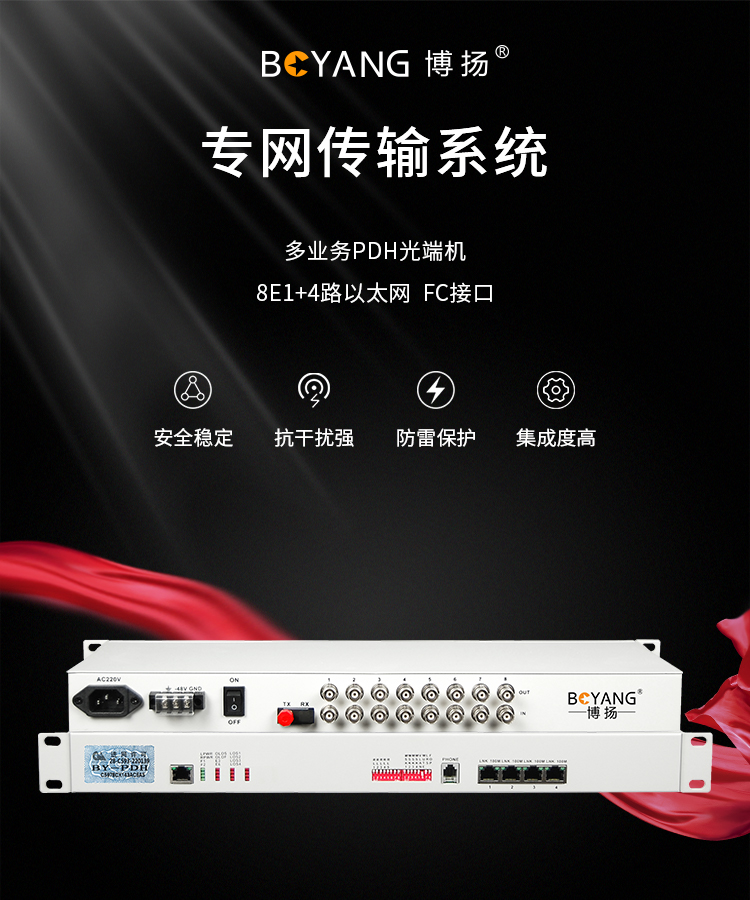 博扬(BOYANG)BY-8E1-4E-120km PDH光端机8E1 8路2m+4路以太网 单纤120公里 机架式双电源 白色