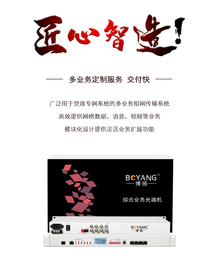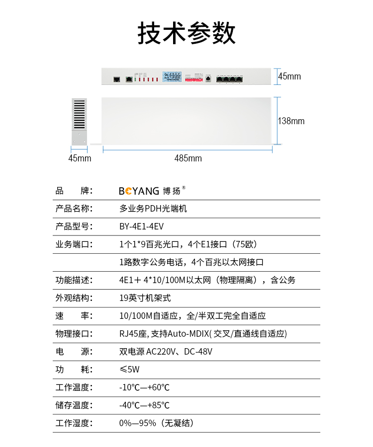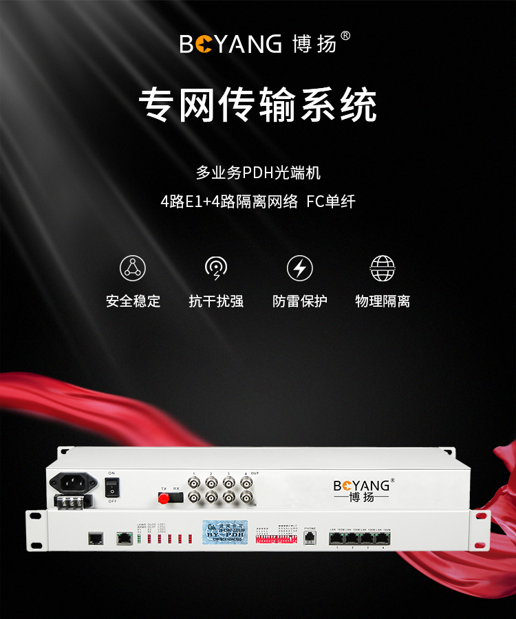 博扬(BOYANG)BY-4E1-4EV PDH光端机4E1 4路2M+4路以太网带物理隔离 FC单纤20公里 机架式 双电源 白色