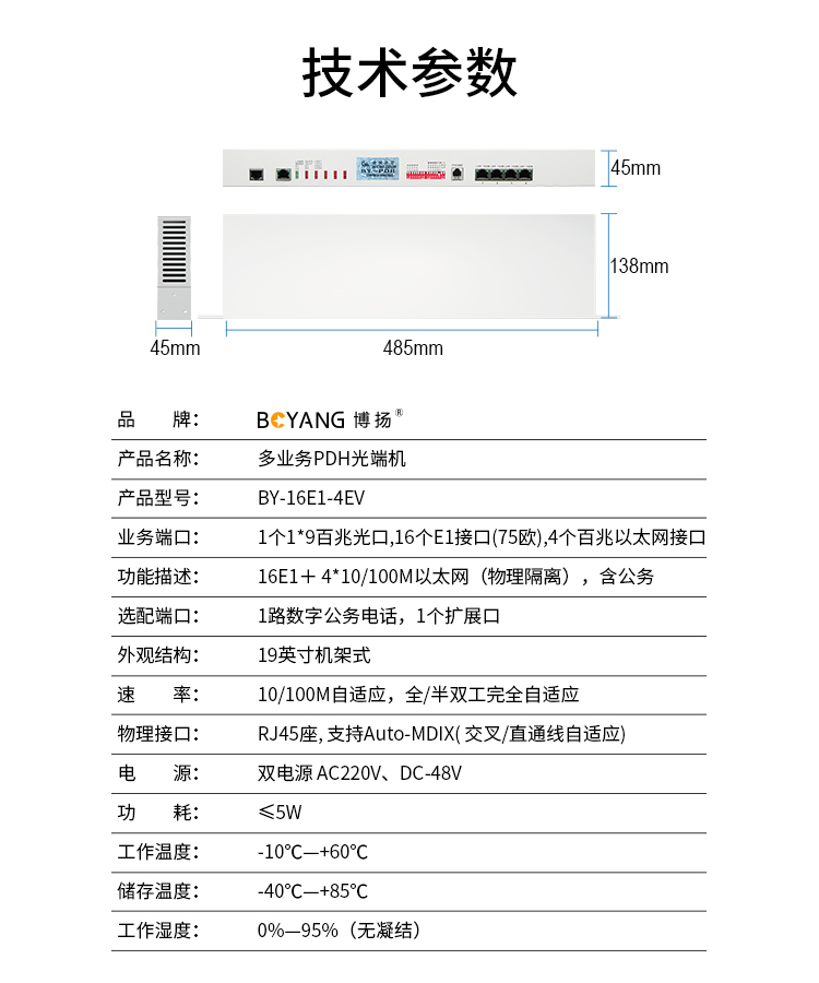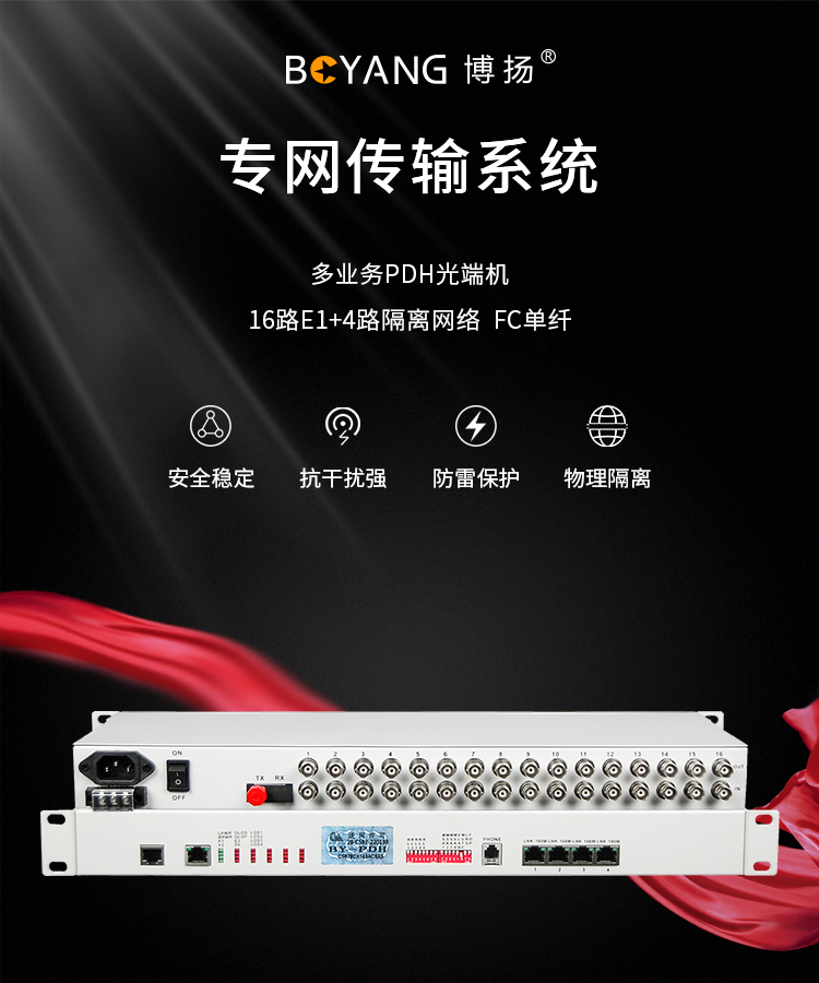 博扬(BOYANG)BY-16E1-4EV PDH光端机16E1 16路2M+4路以太网带物理隔离 FC单纤20公里机架式双电源 白色