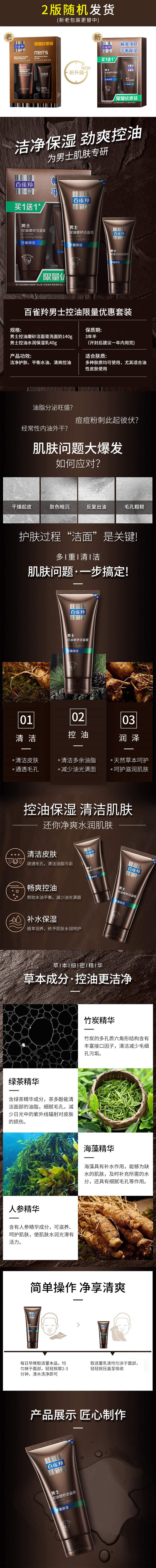 百雀羚男士控油磨砂洁面膏套装(140g洁面乳+40保湿乳)(单位:套) 褐色