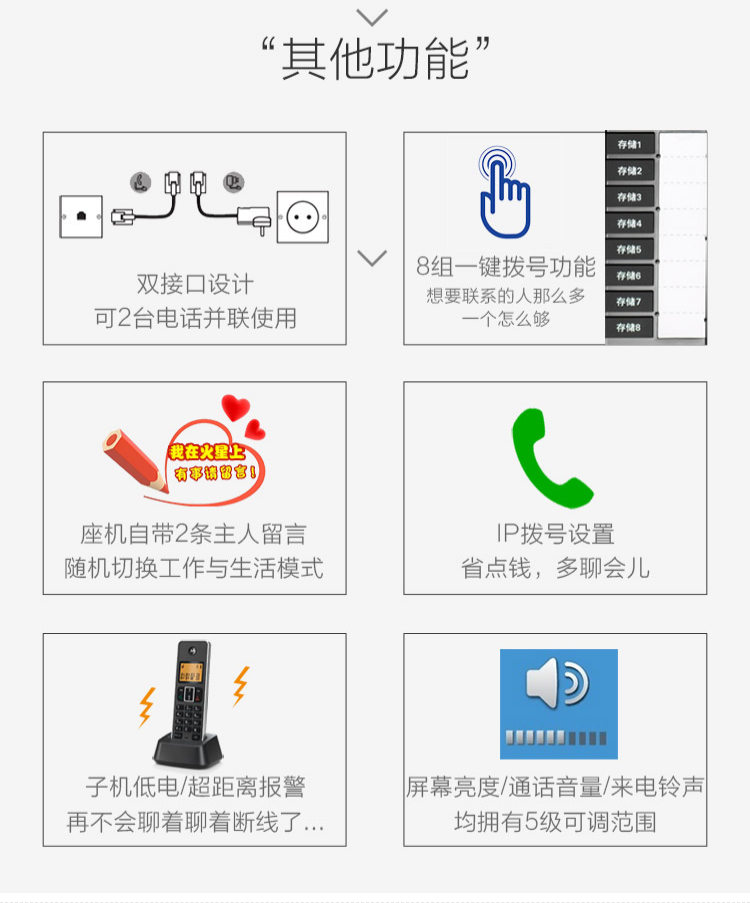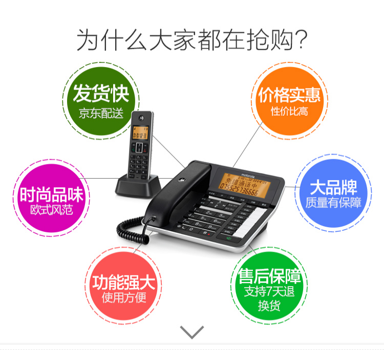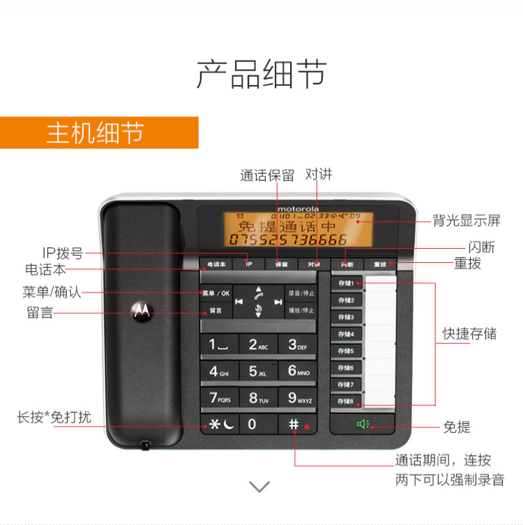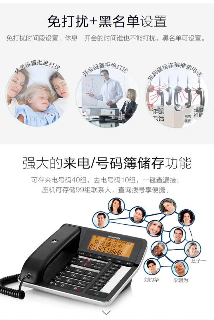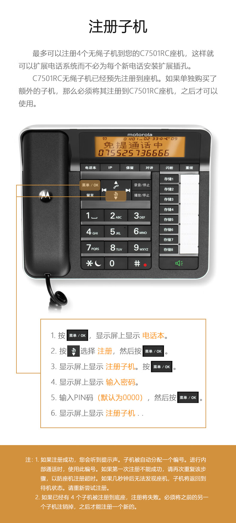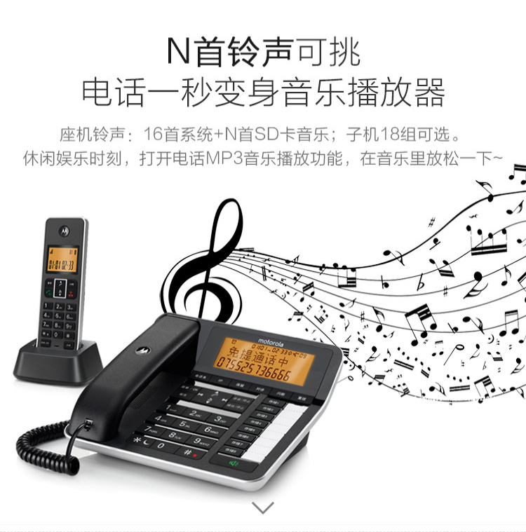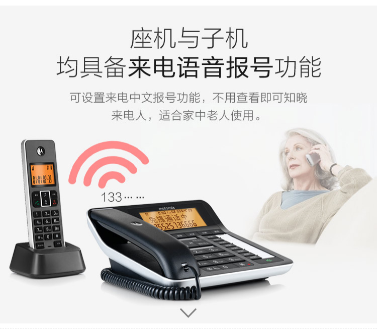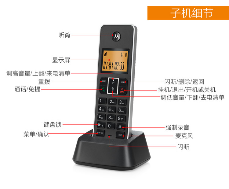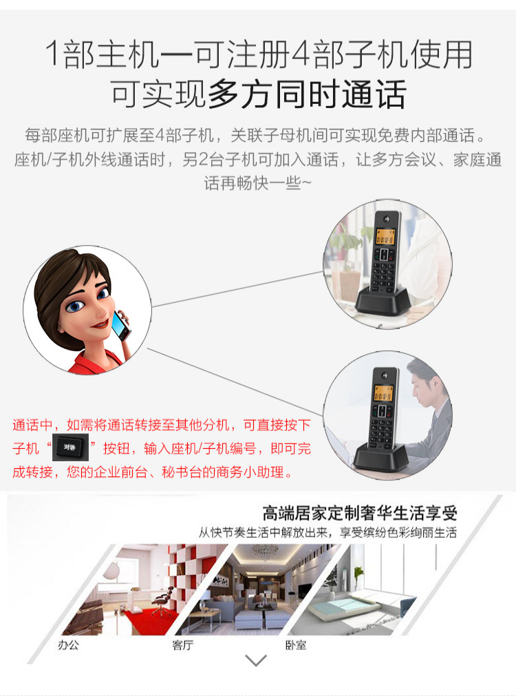 摩托罗拉(Motorola) C7501电话机无线座机子母机固定电话办公家用 7501RC一拖四 个 黑色