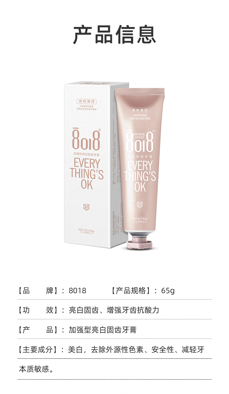 8018 加强型 亮白固齿牙膏(单位:支) 粉色