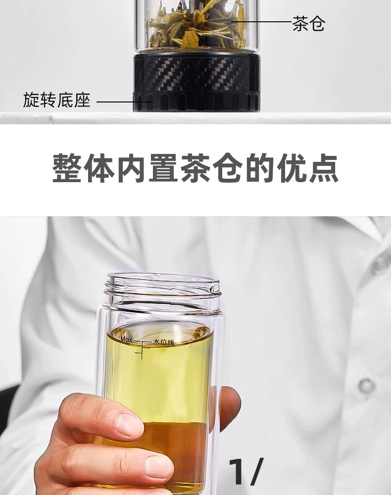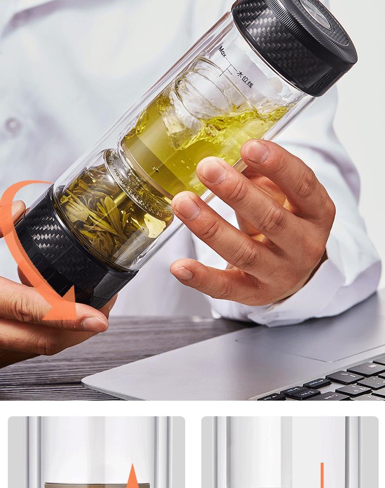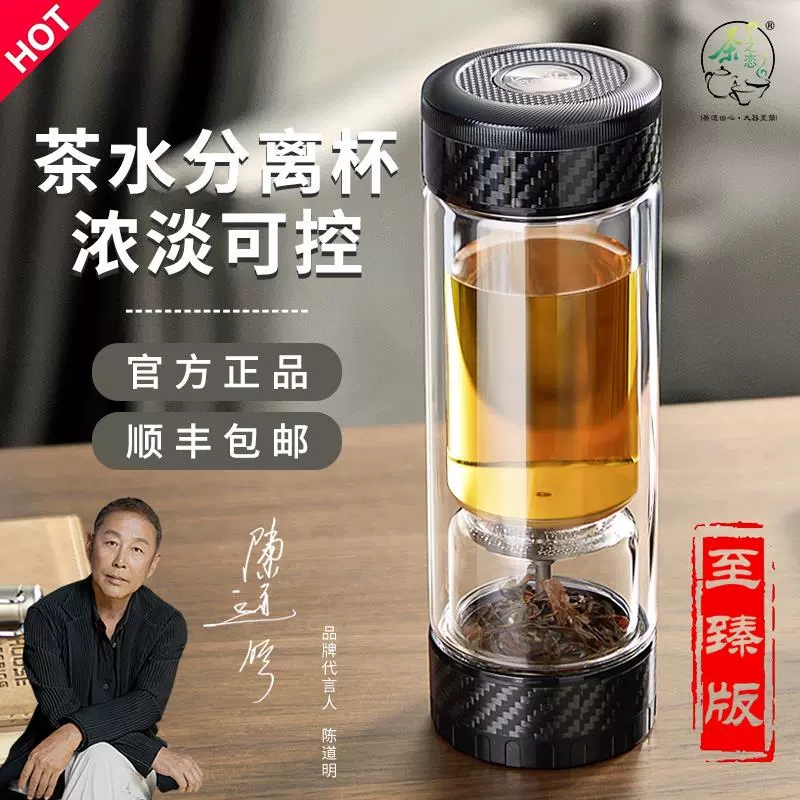 茶之恋 茶水分离双层玻璃杯 CZL-016-70S 380ml 黑色