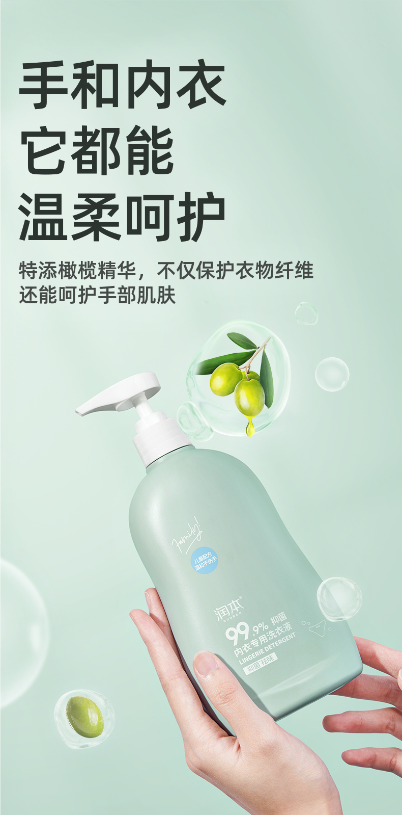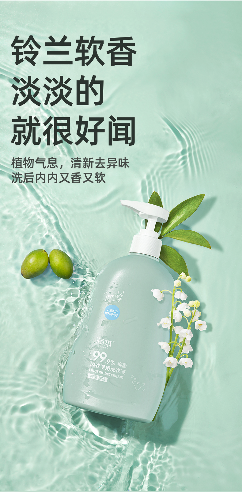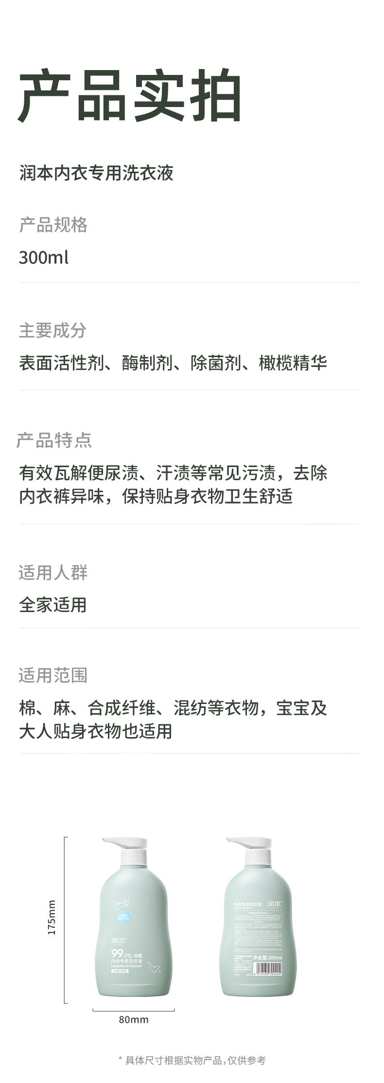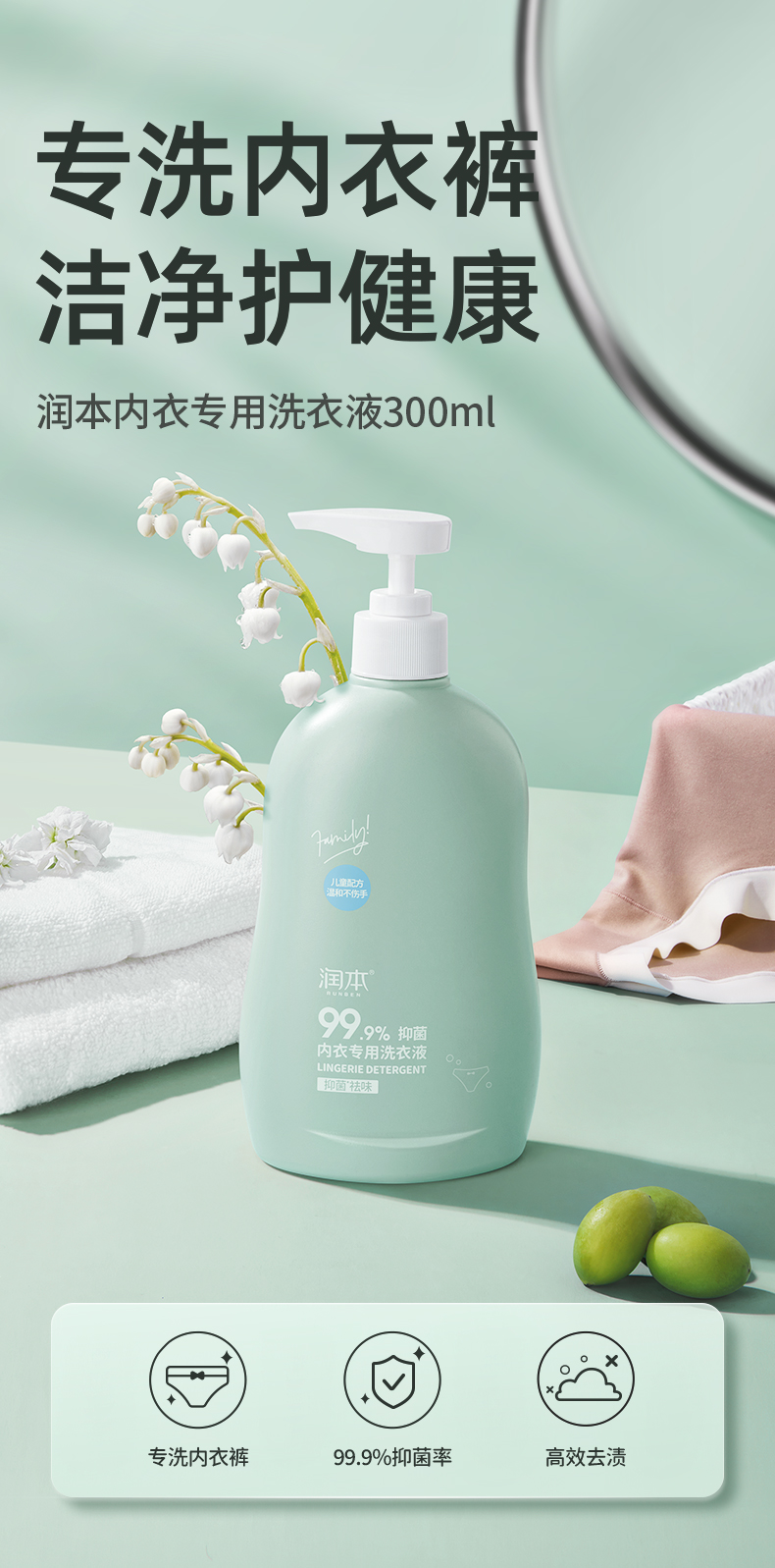 润本内衣专用洗衣液300ml 天蓝色