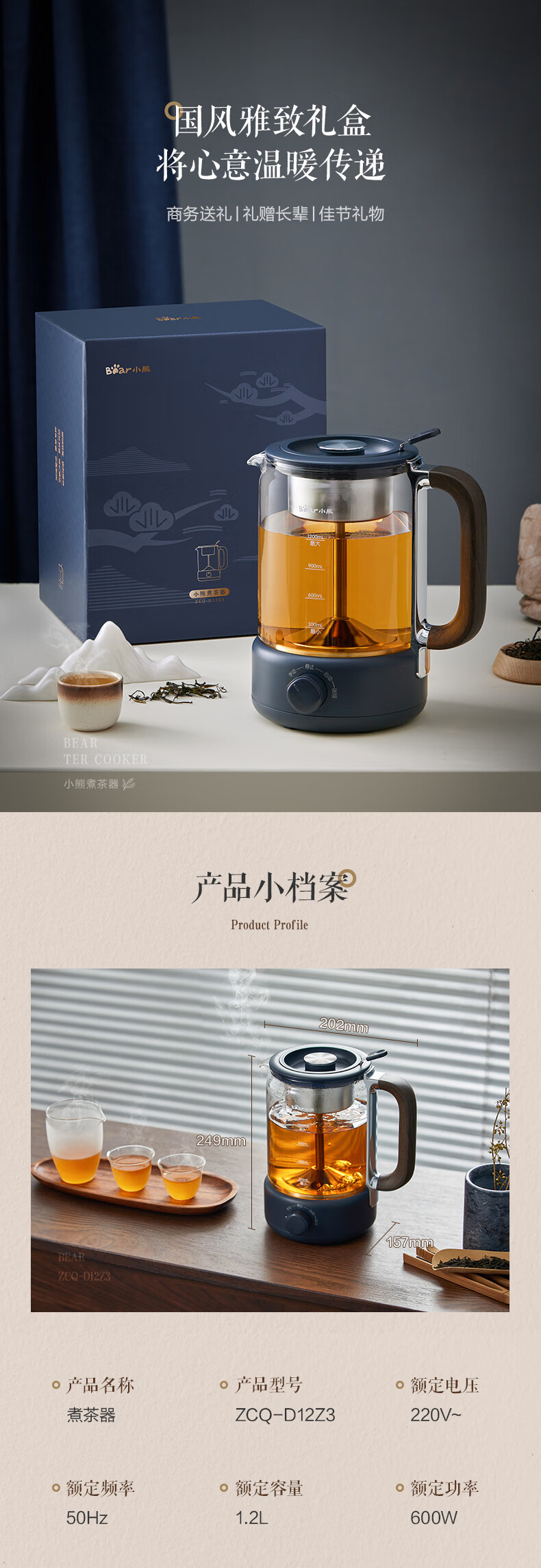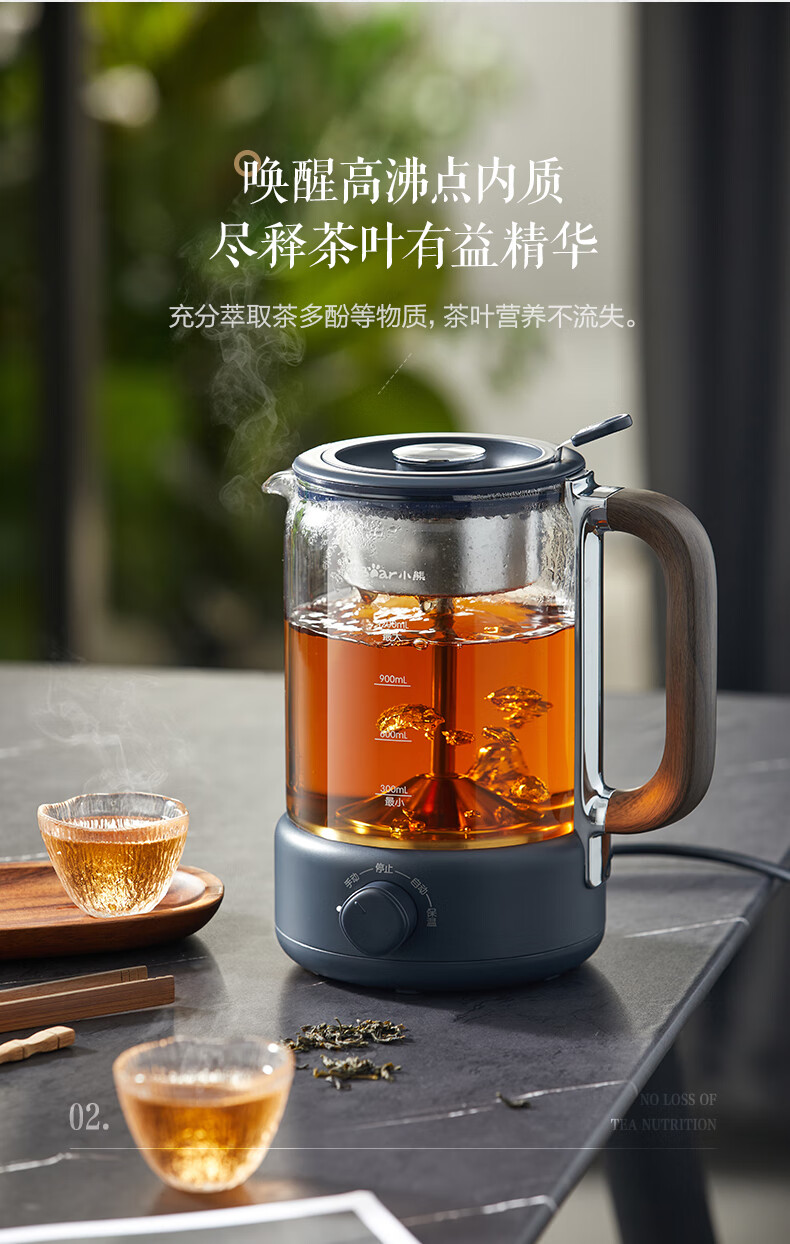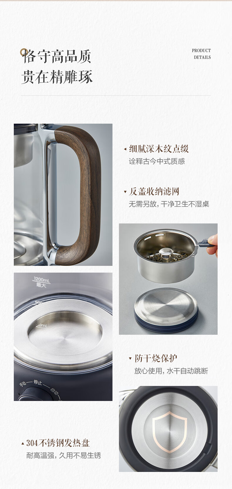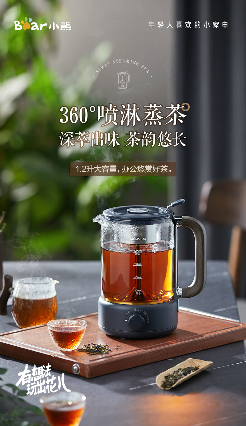 小熊(Bear)养生壶 1.2L大容量煮茶器煮茶壶 复古式木纹手柄喷淋蒸茶壶泡茶壶 煮茶烧水一体 ZCQ-D12Z3