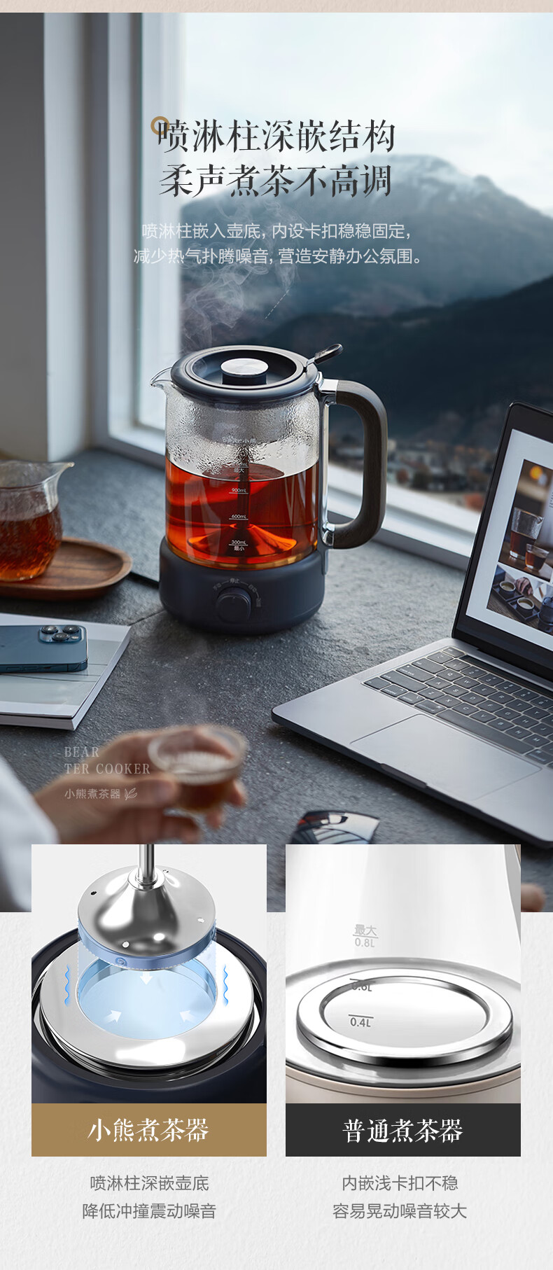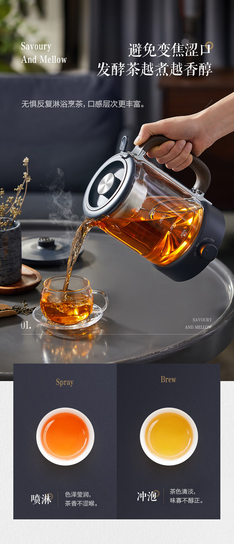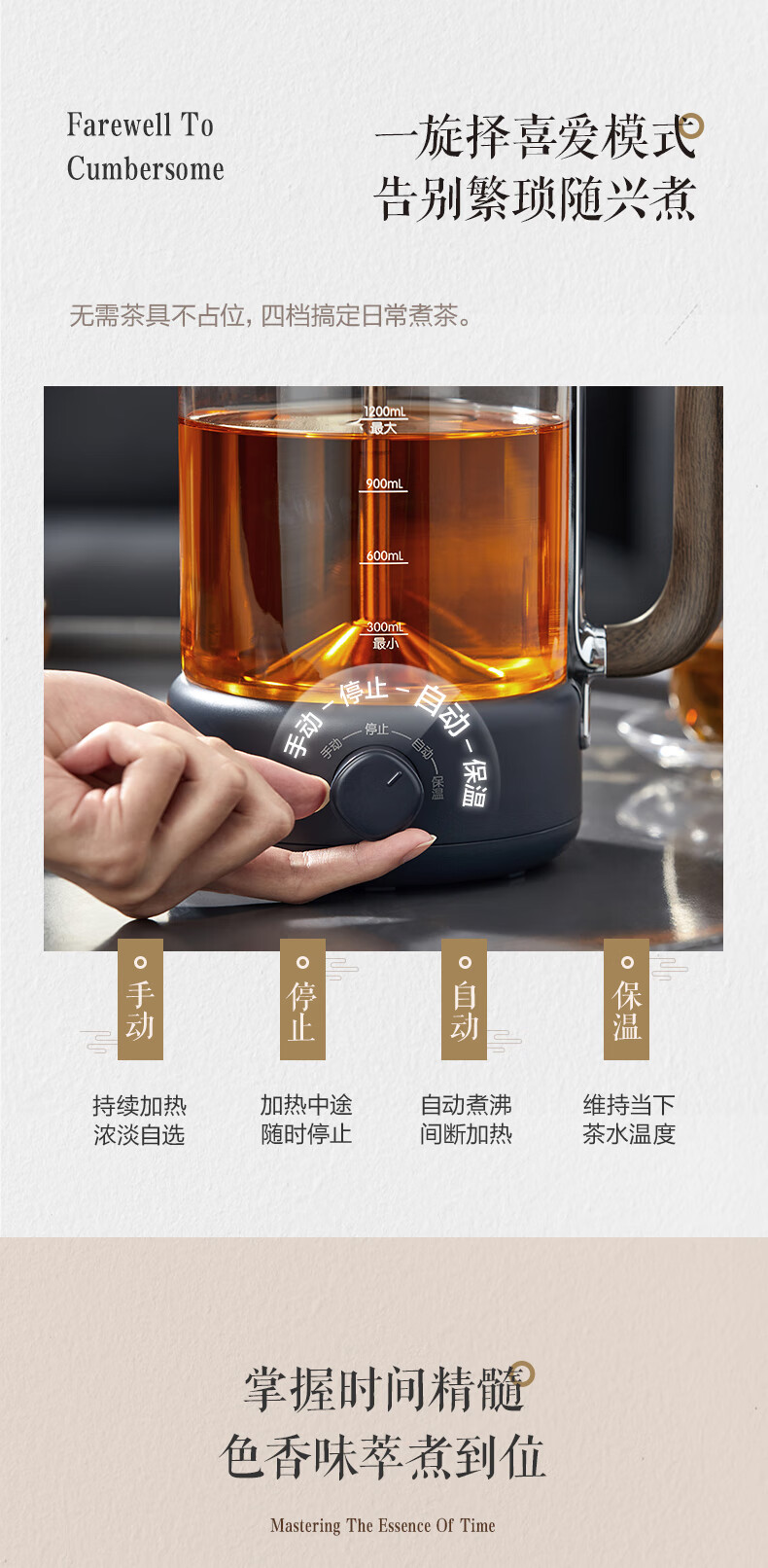 小熊(Bear)养生壶 1.2L大容量煮茶器煮茶壶 复古式木纹手柄喷淋蒸茶壶泡茶壶 煮茶烧水一体 ZCQ-D12Z3