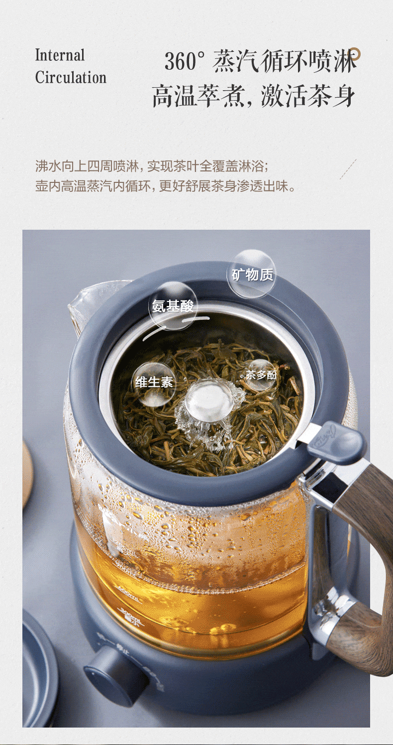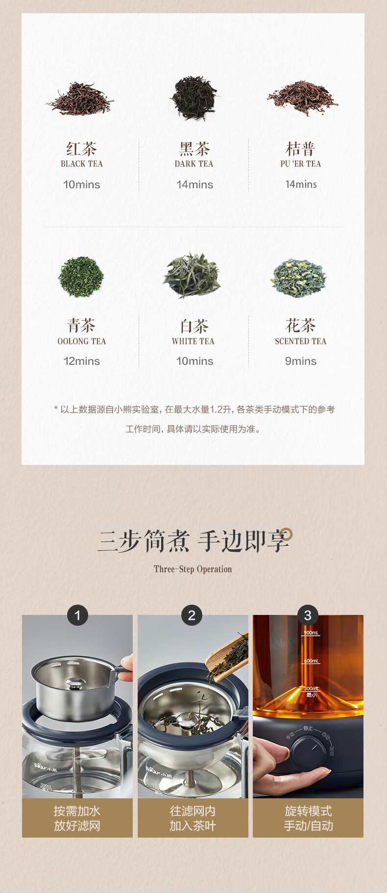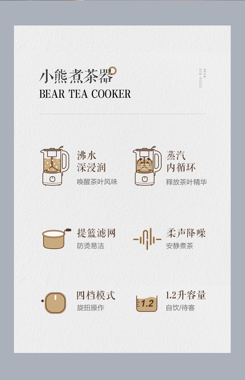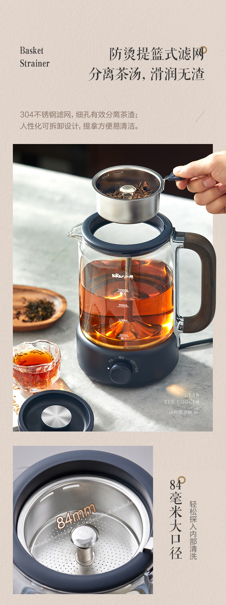 小熊(Bear)养生壶 1.2L大容量煮茶器煮茶壶 复古式木纹手柄喷淋蒸茶壶泡茶壶 煮茶烧水一体 ZCQ-D12Z3