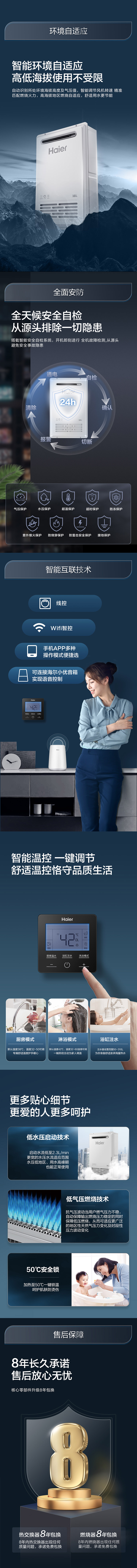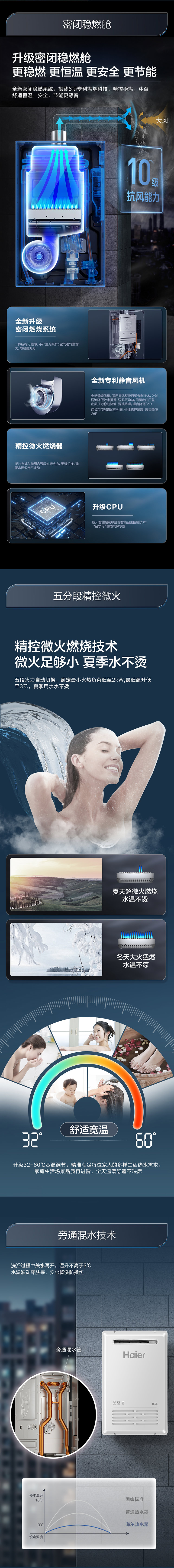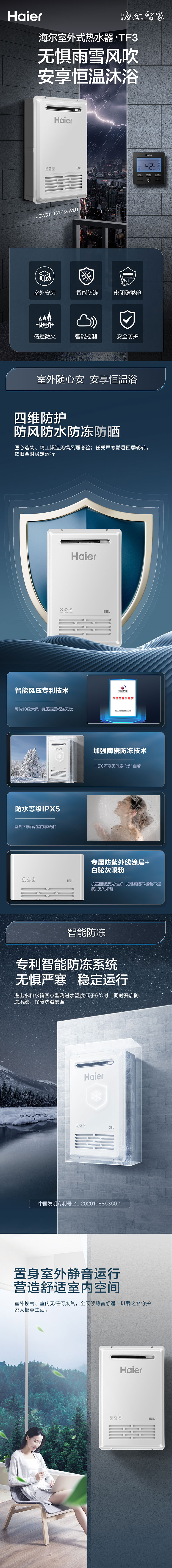 海尔 JSW31-16TF3BWU1 恒温强排式16升室外燃气热水器 银色 灰色