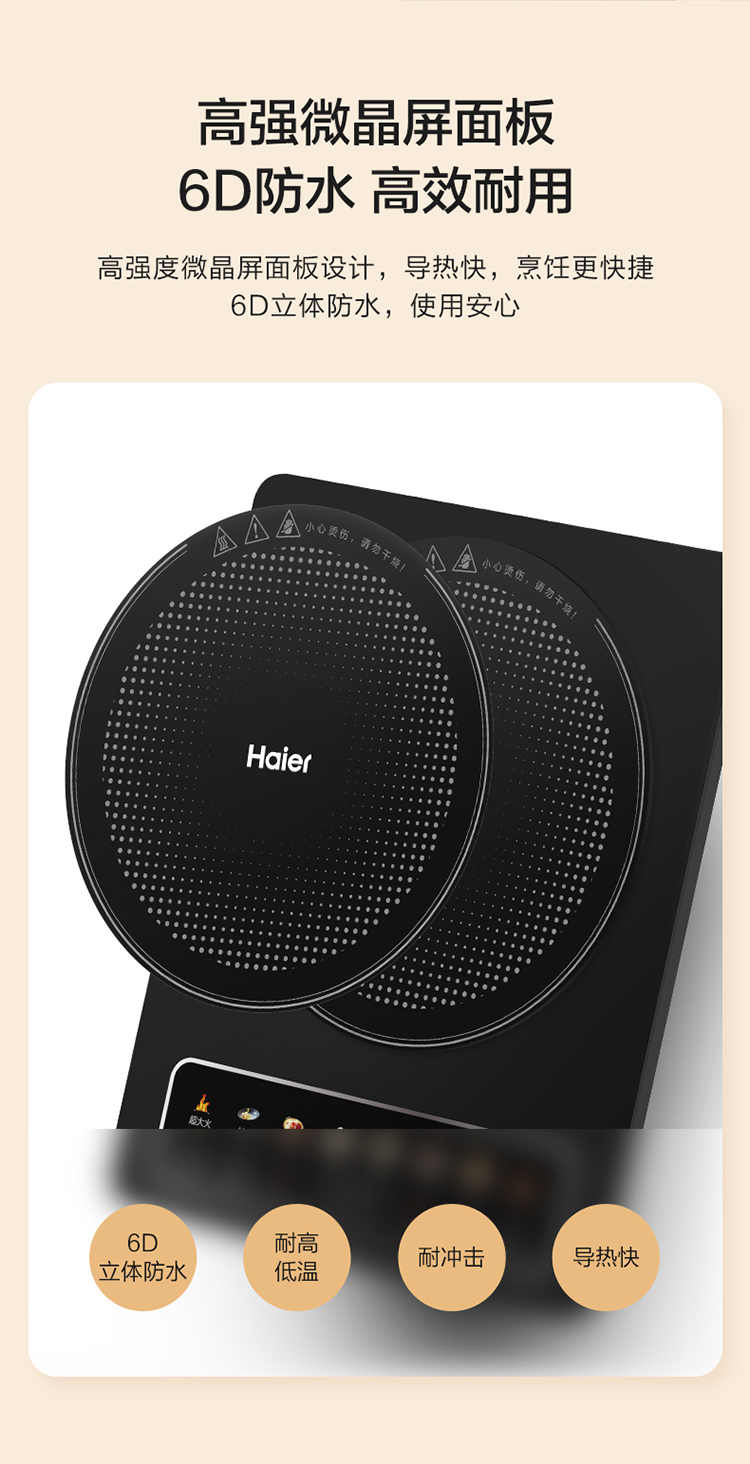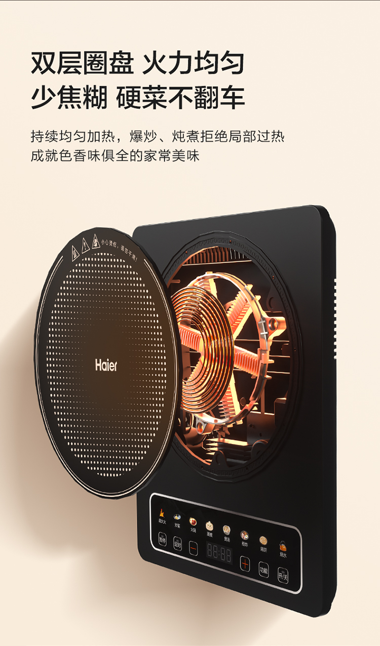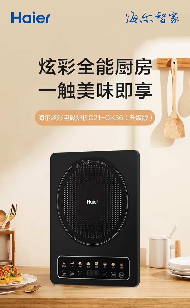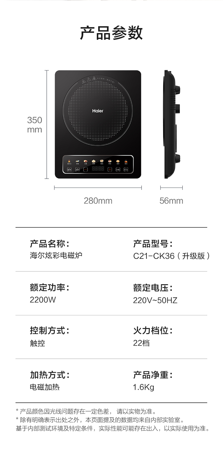 海尔(Haier)电磁炉 2200W大功率 C21-CK36升级版(台) 曜石黑