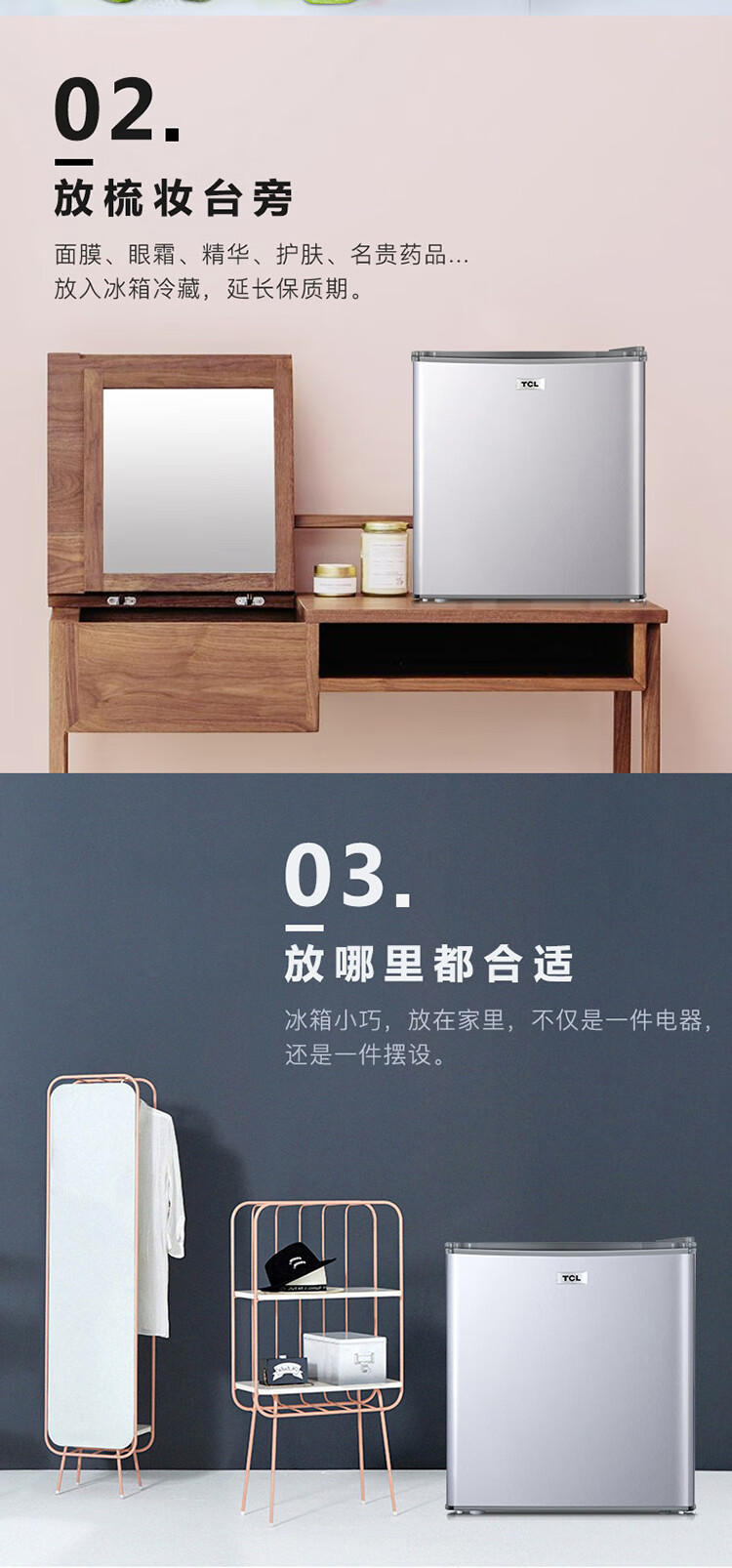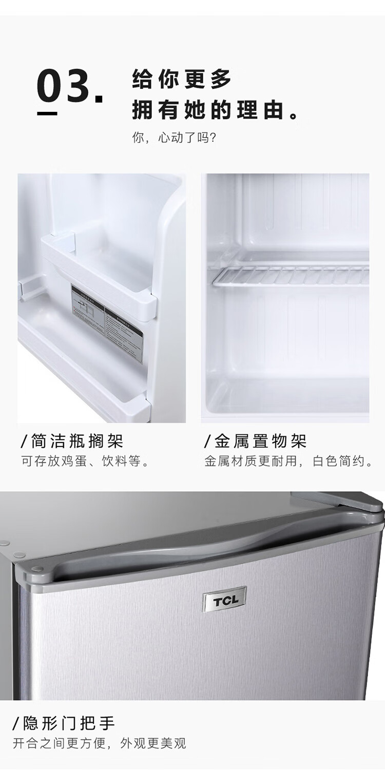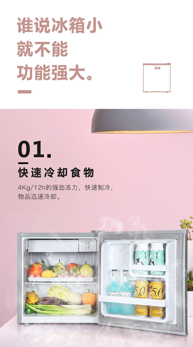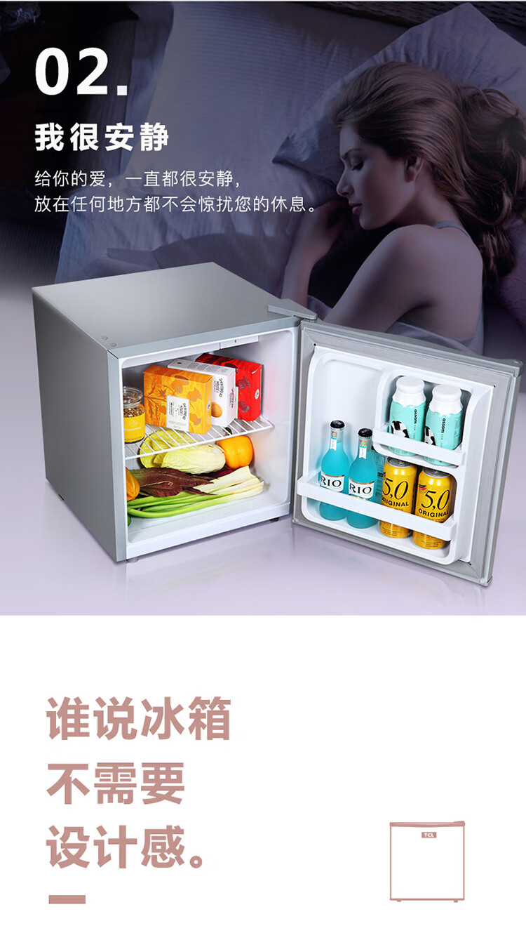 TCL48容量小型酒店冰箱 三级能效 单门直冷快速制冷 7档温度可调 特色鲜冻室BC-48H 台 银色