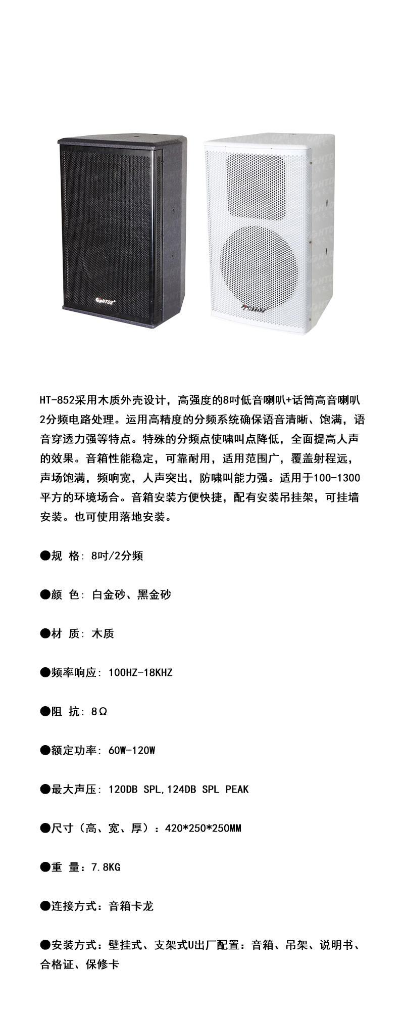 HTDZ(海天电子) 专业会议系统功放音箱 HT-852(黑色) 对 曜石黑