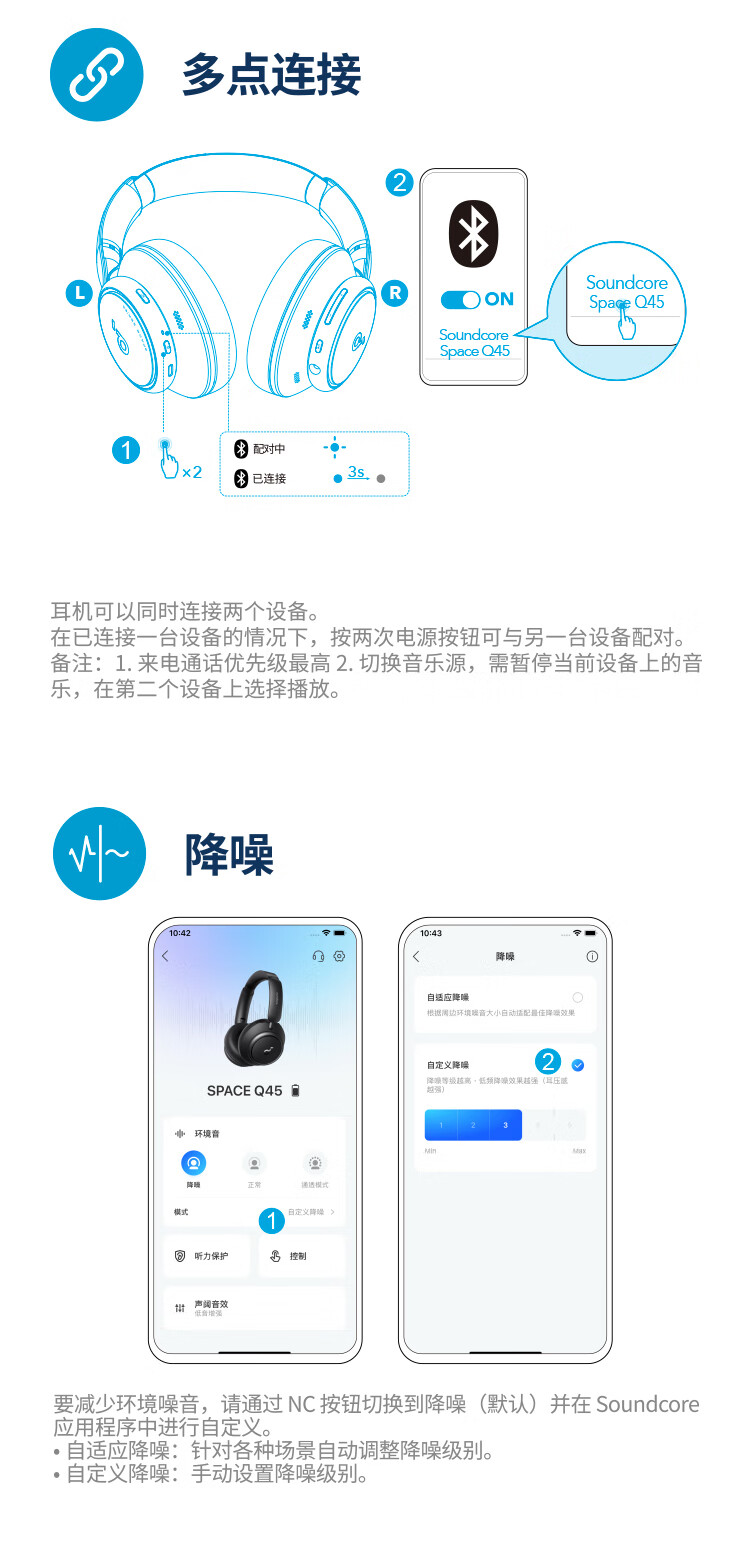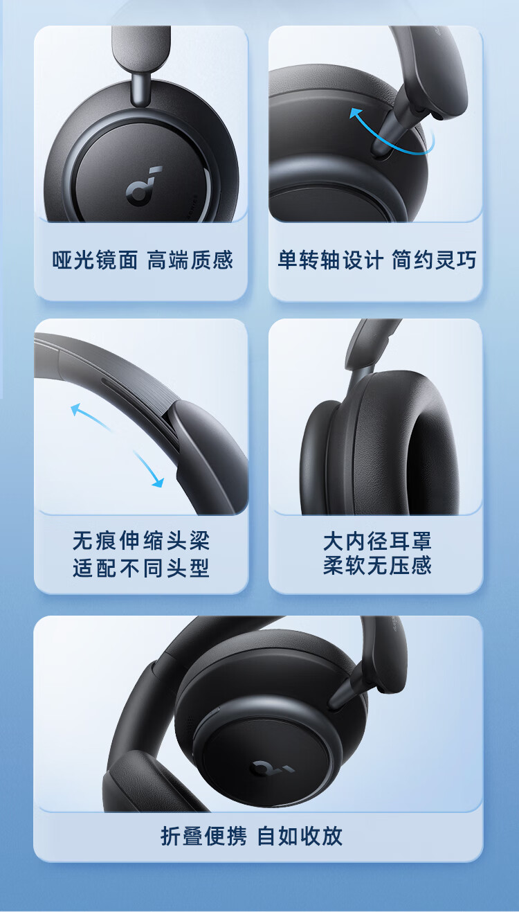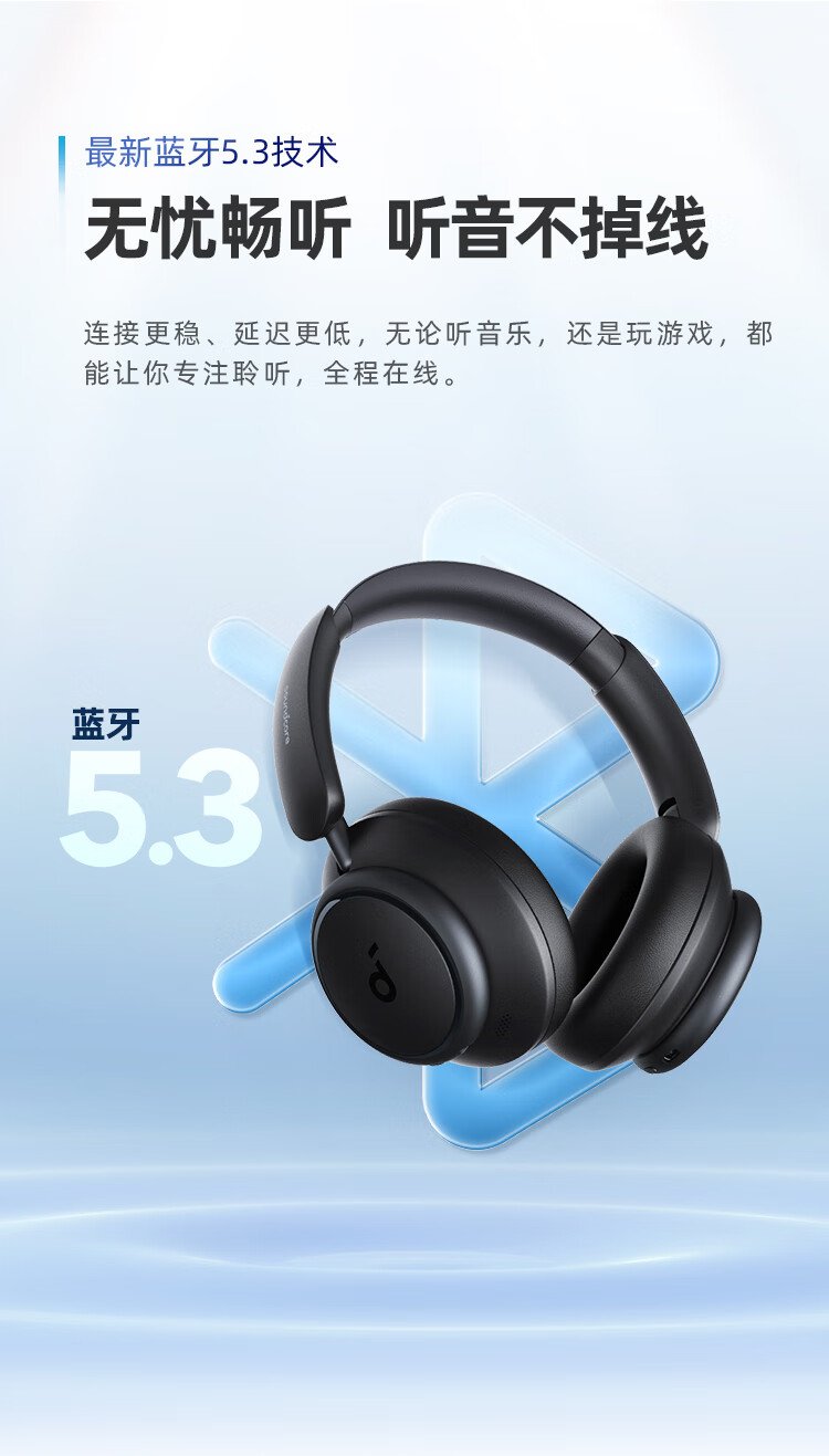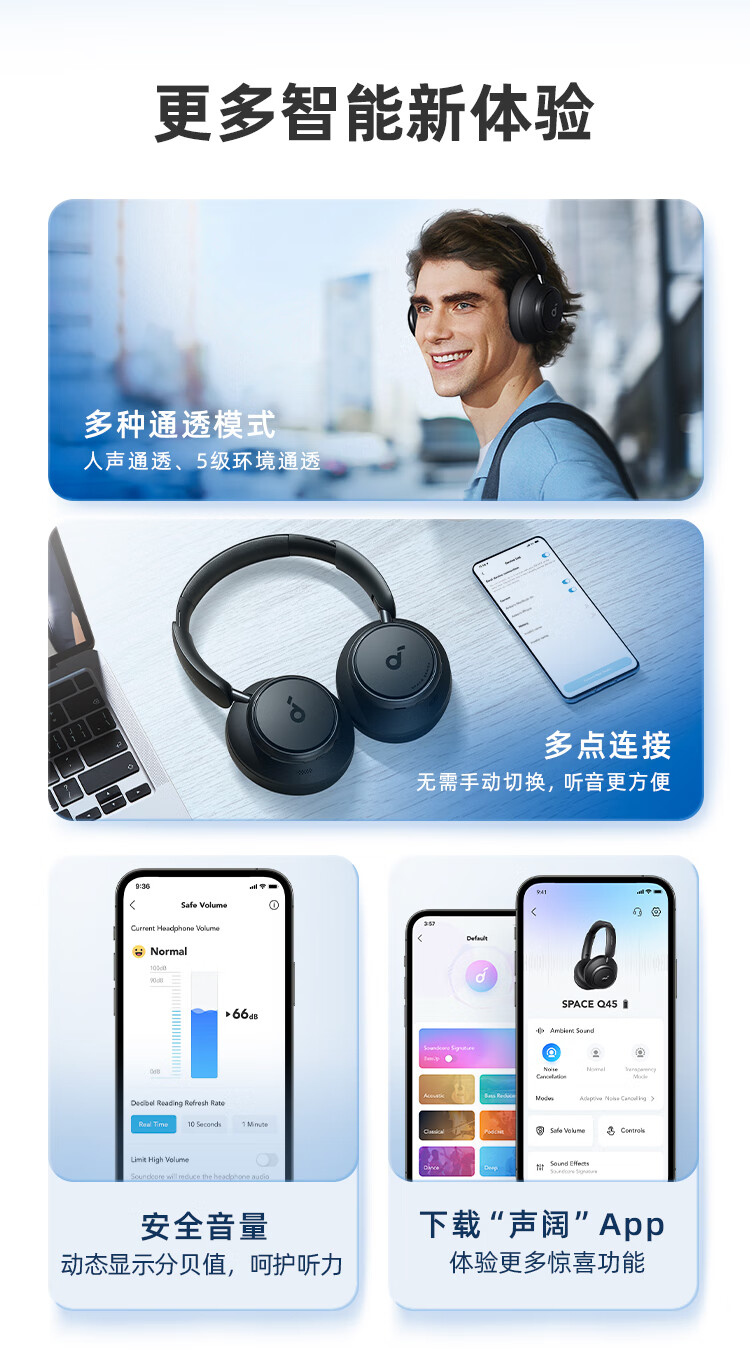 声阔Soundcore Space Q45声阔头戴式无线蓝牙耳机三重动态滤噪适用苹果/华为手机蓝色 本白色