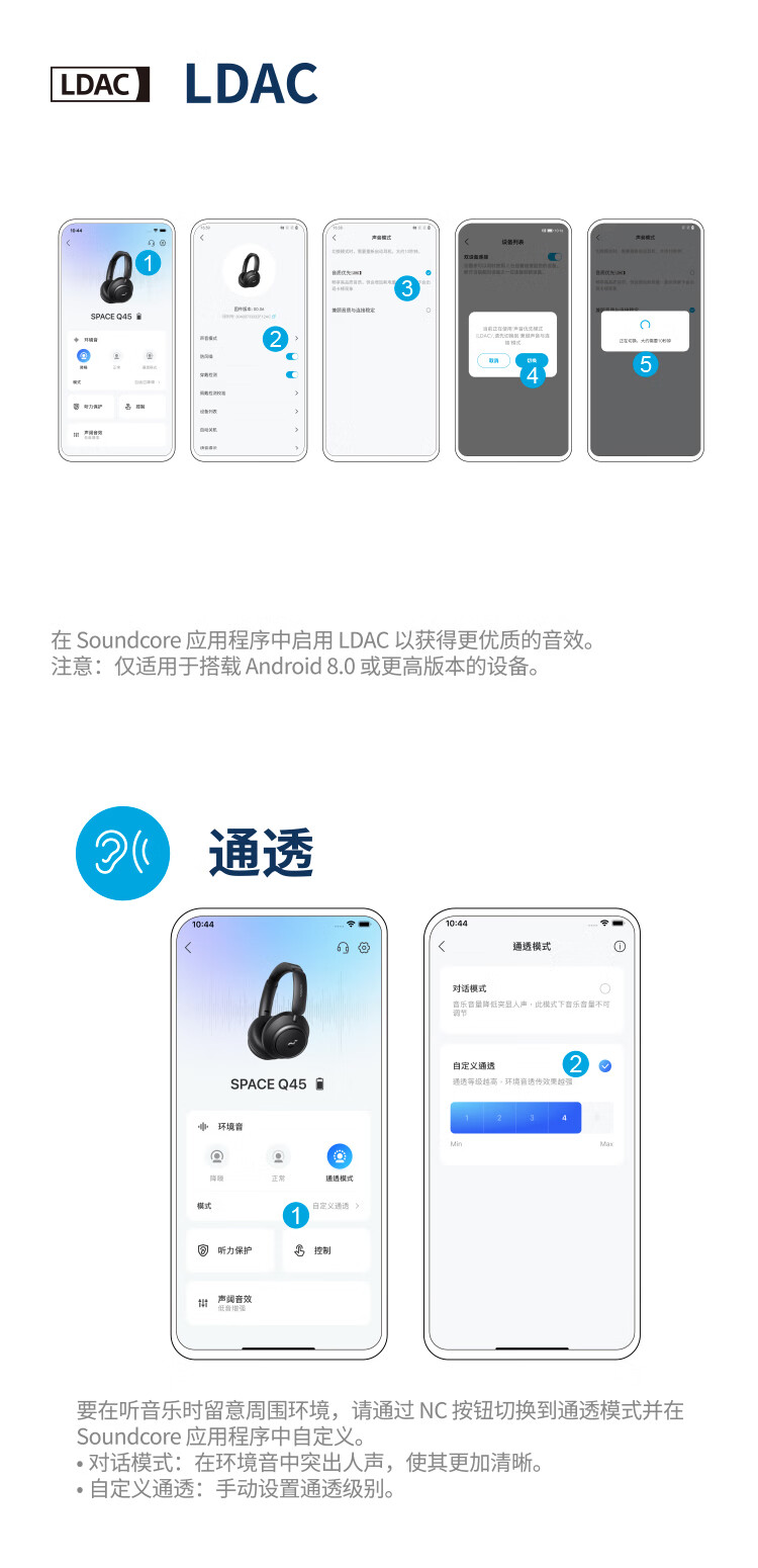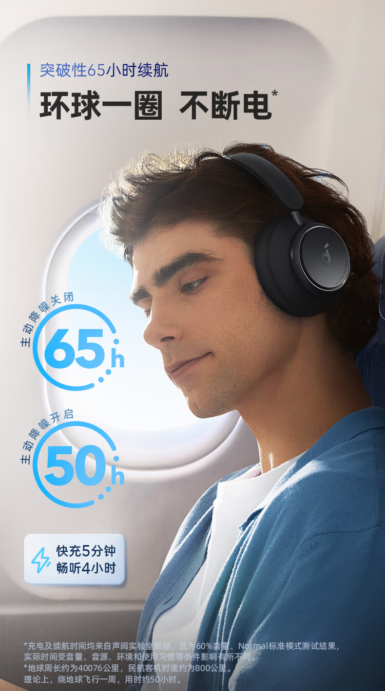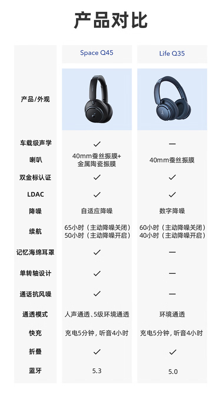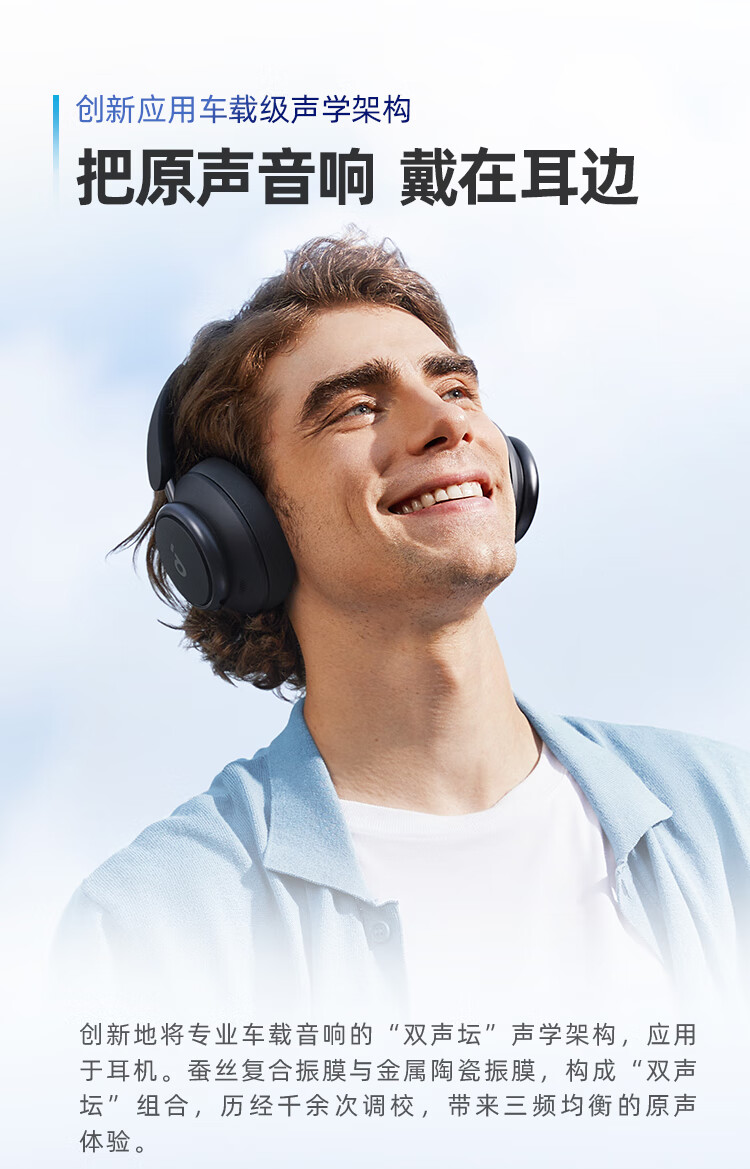 声阔Soundcore Space Q45声阔头戴式无线蓝牙耳机三重动态滤噪适用苹果/华为手机蓝色 本白色