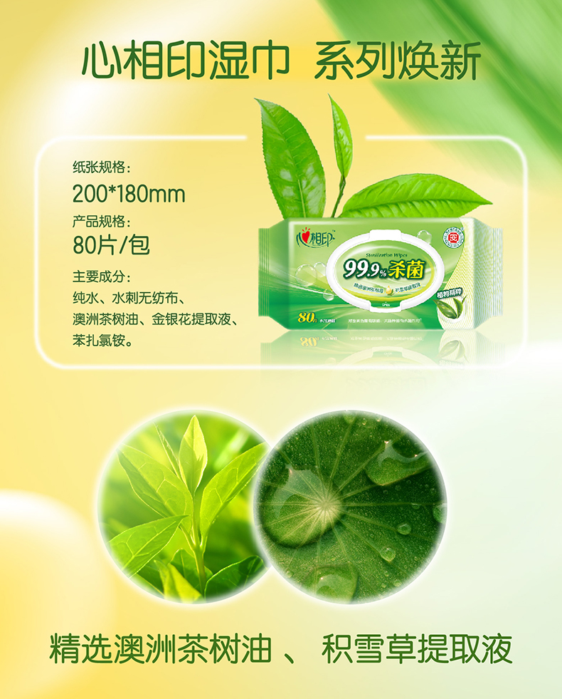 心相印卫生系列80片装湿巾XCA080(单位:包)(新老包装随机发货) 松石绿