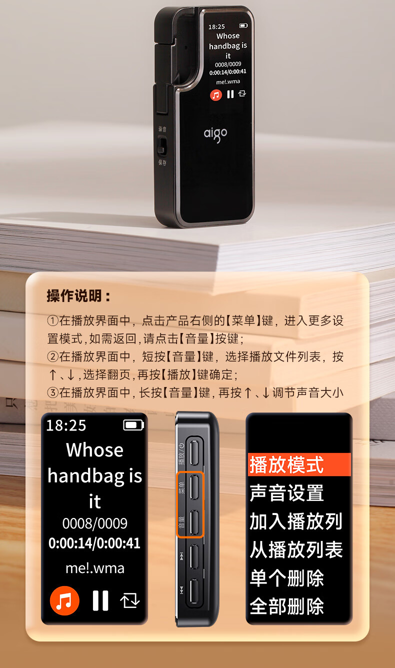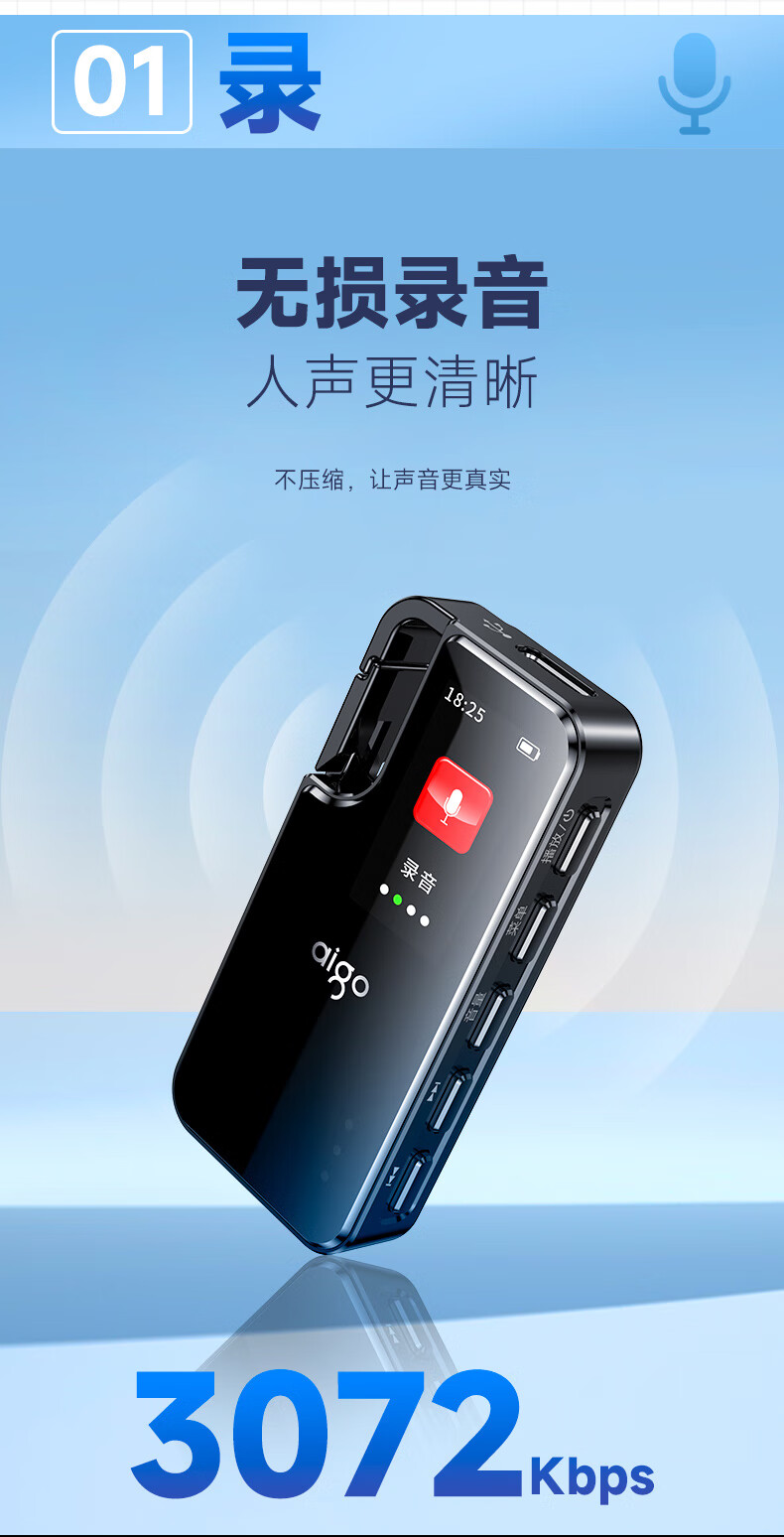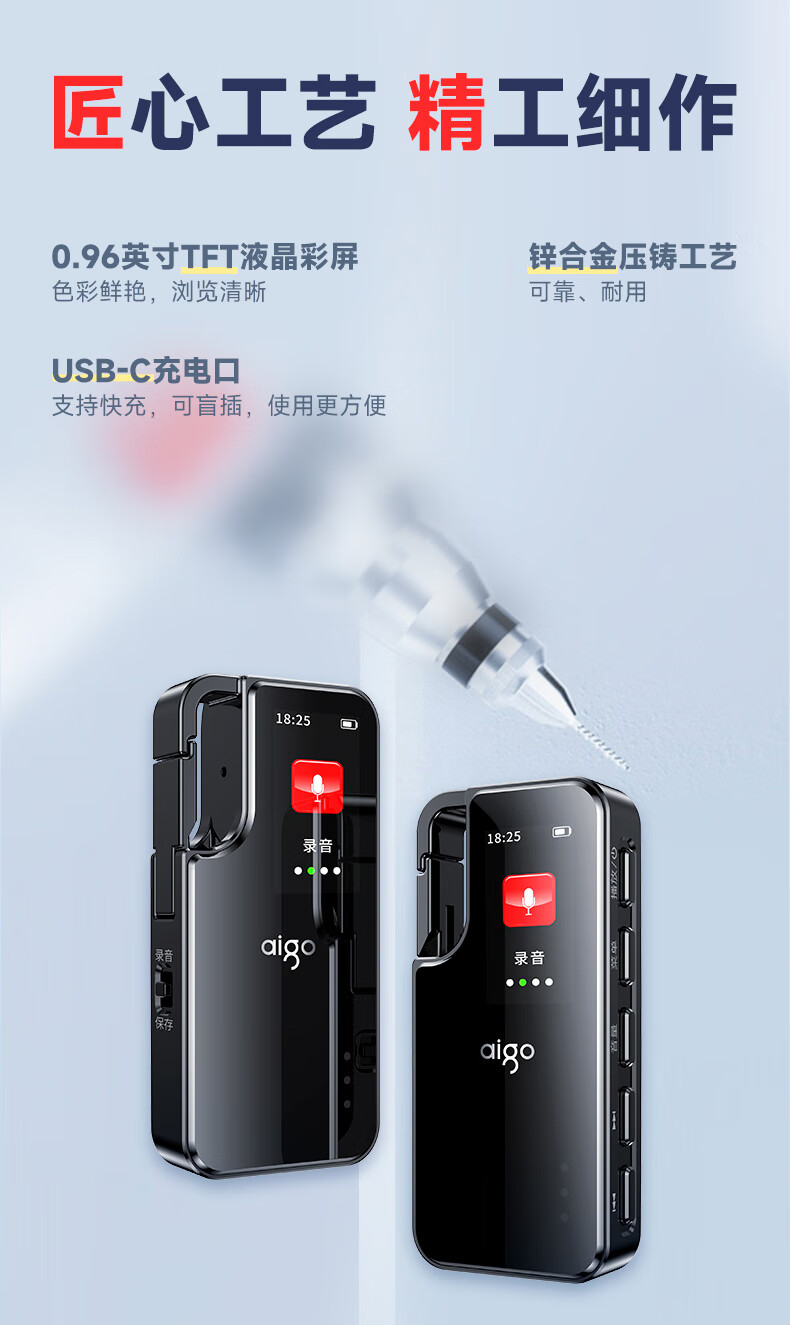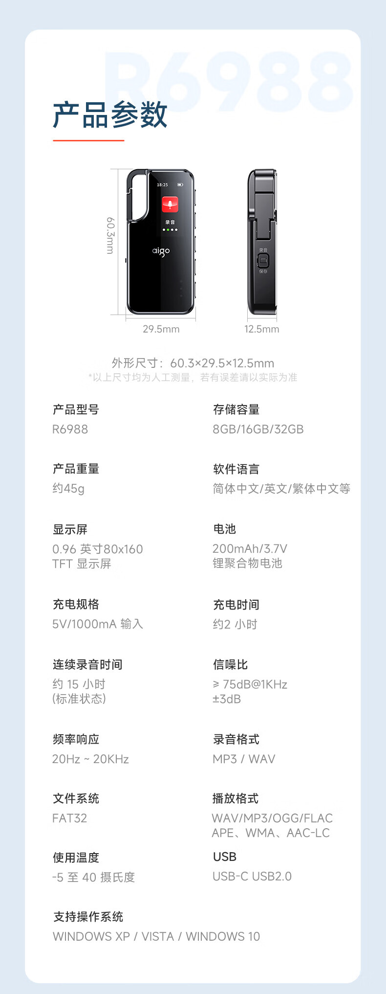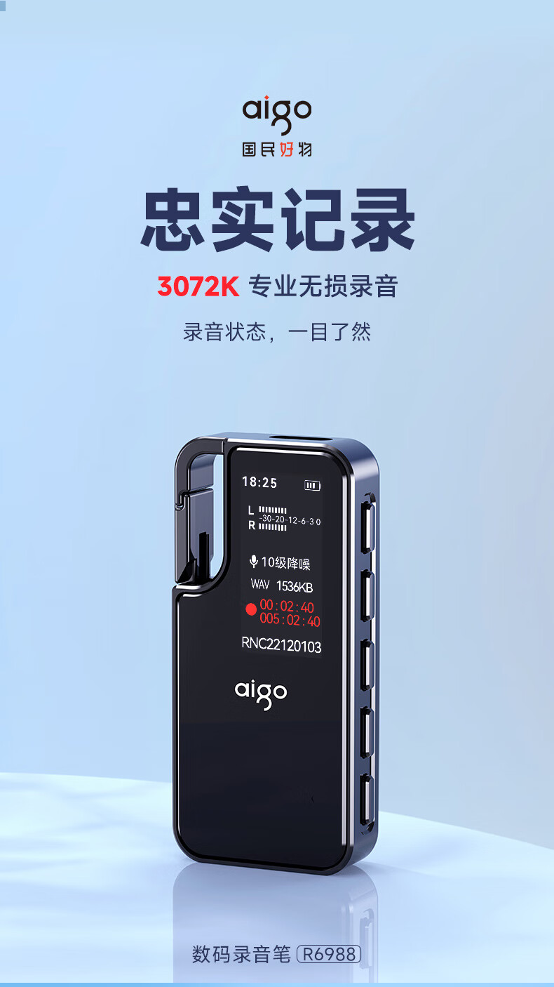 爱国者aigo录音笔R6988 32G一键录音智能商务录音器专业录音高清降噪录音笔 学习会议采访 个 黑色