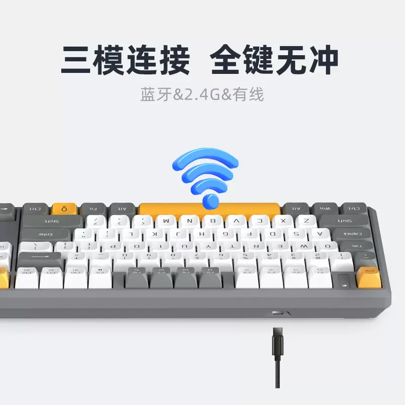 科大讯飞AI机械键盘T8 无线三模 双区87键全键无冲 全键PBT热升华70天超长续航 单位:个 黄色
