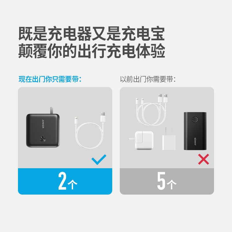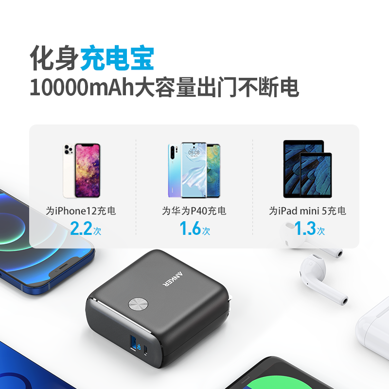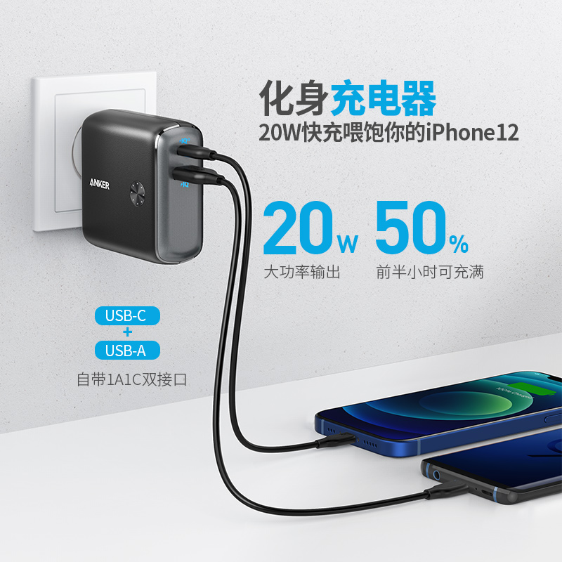 nker安克9800毫安时PD20W快充充电器充电宝二合一适配苹果15华为mate60Pro小米等 白色