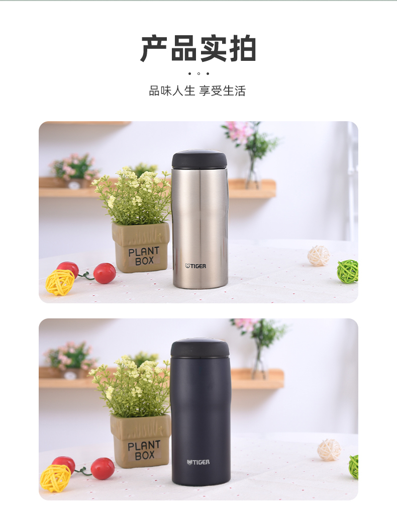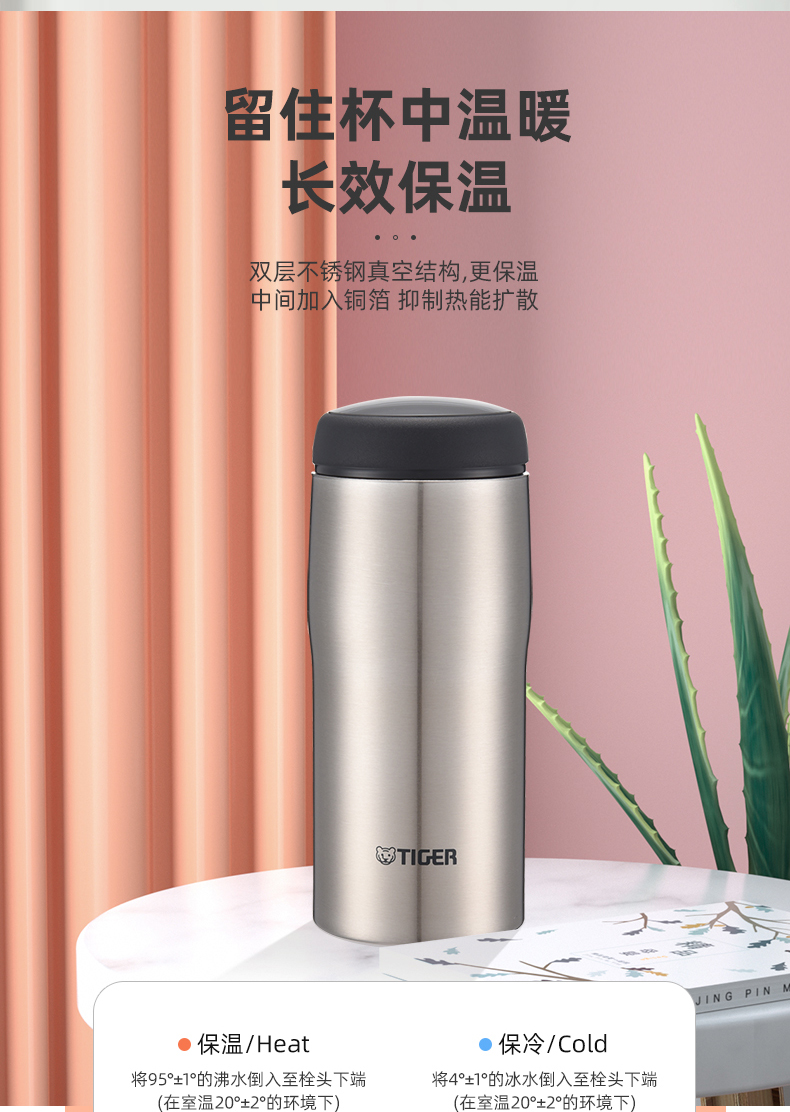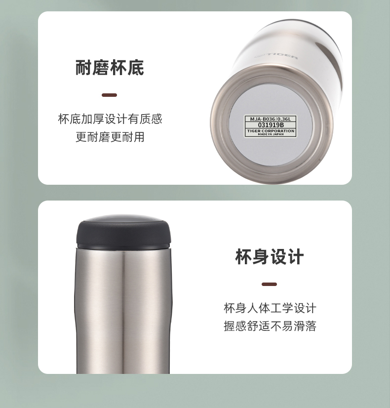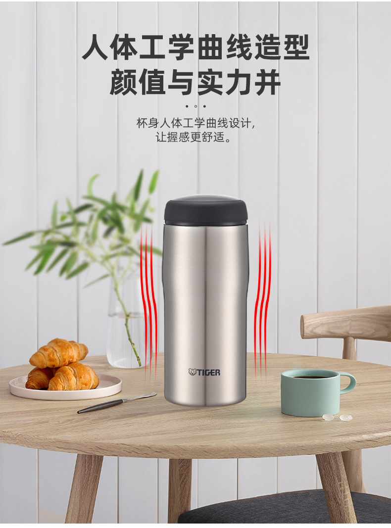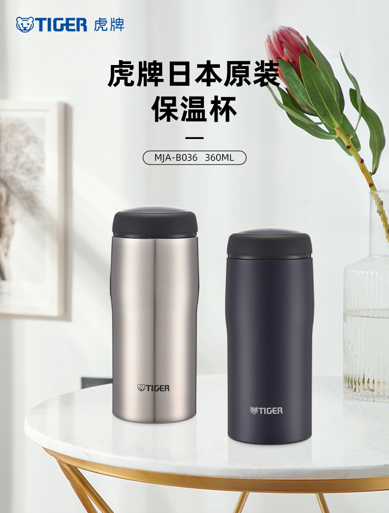 虎牌(TIGER)保温杯日本不锈钢材质男女水杯子MJA b036本色 360ml(单位:个) 钢色